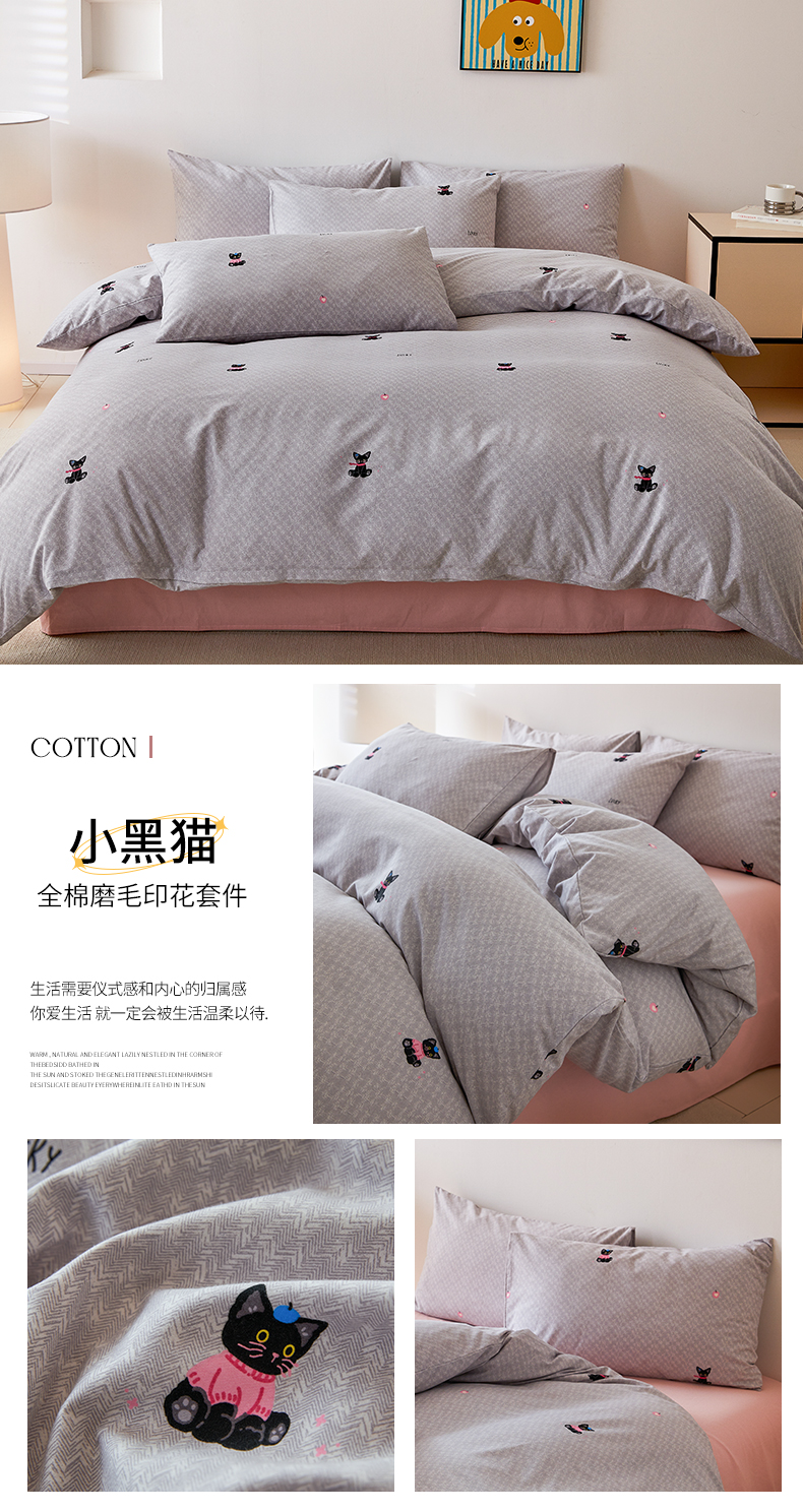 (总)(买家秀 热款花型 不断货)母婴级A类ins风水洗棉四件套水洗棉毛巾绣四件套水洗棉床笠四件套提花绣花,幸运小狗,开心熊猫,小红帽,小兔音乐会