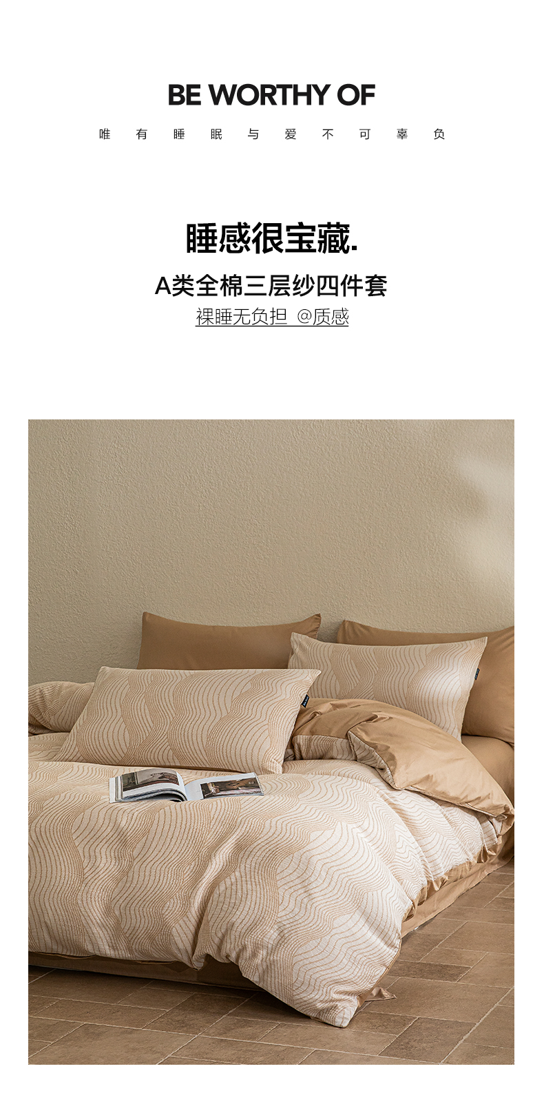 商品名称:2025新款全棉A类三层纱大提花纯棉四件套 浮影流光-卡