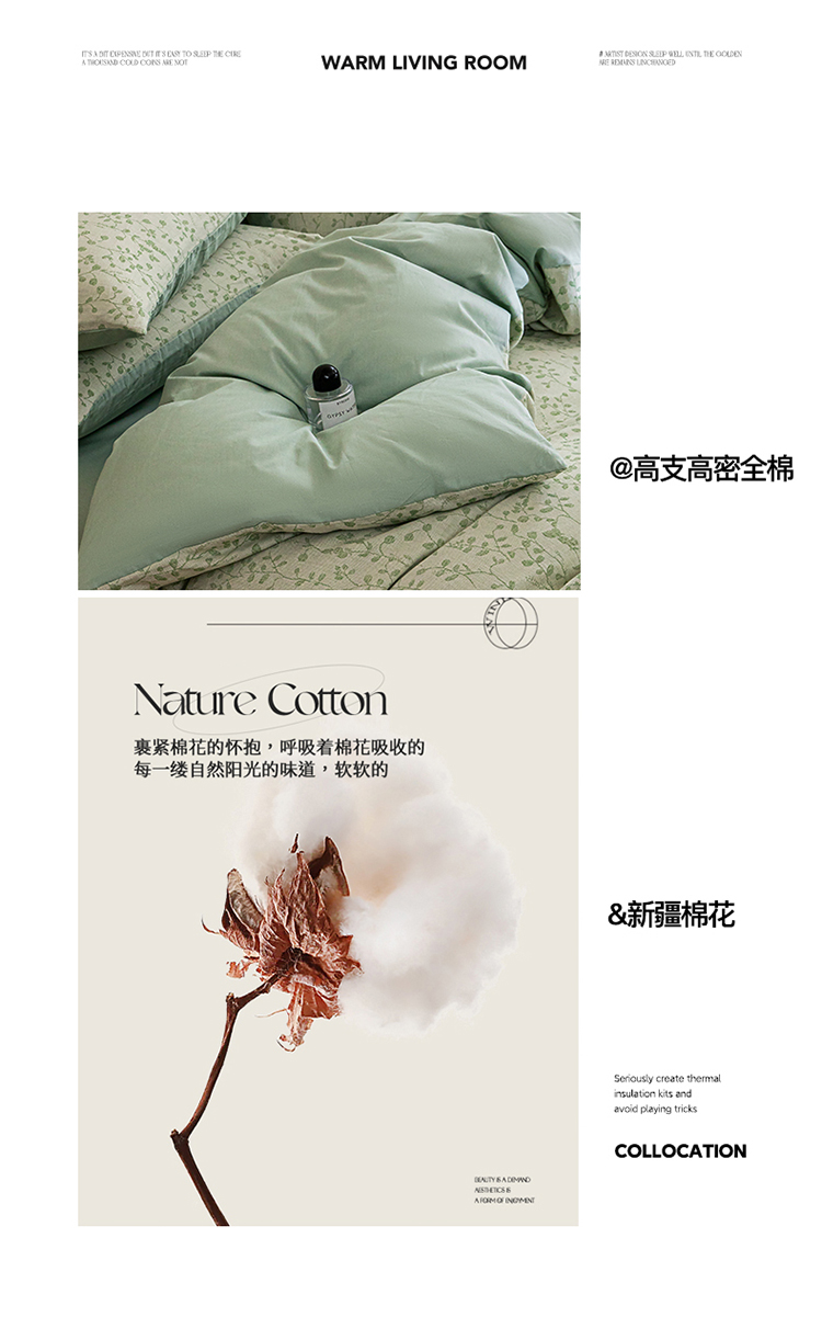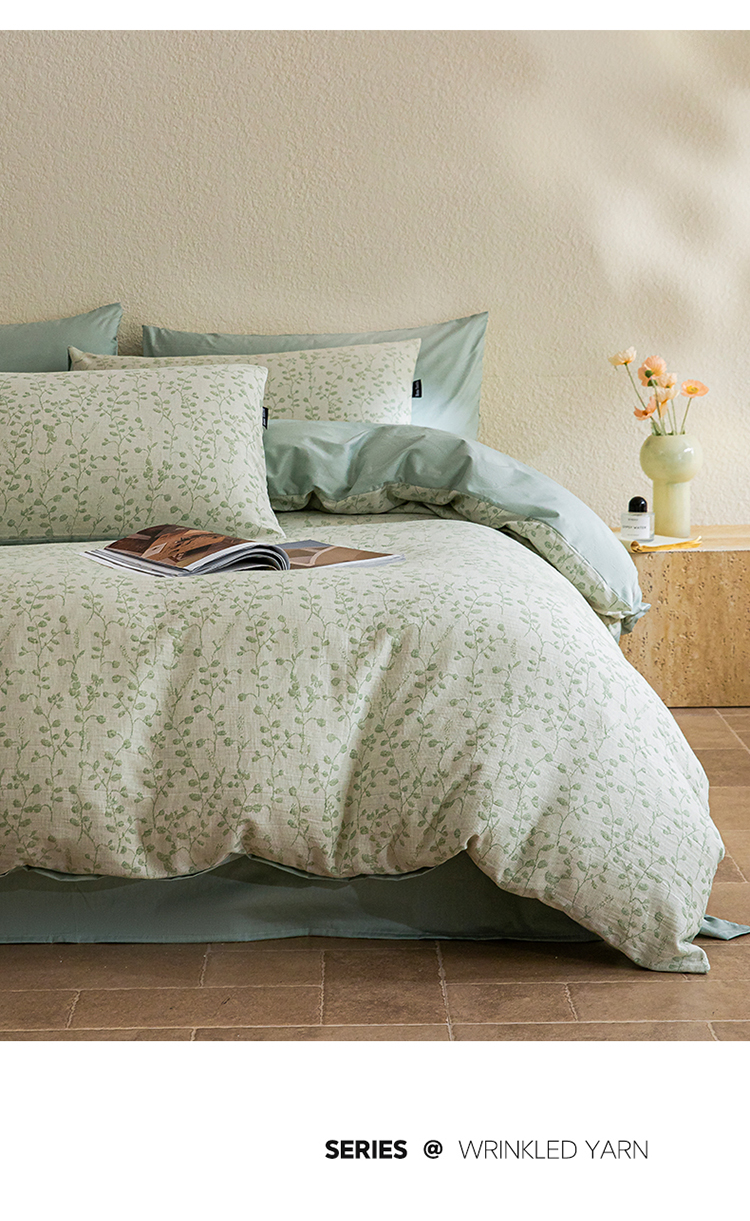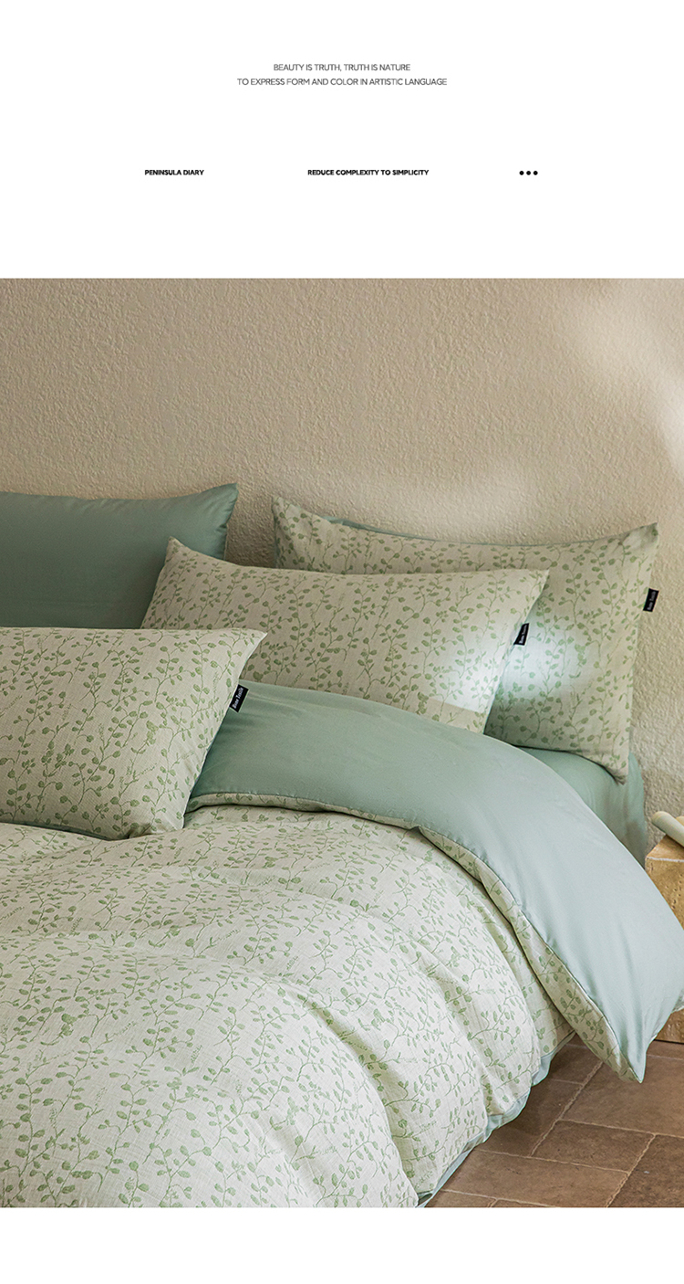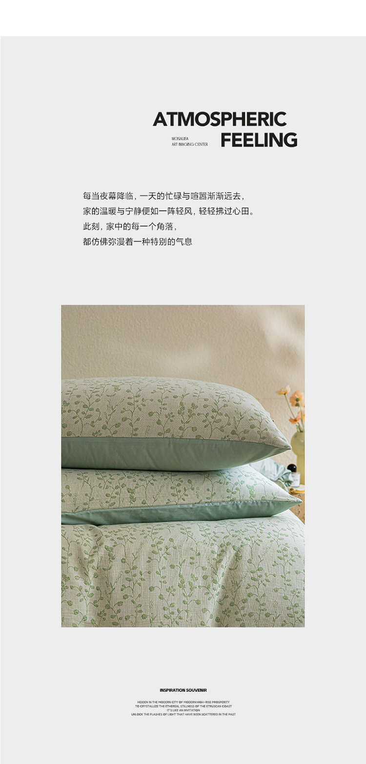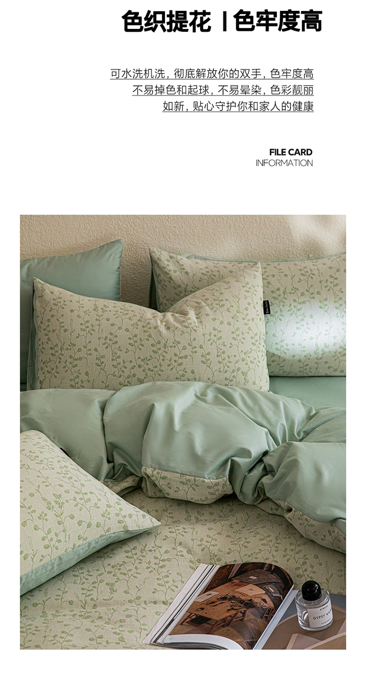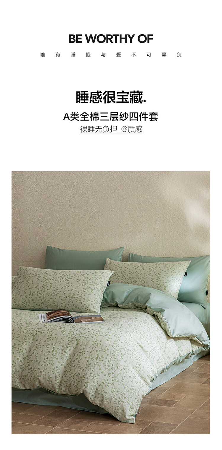 商品名称:2025新款全棉A类三层纱大提花纯棉四件套 春树-绿