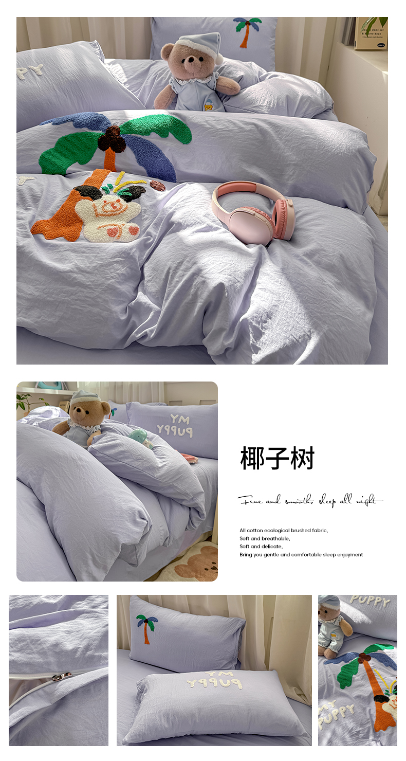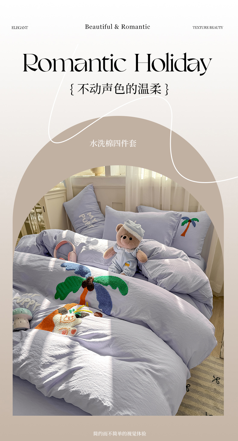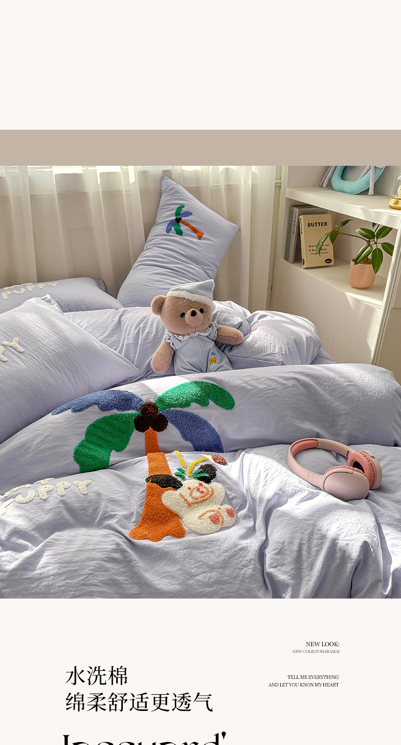 当前位置: 91家纺网 > 商品网购 > 床品套件 > 四件套 > 水洗棉四件套 > 韩巢家纺 2025新款大版水洗棉毛巾绣被套四件套(提供卖家秀) 椰子树