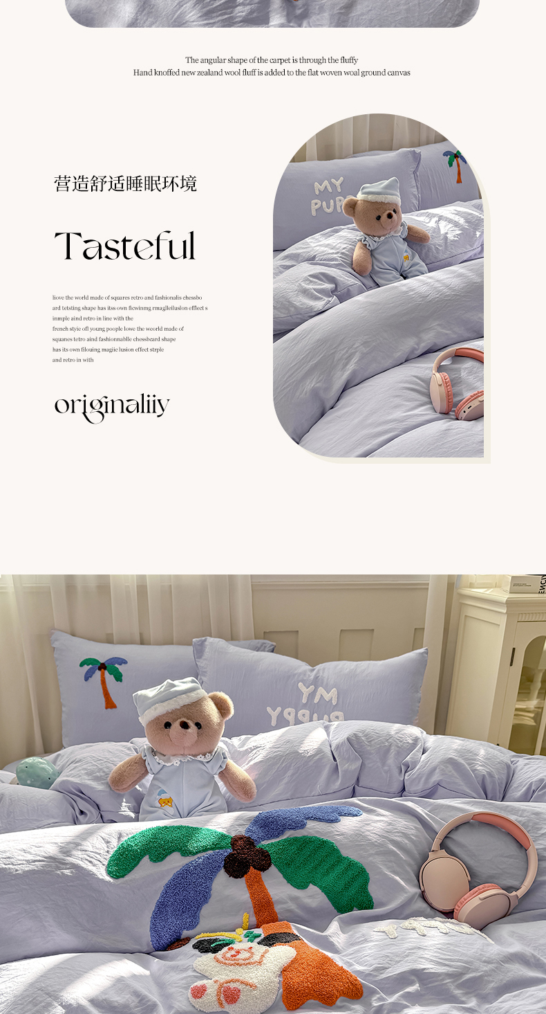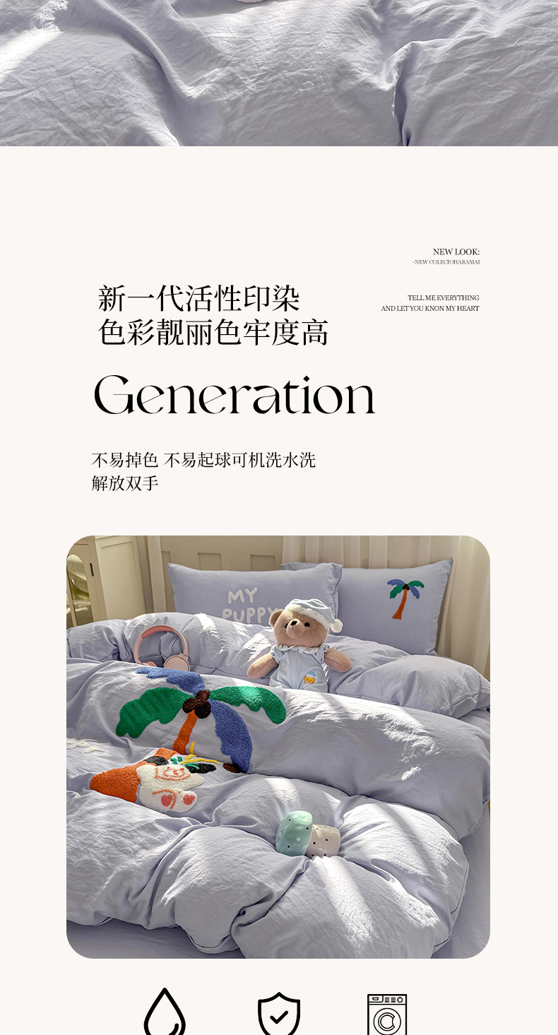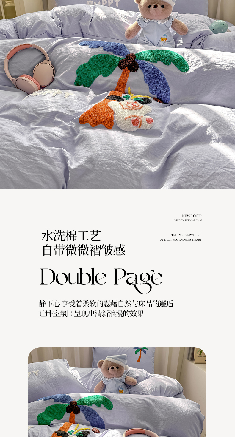 当前位置: 91家纺网 > 商品网购 > 床品套件 > 四件套 > 水洗棉四件套 > 韩巢家纺 2025新款大版水洗棉毛巾绣被套四件套(提供卖家秀) 椰子树