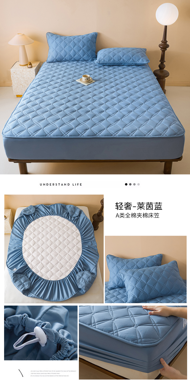 九亭家纺 2025新款A类全棉夹棉纯色床笠 轻奢-莱茵蓝