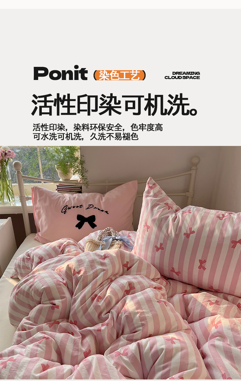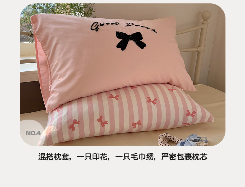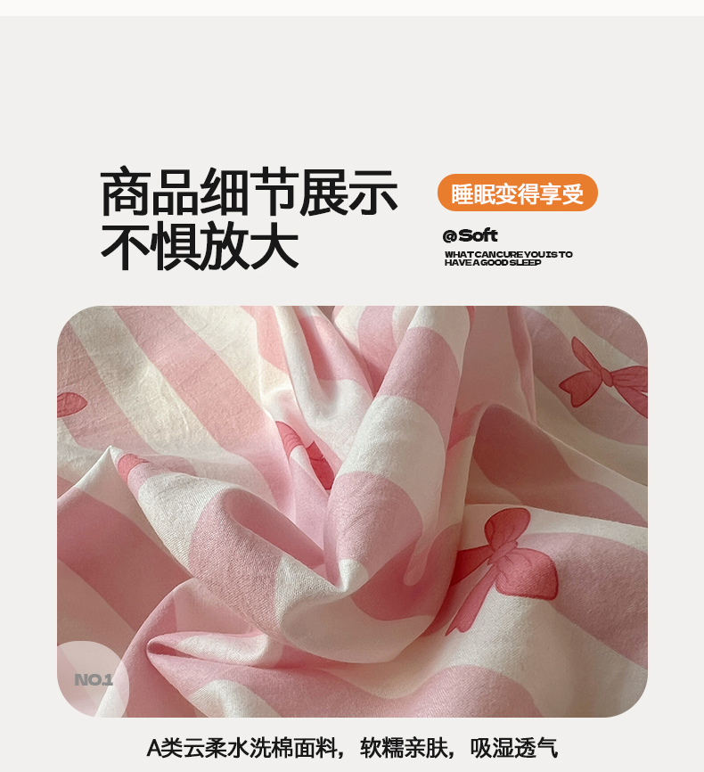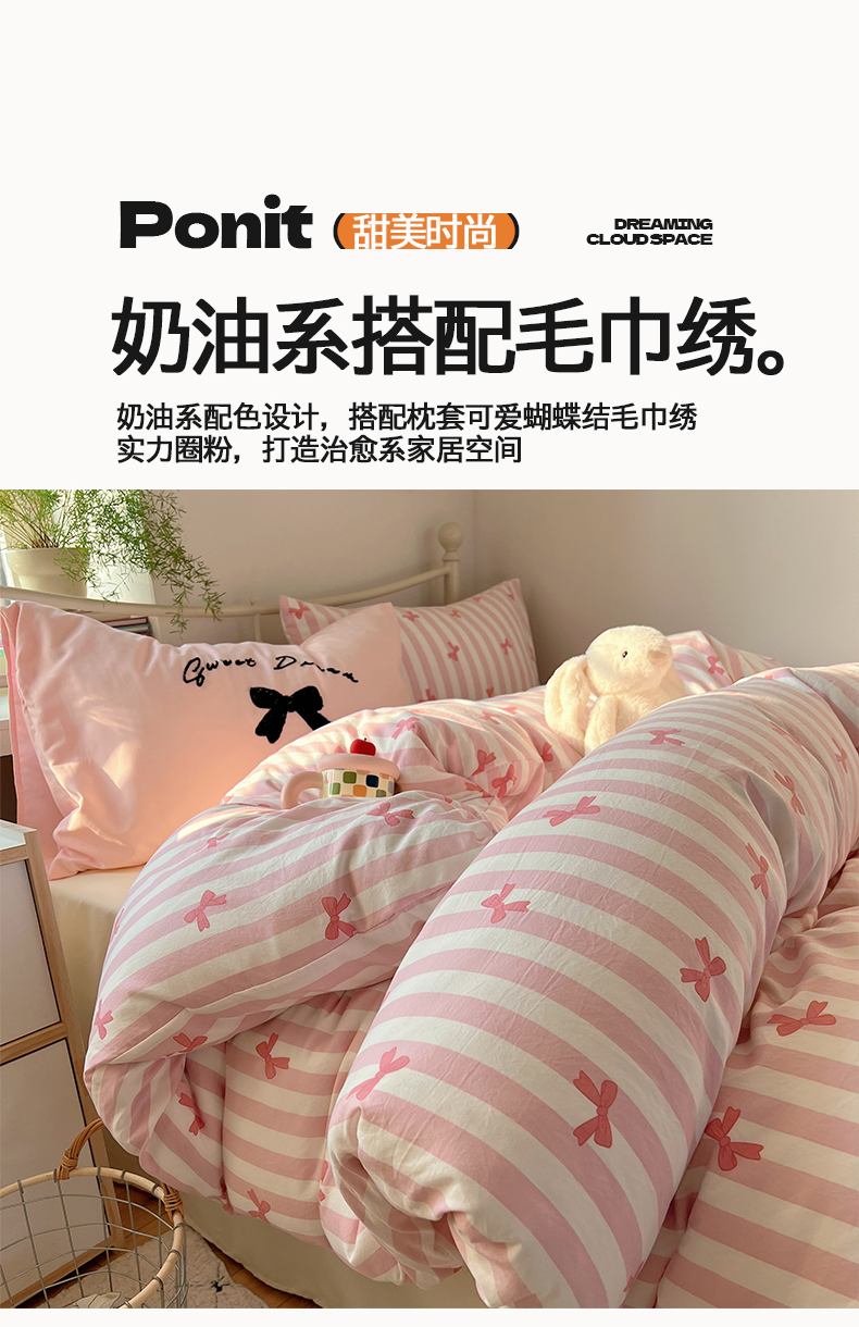 商品名称:(总)桃心家居 2025新款A类亲肤舒适软糯云柔水洗棉毛巾绣奶油可爱蝴蝶结水洗棉系列四件套