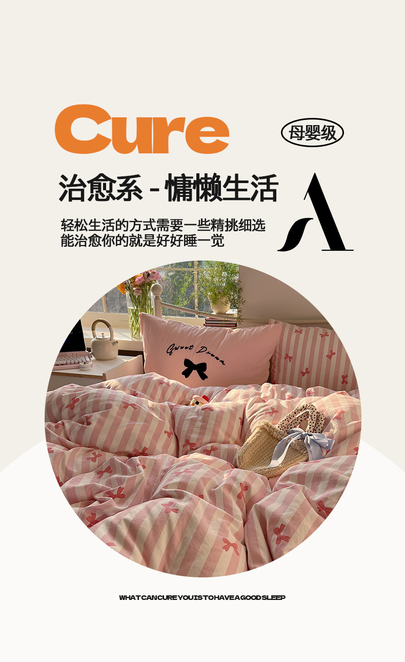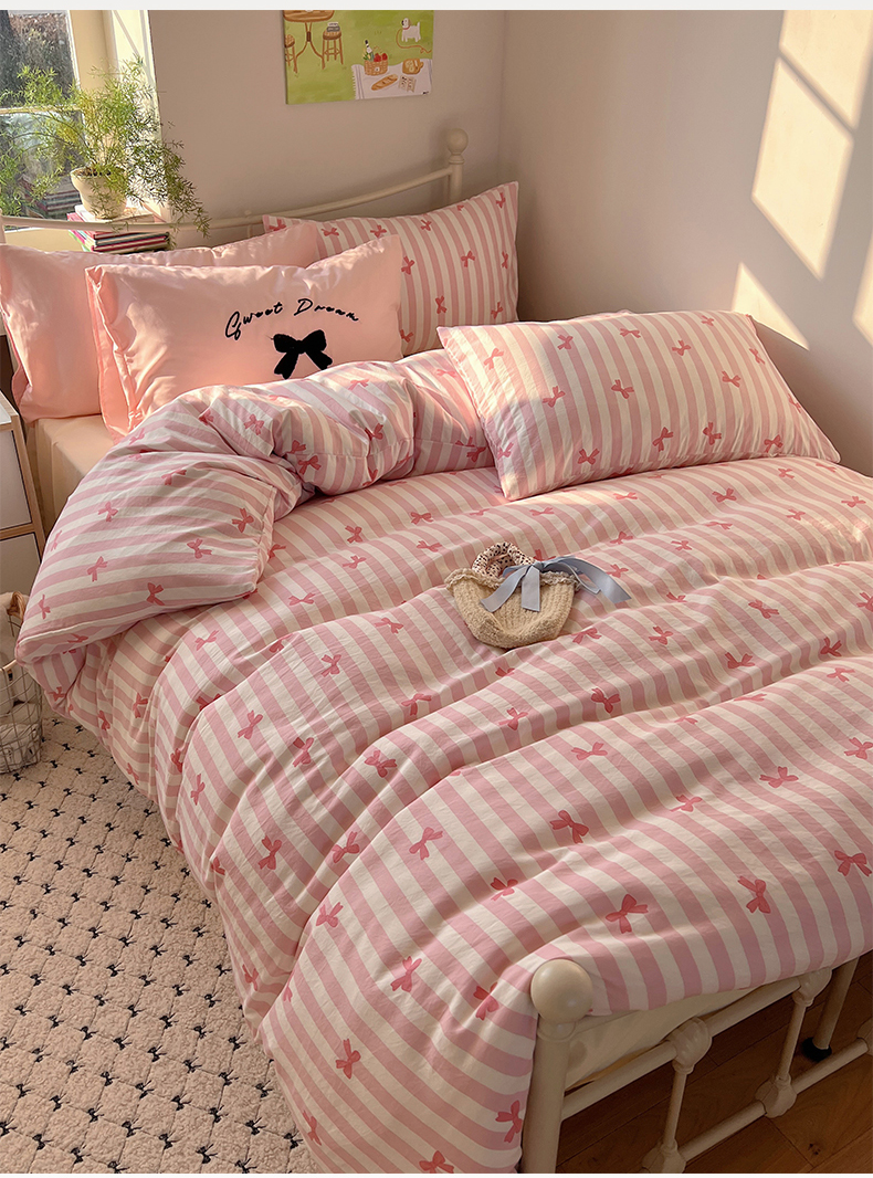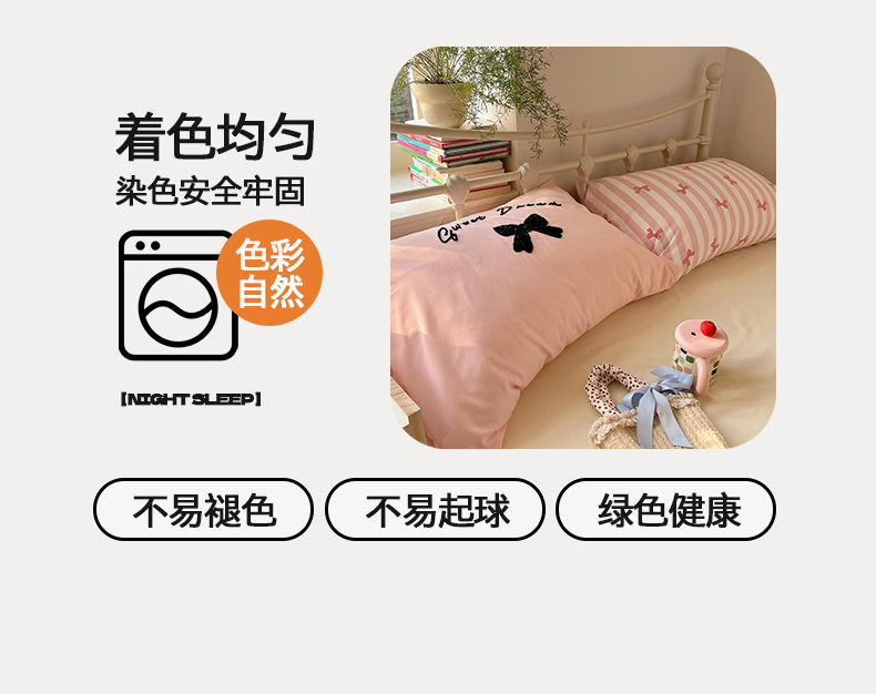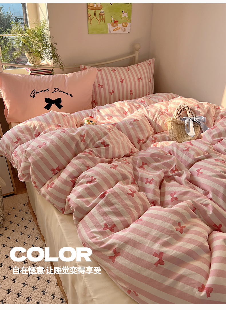 商品名称:(总)桃心家居 2025新款A类亲肤舒适软糯云柔水洗棉毛巾绣奶油可爱蝴蝶结水洗棉系列四件套