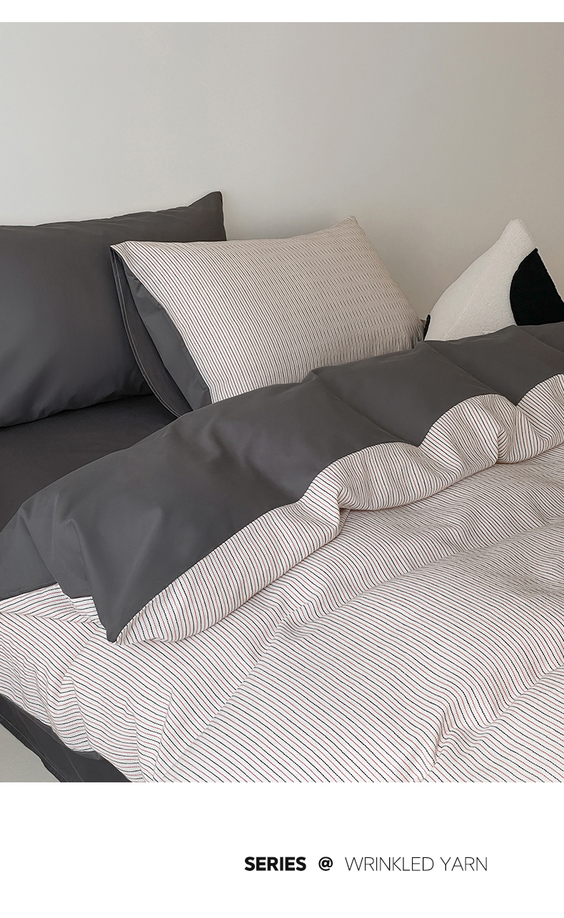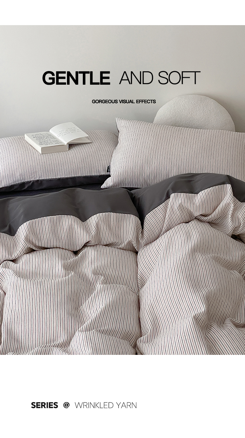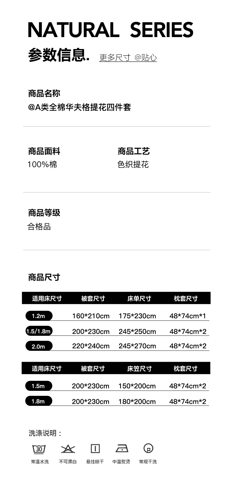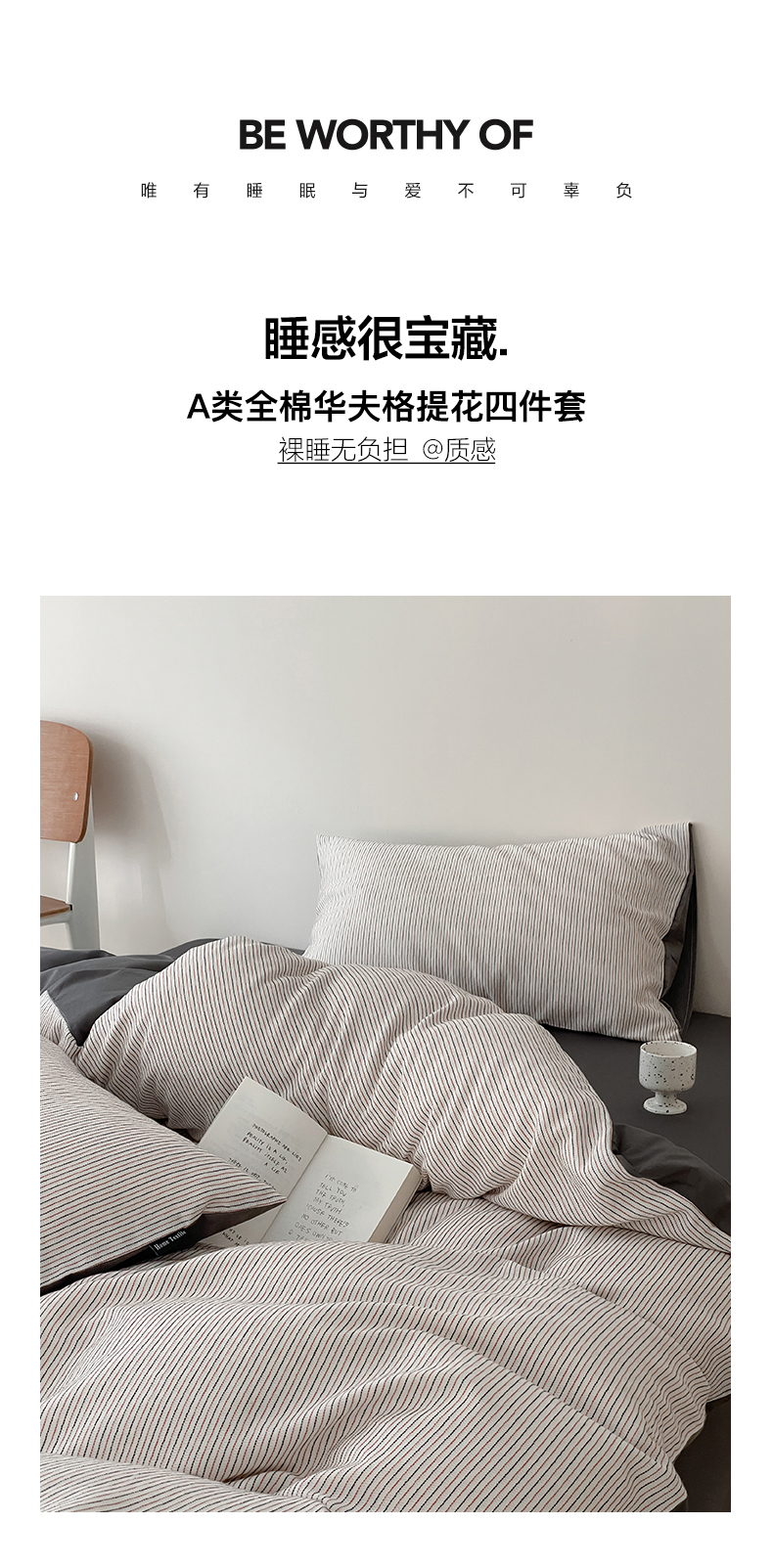 商品名称:卧趣家纺 2025新款A类全棉华夫格色织多色提花纯棉四件套-森韵 森韵-灰