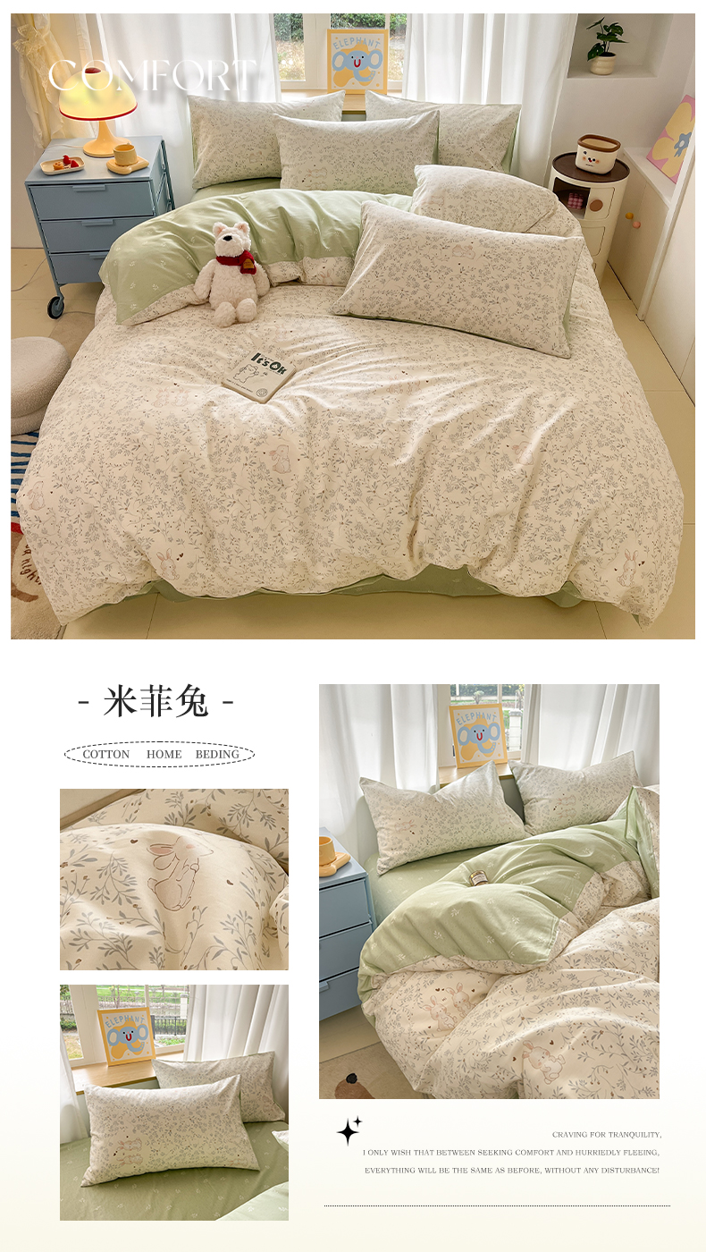 捌月 2025新款舒适全棉印花四件套 米菲兔