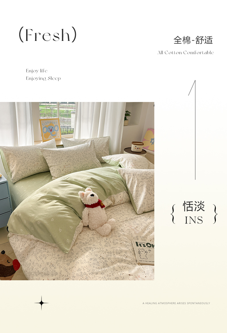 (总)捌月 2025新款13372全棉四件套花园里系列小清新全棉四件套热卖新品,艾美,蓝风铃,蓝汐,流年,魅影,木兰,年华,浅浅,青花瓷,青木,轻颜,韶华,思绪,汐月