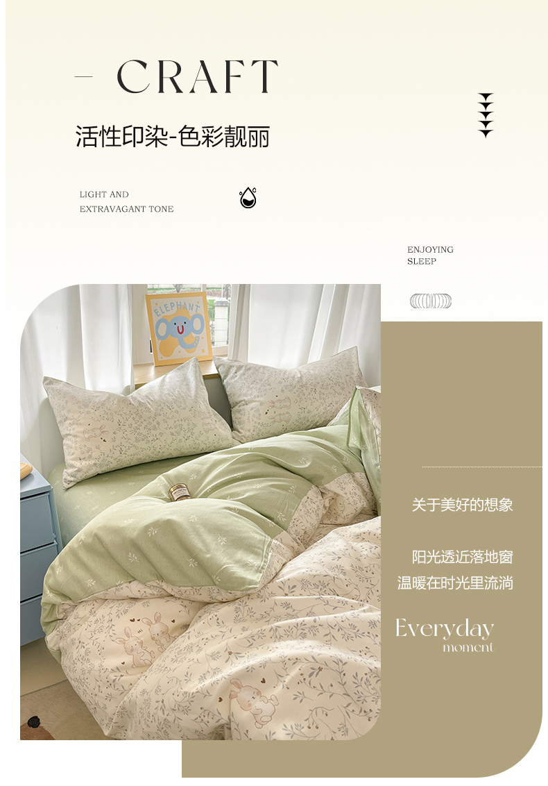 商品名称:捌月 2025新款舒适全棉印花四件套 米菲兔