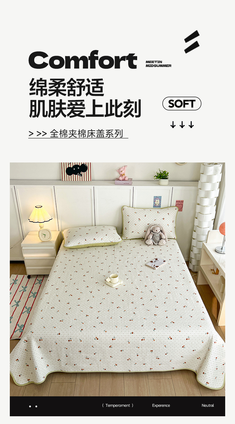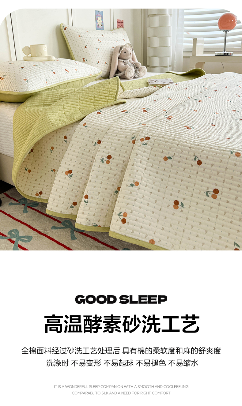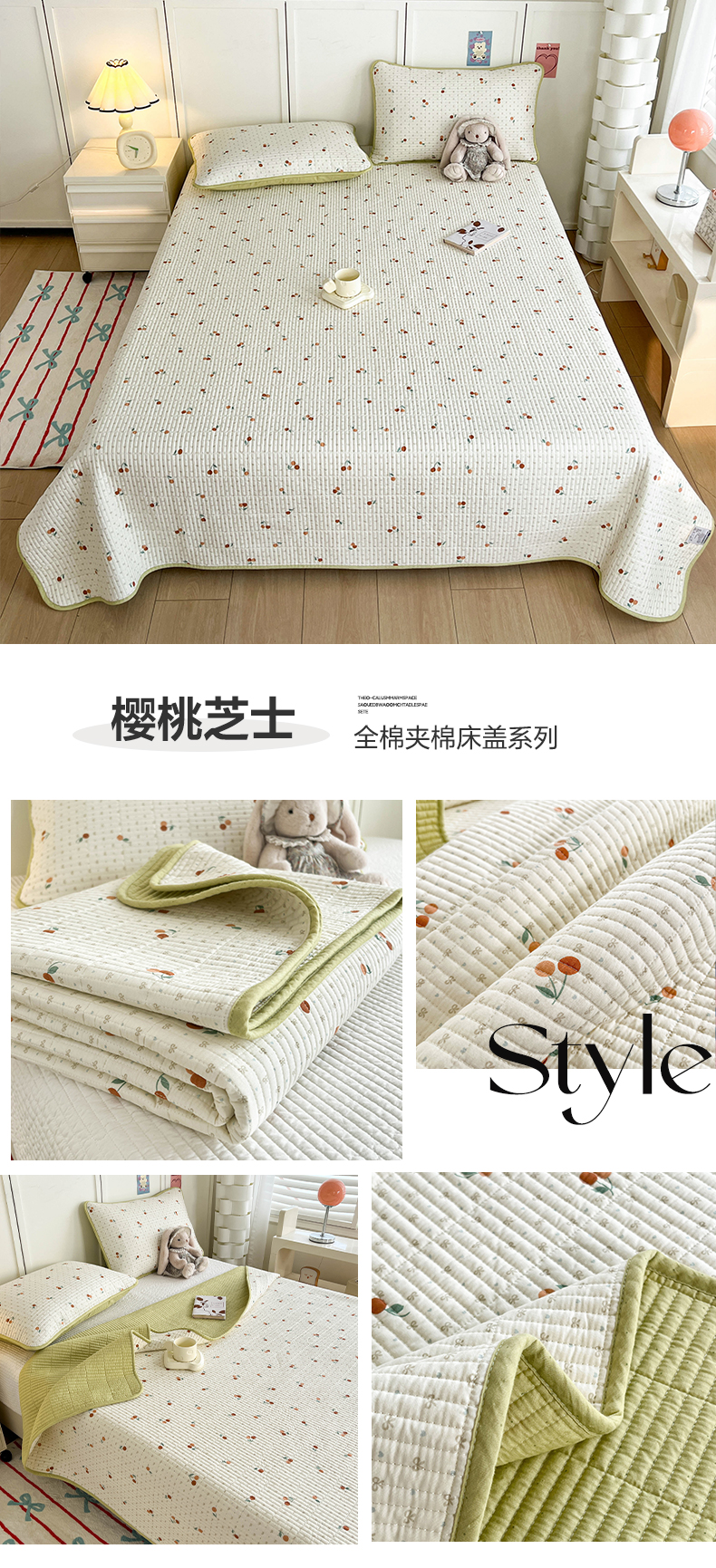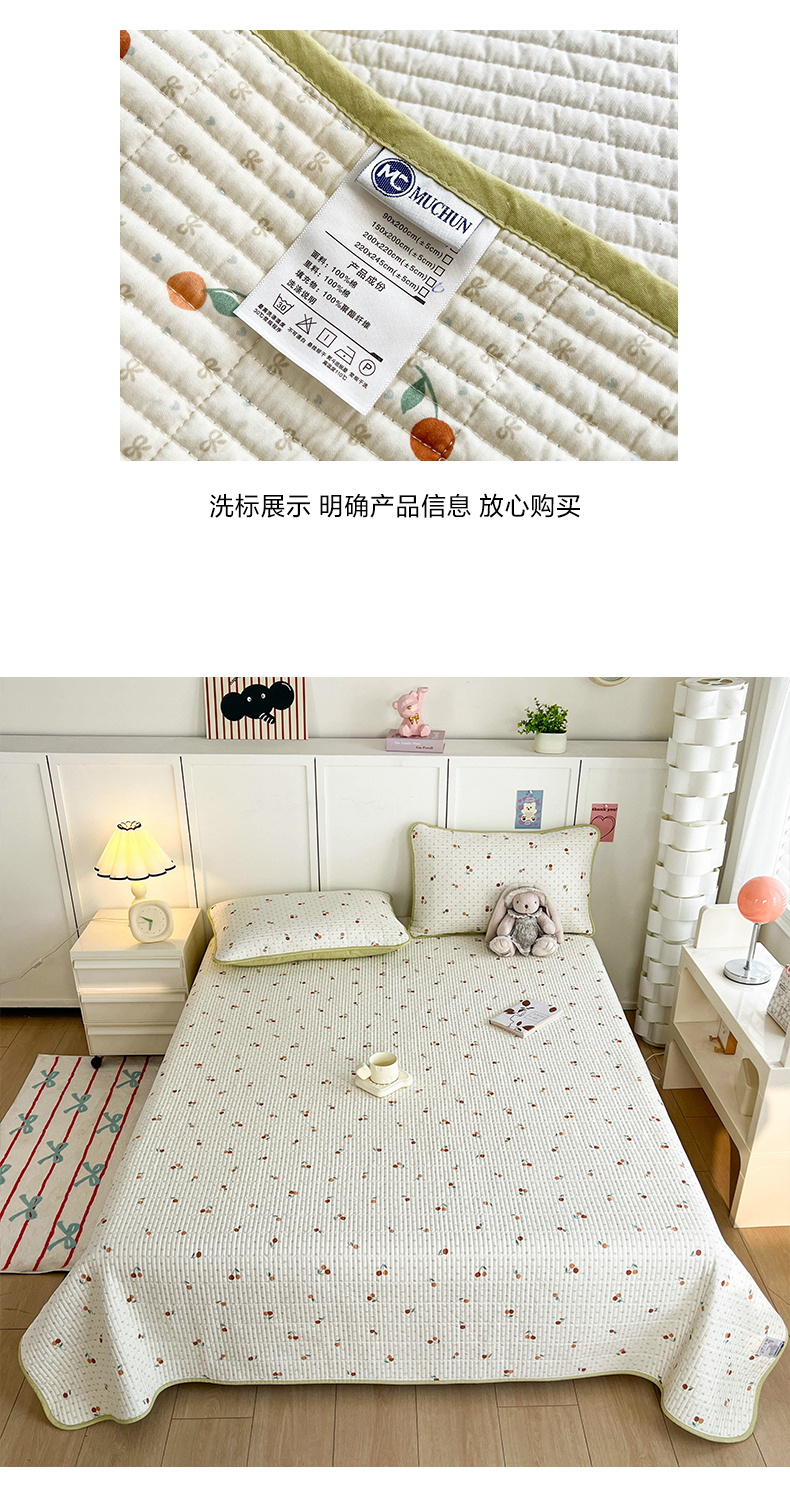 商品名称:沐纯家居 2025新款40支双面纯棉印花床盖三件套 樱桃芝士
