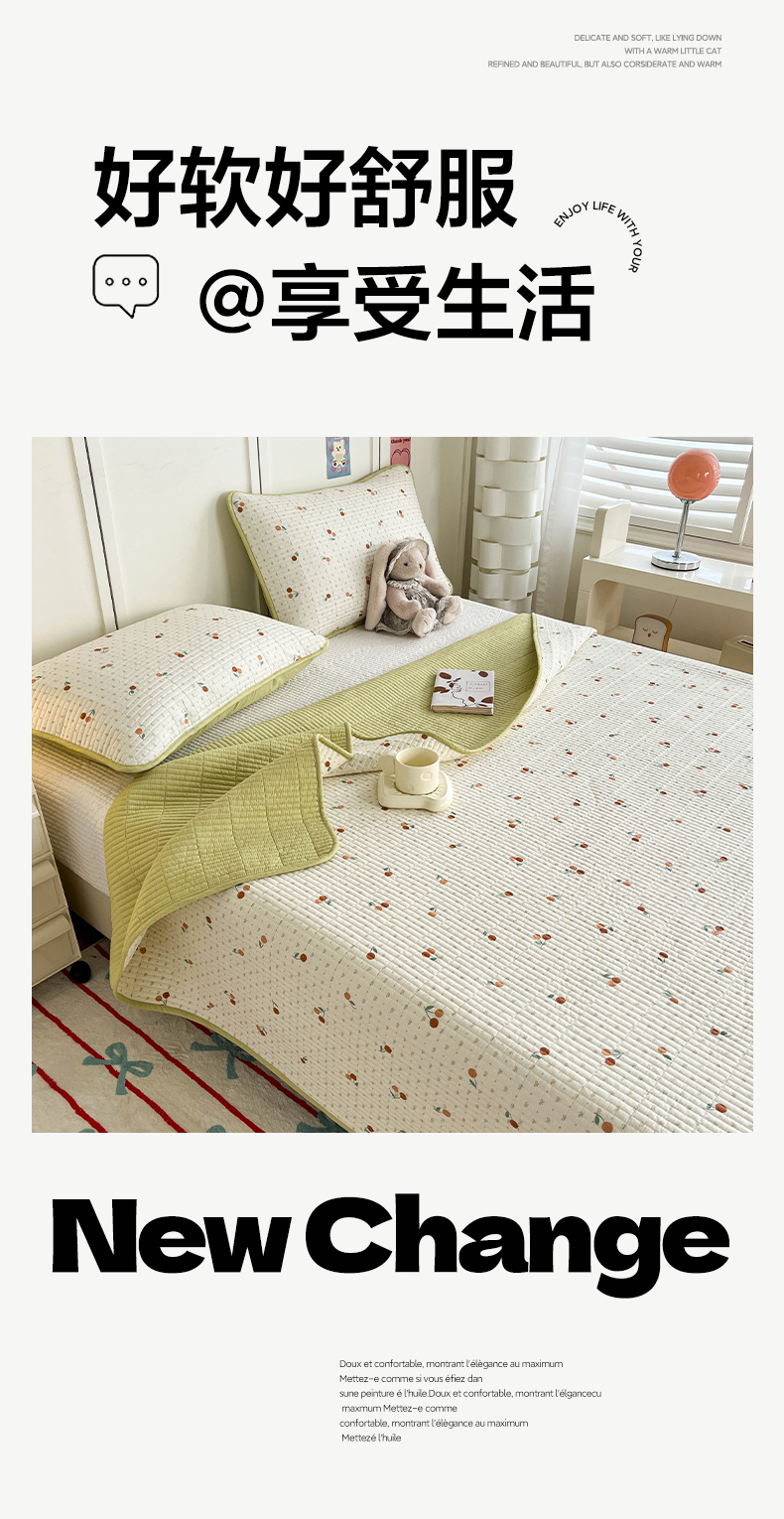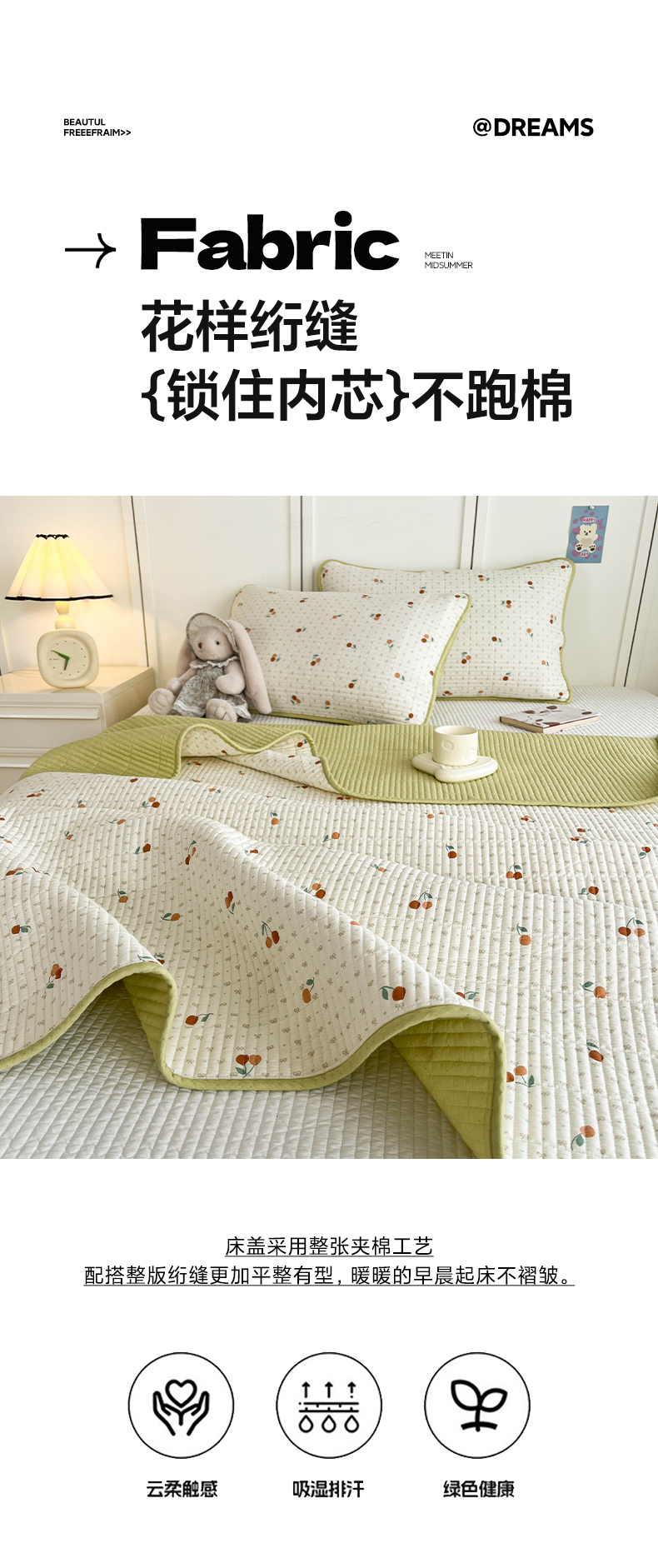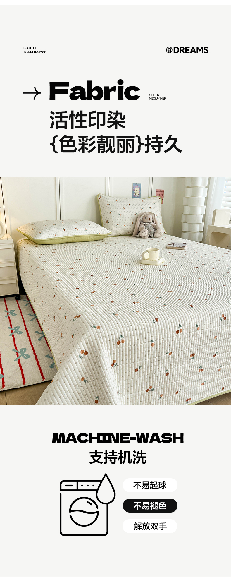 商品名称:沐纯家居 2025新款40支双面纯棉印花床盖三件套 樱桃芝士