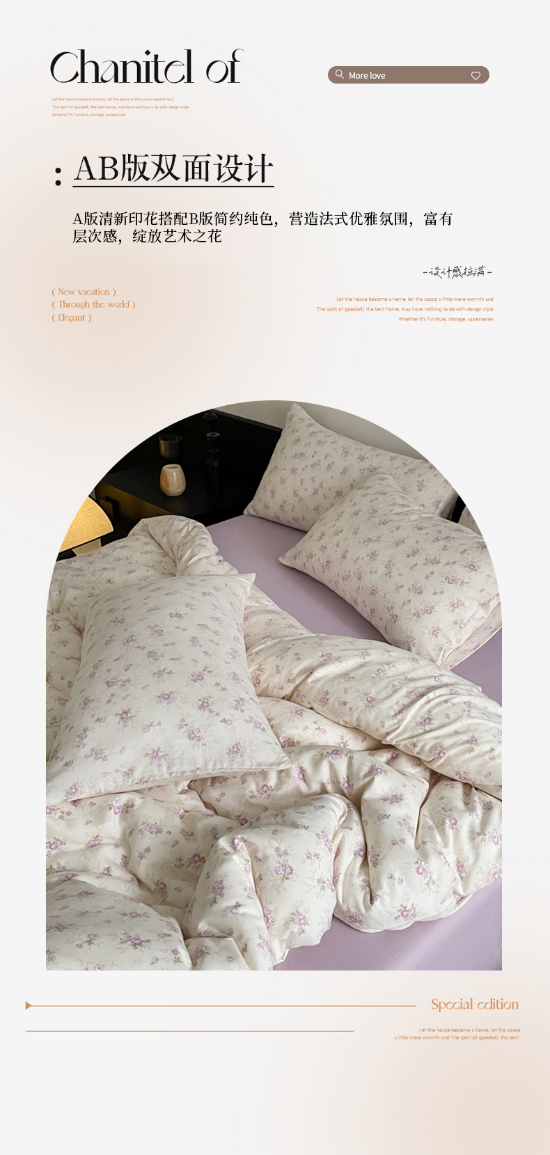 仟网汇 2025新款小清新有氧针织棉双层纱系列四件套 紫嫣