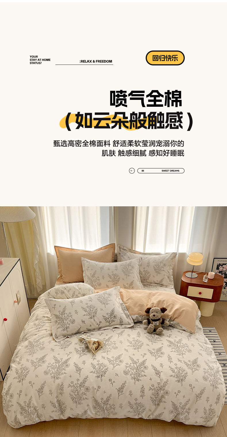 商品名称:(总)菲梵家纺 2025新款小清新喷气印花全棉单品被套