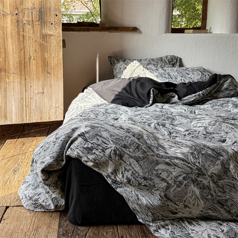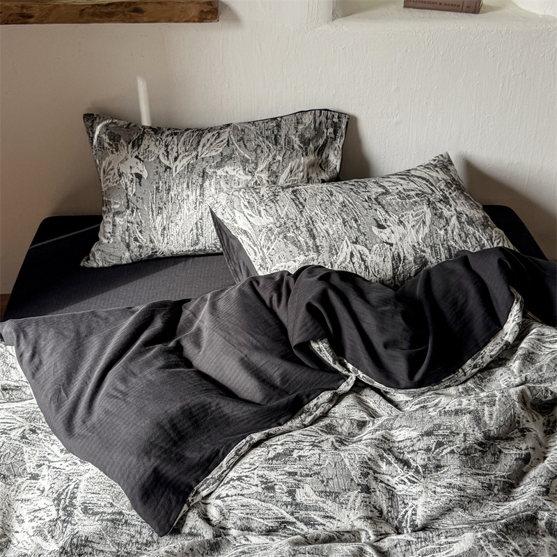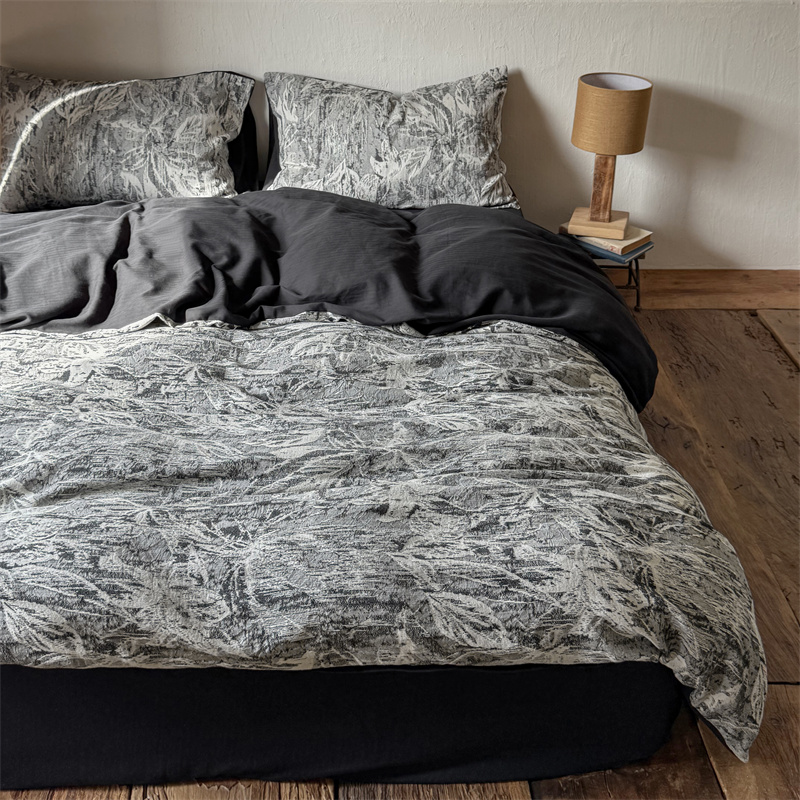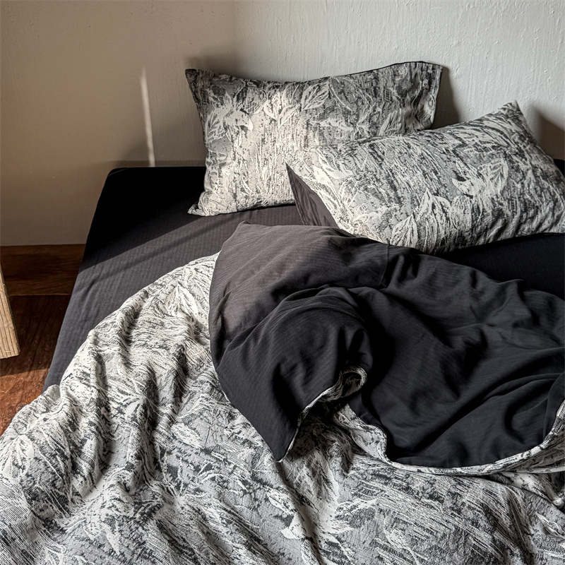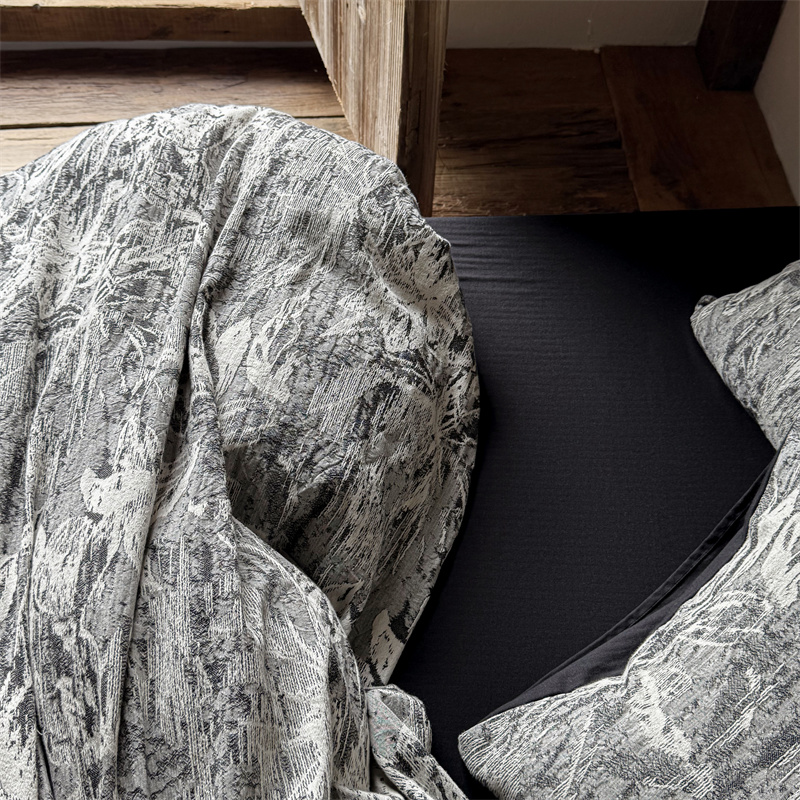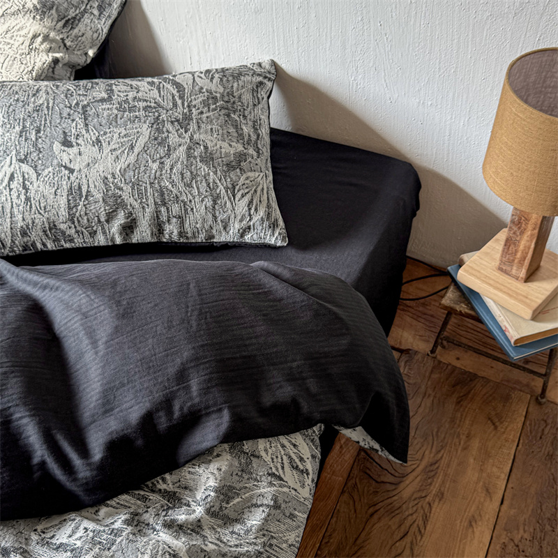 商品名称:(总)简家居 2025新款60支色织空气棉四件套-竹影-黑