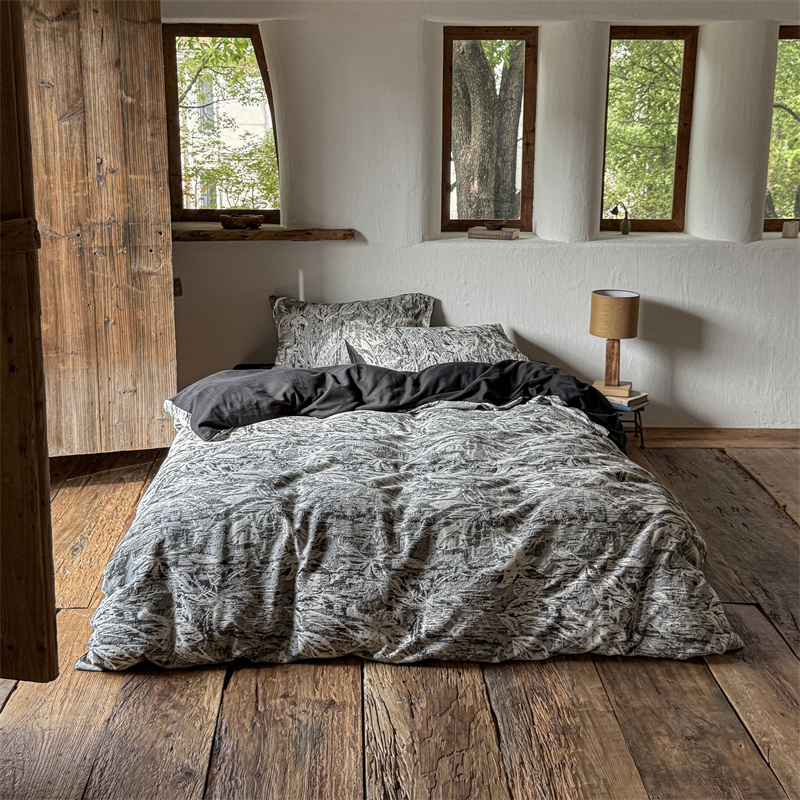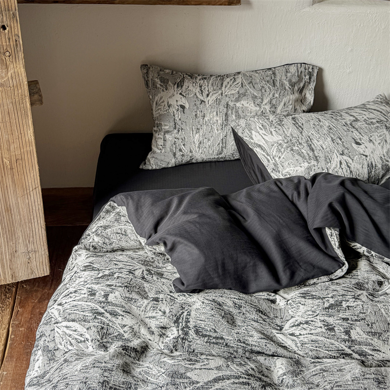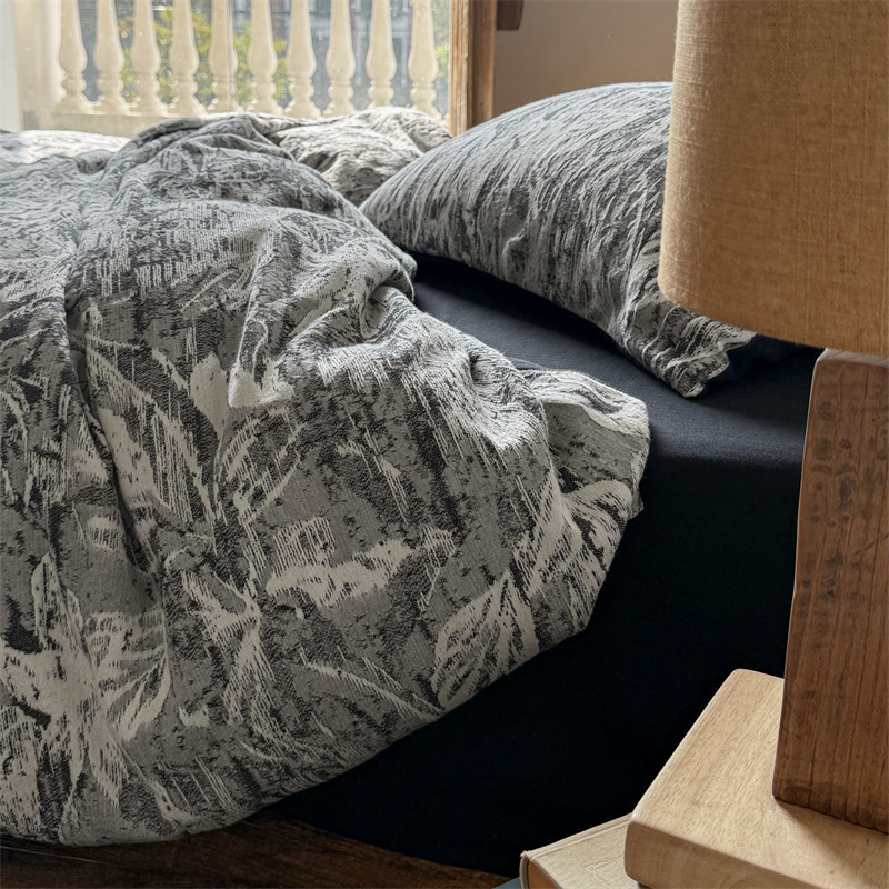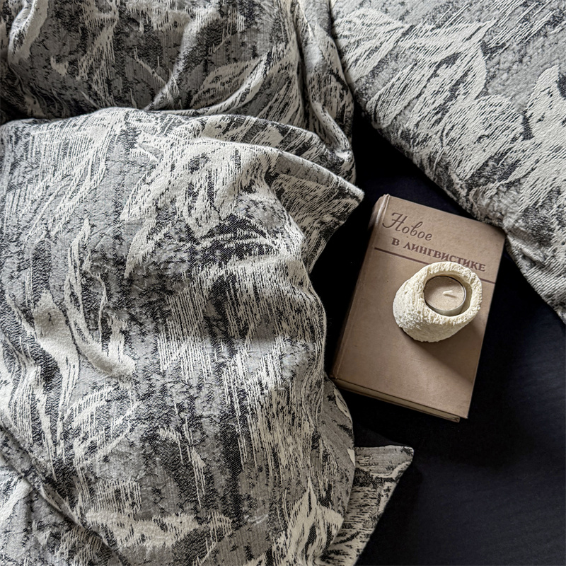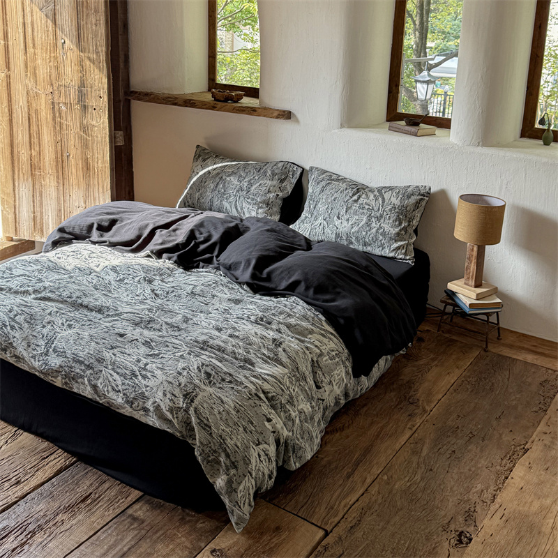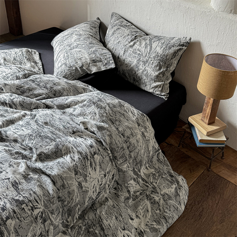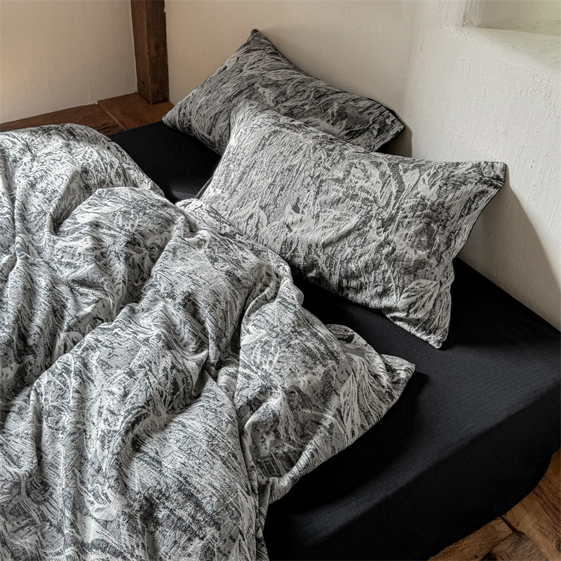 商品名称:(总)简家居 2025新款60支色织空气棉四件套-竹影-黑