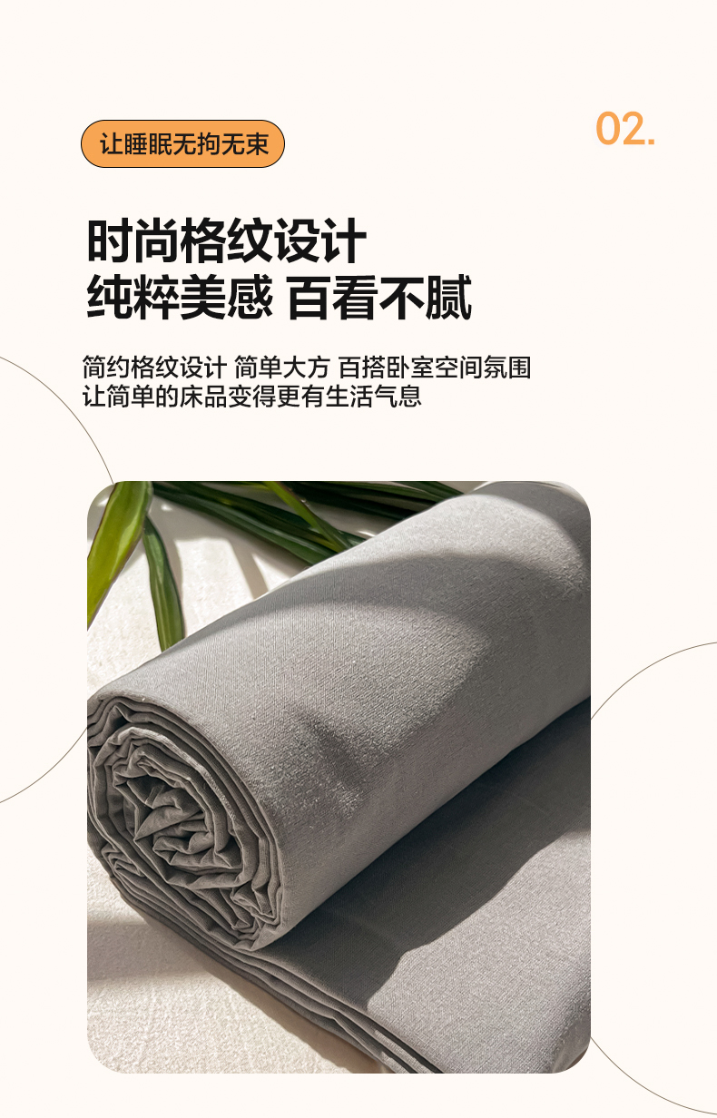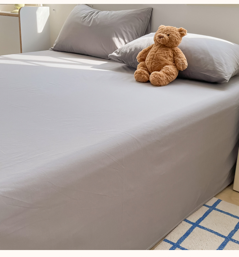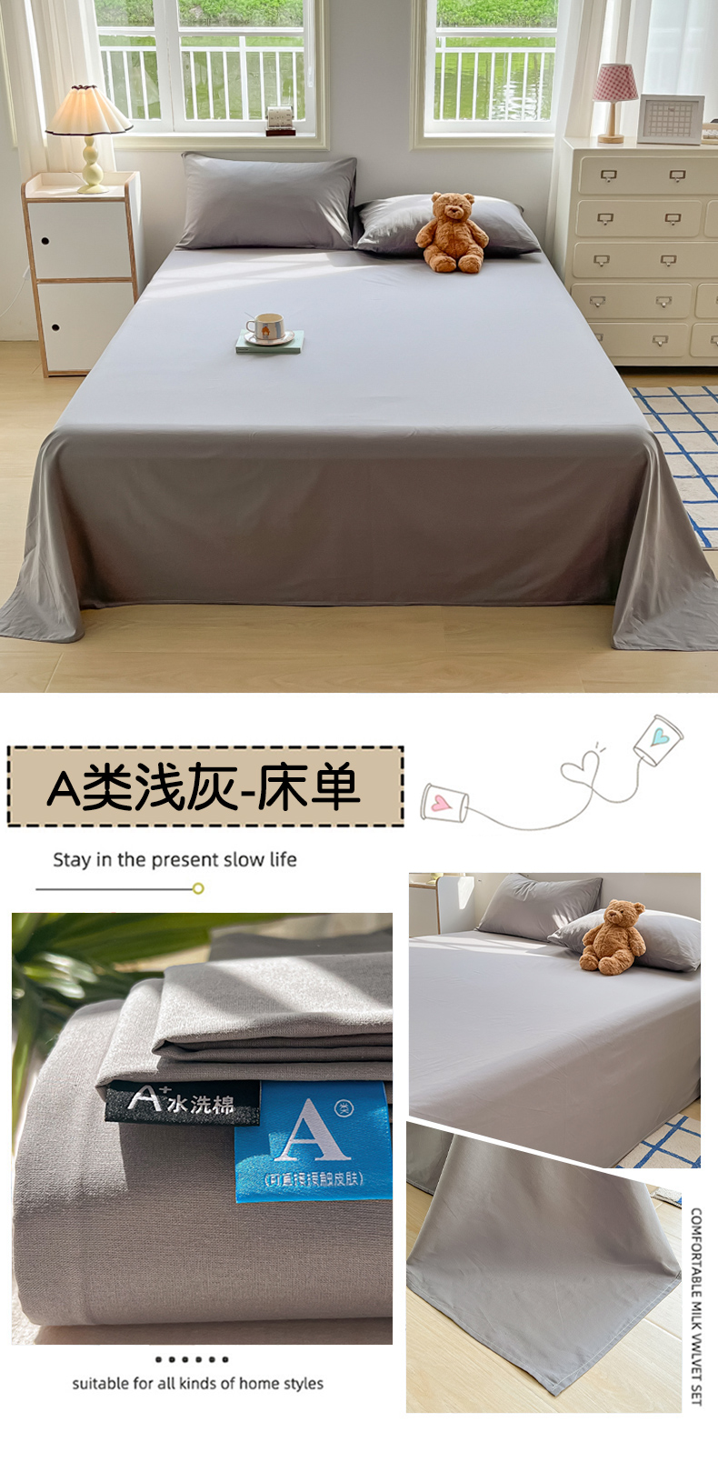 商品名称:韩巢家纺 2025新款格子纯色A类水洗棉床单单件 A类浅灰-床单