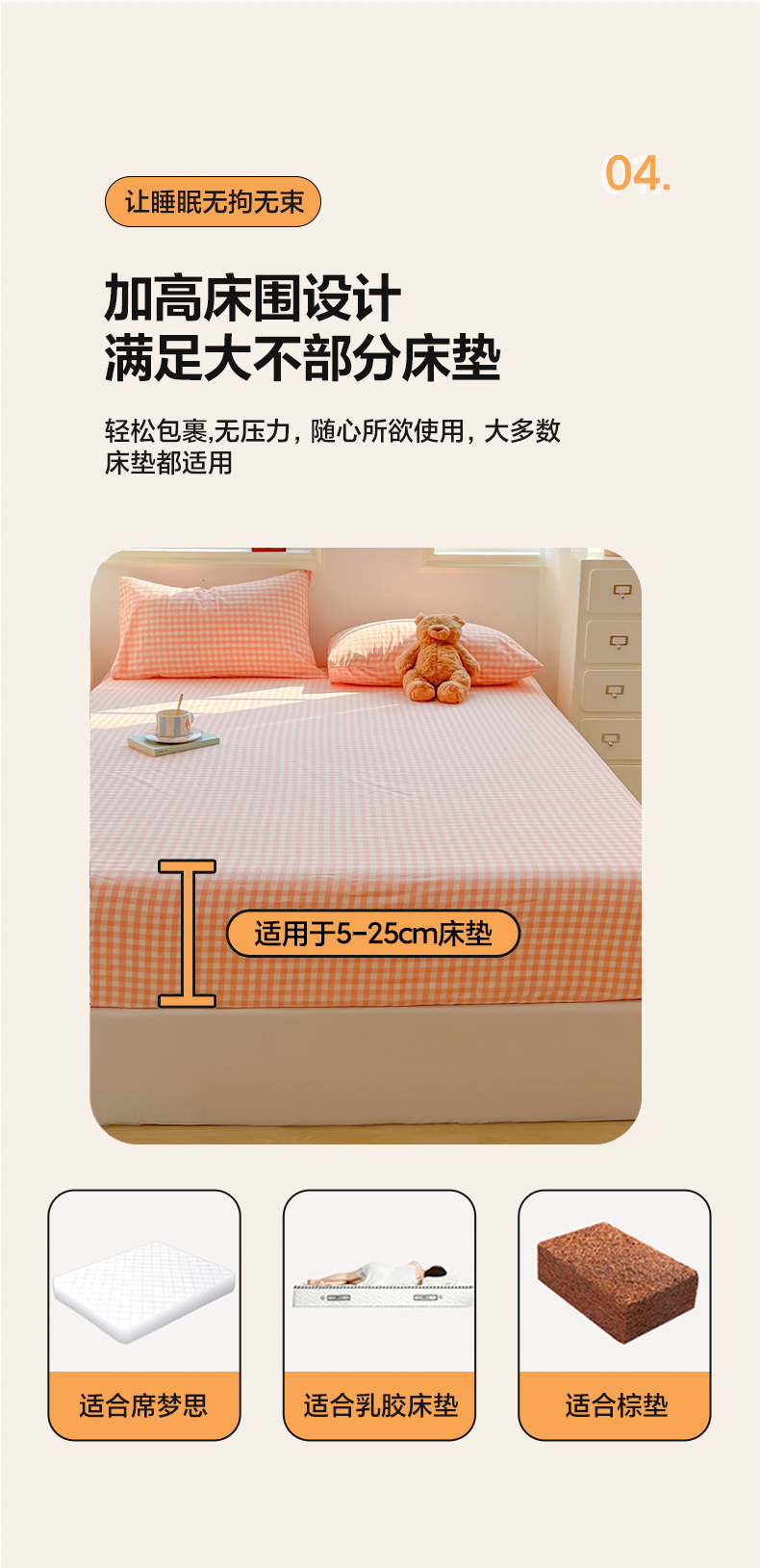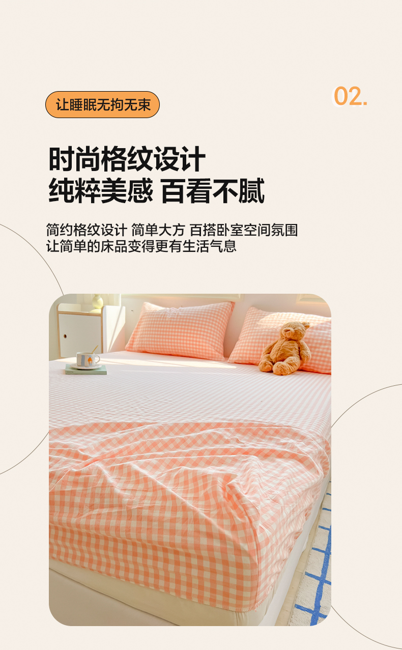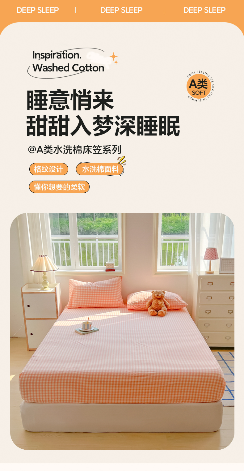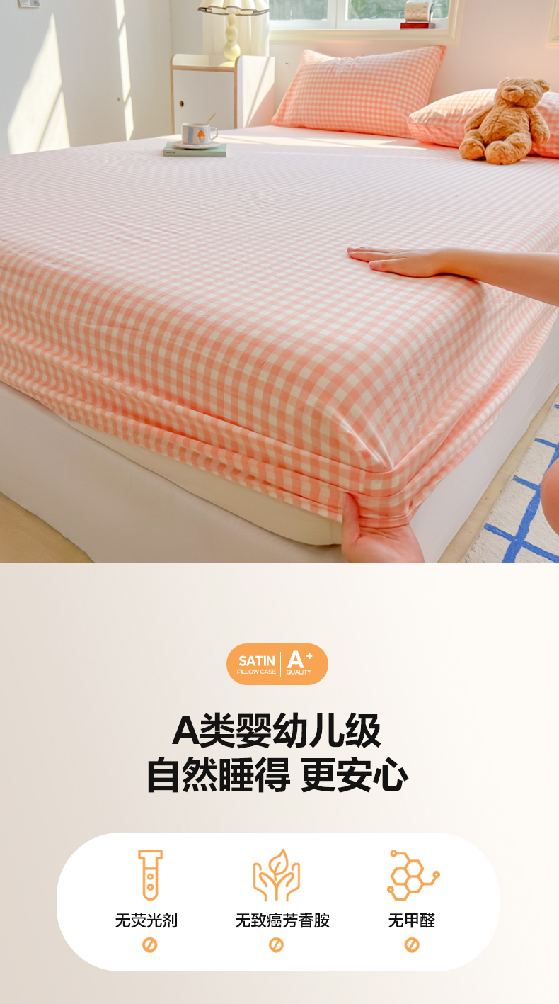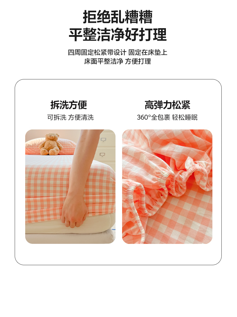 • 91家纺网 家纺一手货源 找家纺 韩巢家纺 2025新款A类纯色格子水洗棉床笠单件床罩床套 A类草莓格-床笠