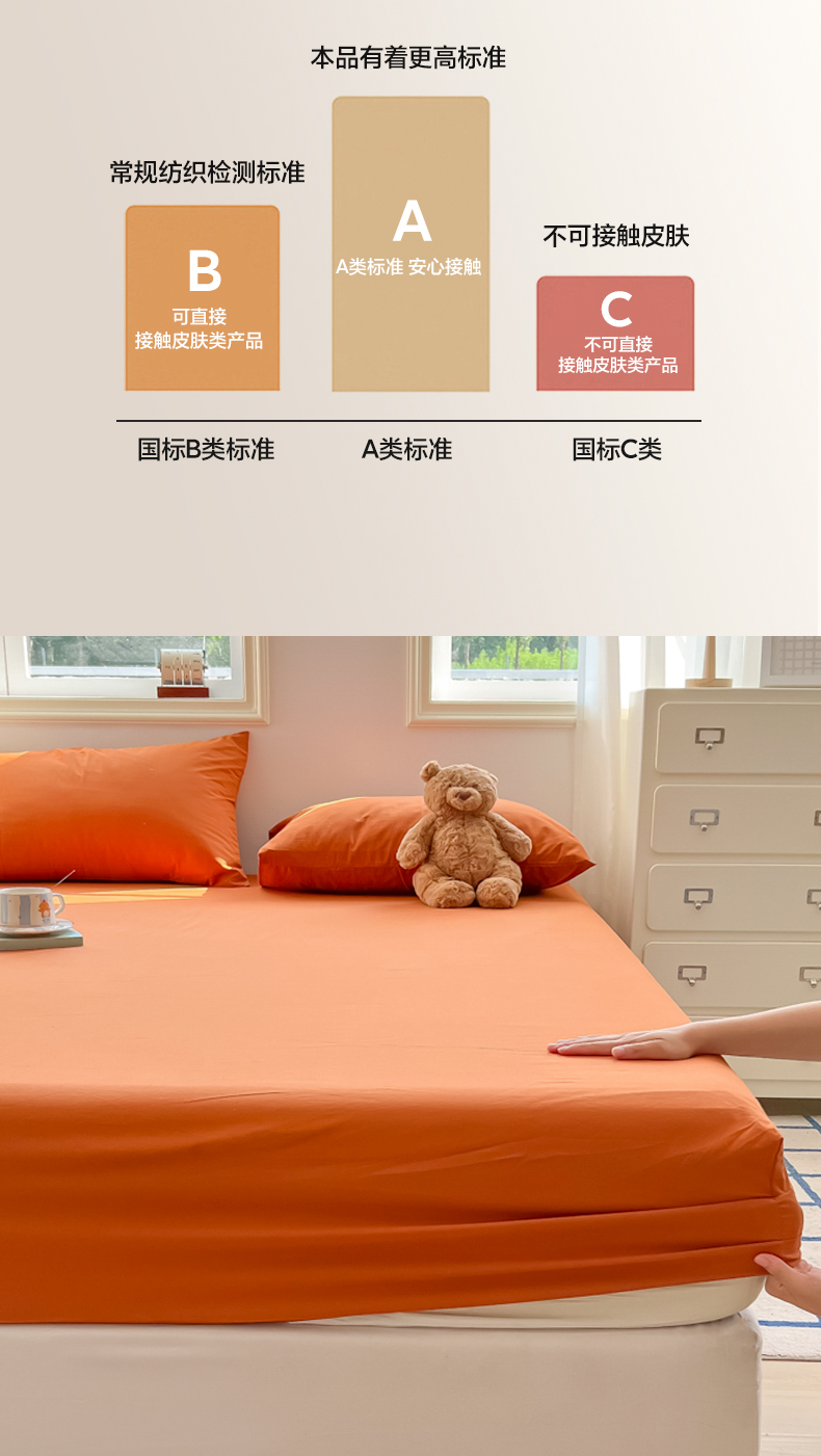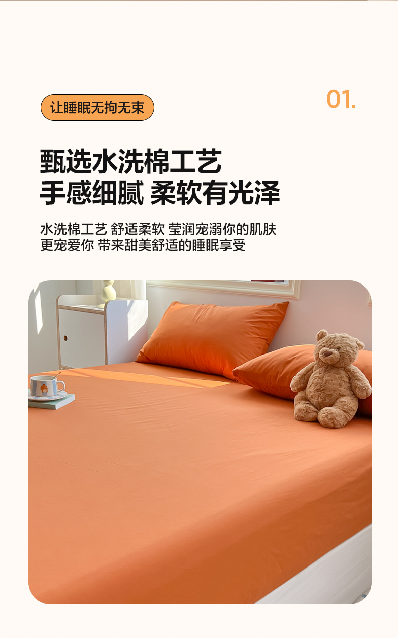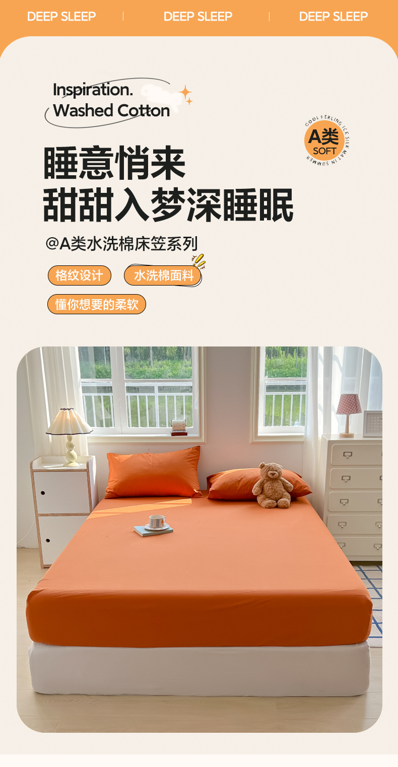 • 91家纺网 家纺一手货源 找家纺 韩巢家纺 2025新款A类纯色格子水洗棉床笠单件床罩床套 A类铁锈红-床笠