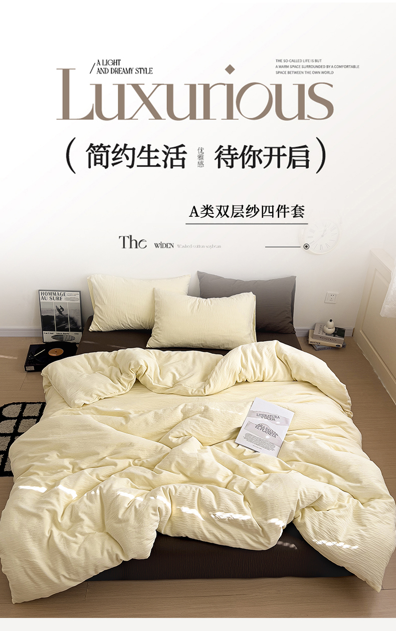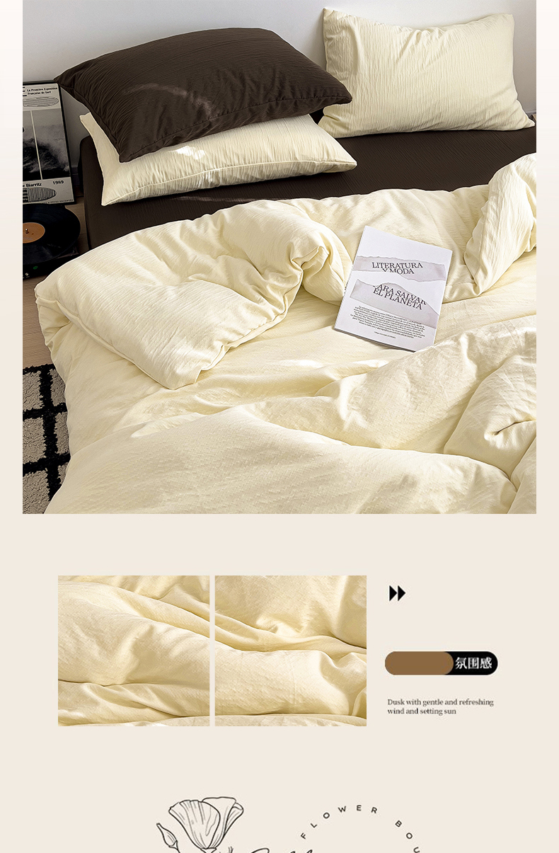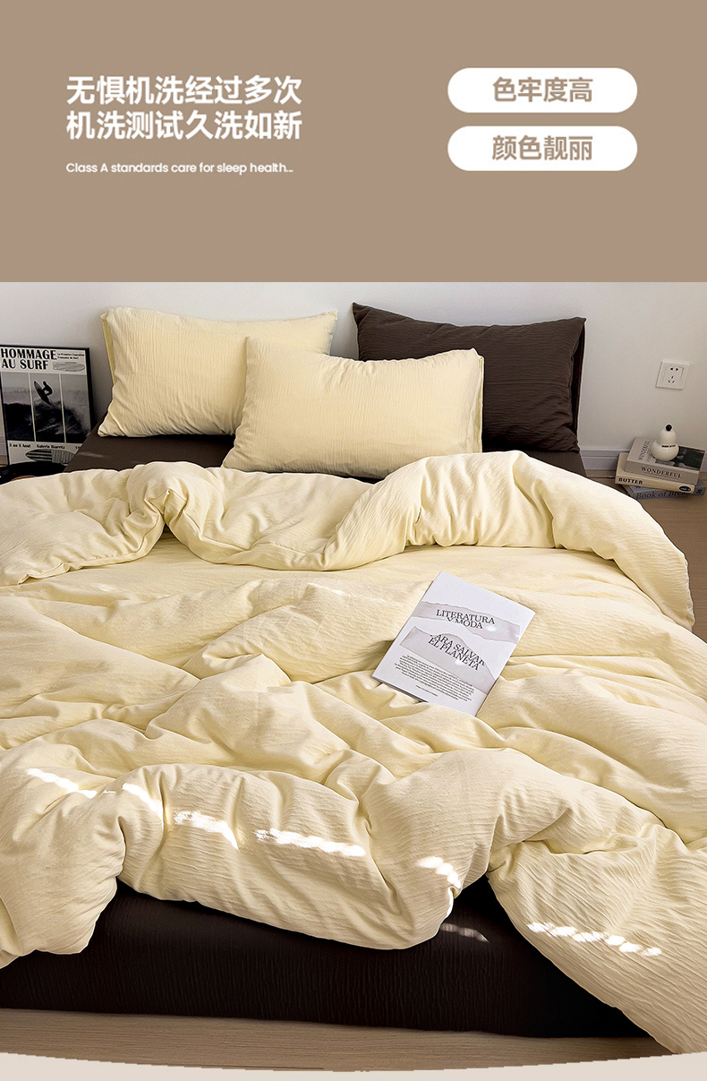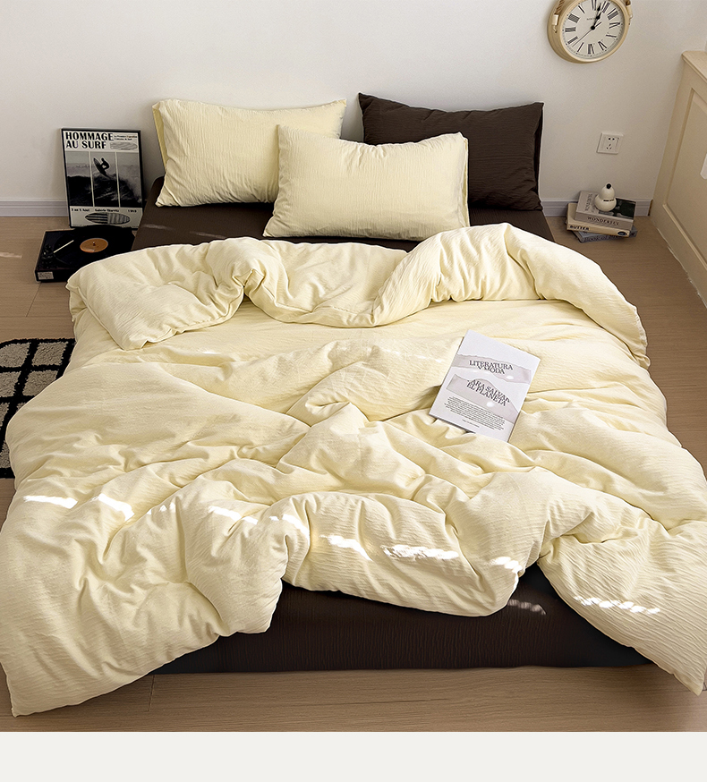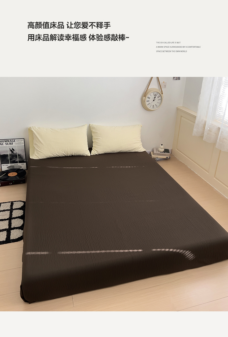当前位置: 91家纺网 > 商品网购 > 床品套件 > 四件套 > 其它四件套 > 凯洛奇 2025新款美拉德风1裸睡双层皱皱纱床单床笠被套四件套(高克重130克) 芝士+巧克力