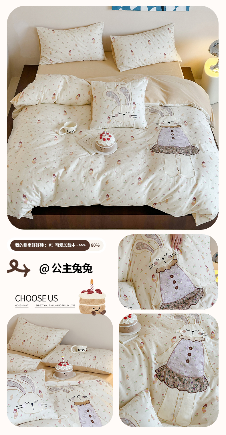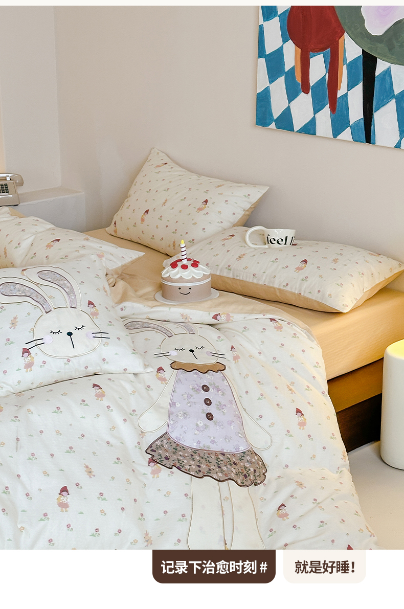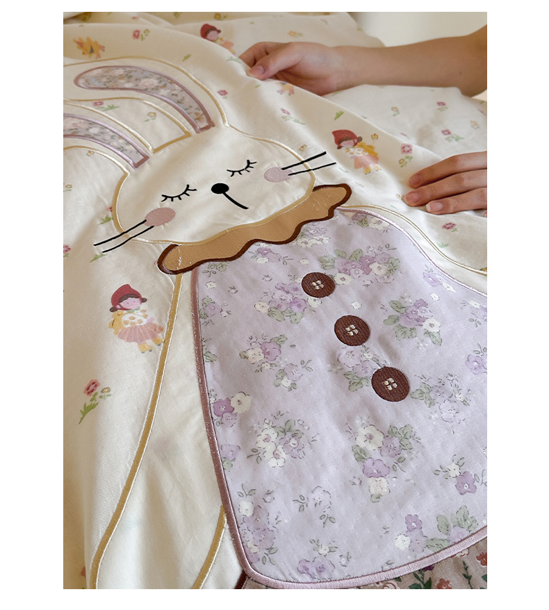 商品名称:卡巴伦家纺 2025新款全棉A类双层纱印花贴布绣四件套【全网控价(折后券后)不低于标准278/小号238元】 公主兔兔