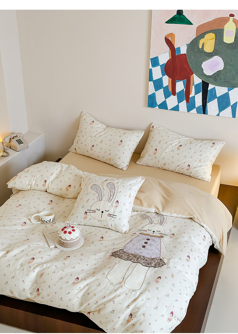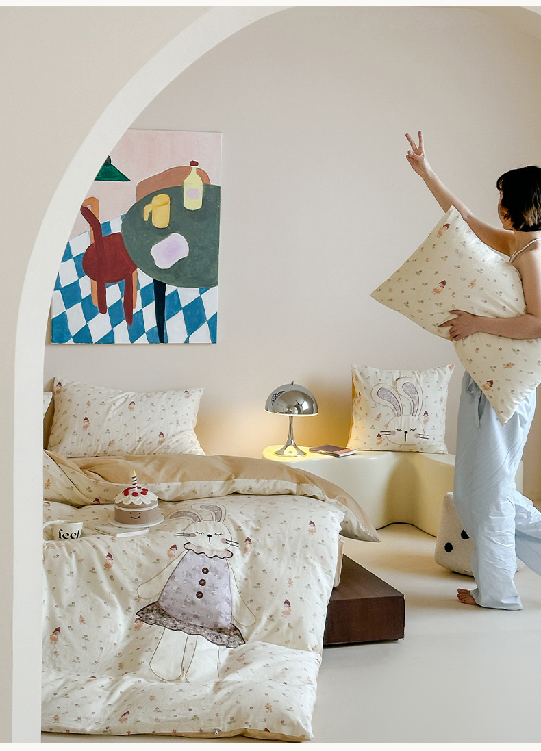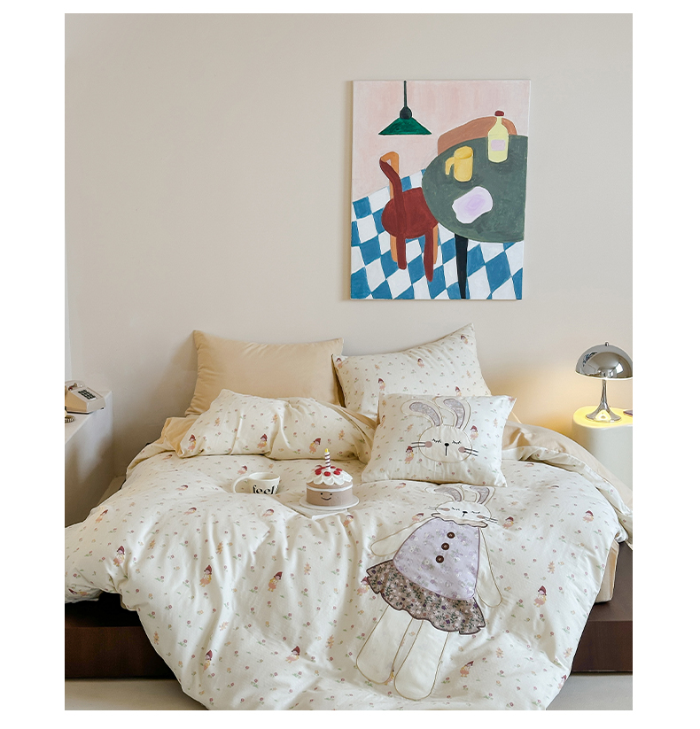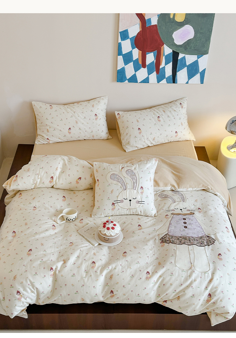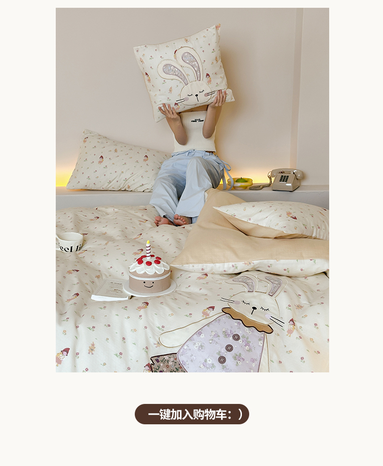 (总)卡巴伦家纺 2025新款全棉皱皱纱大版卡通数码印花款四件套一,洛可可兔-粉,班尼的花园-粉,班尼的花园-黄,漂亮的领结-绿,漂亮的领结-米白,熊猫噗噗-绿,樱桃真甜-奶白