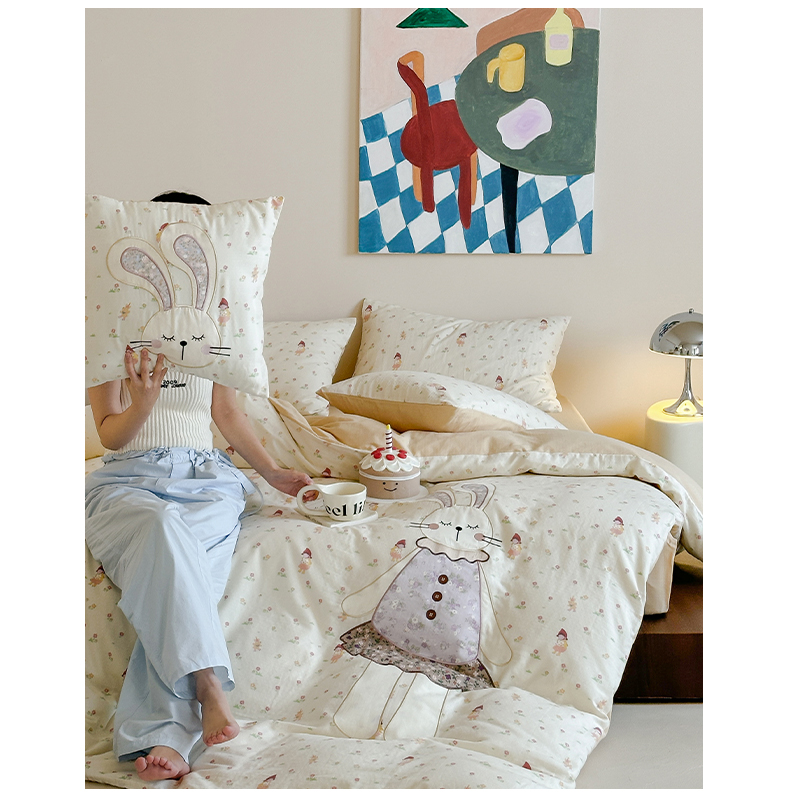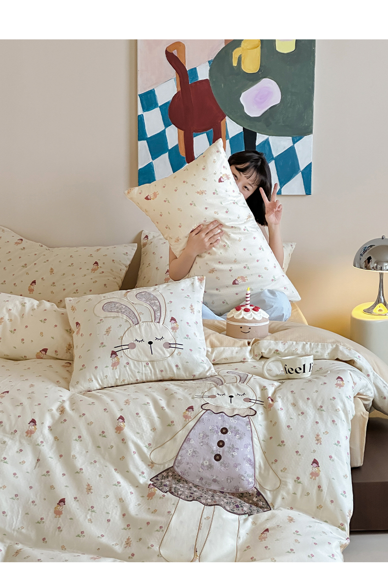 卡巴伦家纺 2025新款全棉A类双层纱印花贴布绣四件套【全网控价(折后券后)不低于标准278/小号238元】 公主兔兔