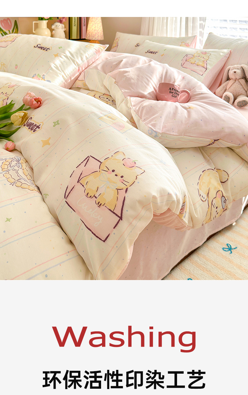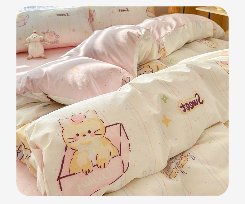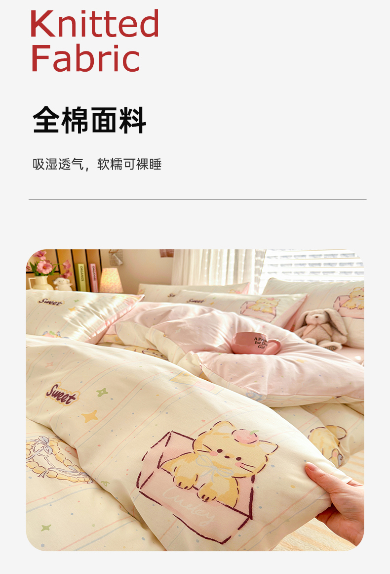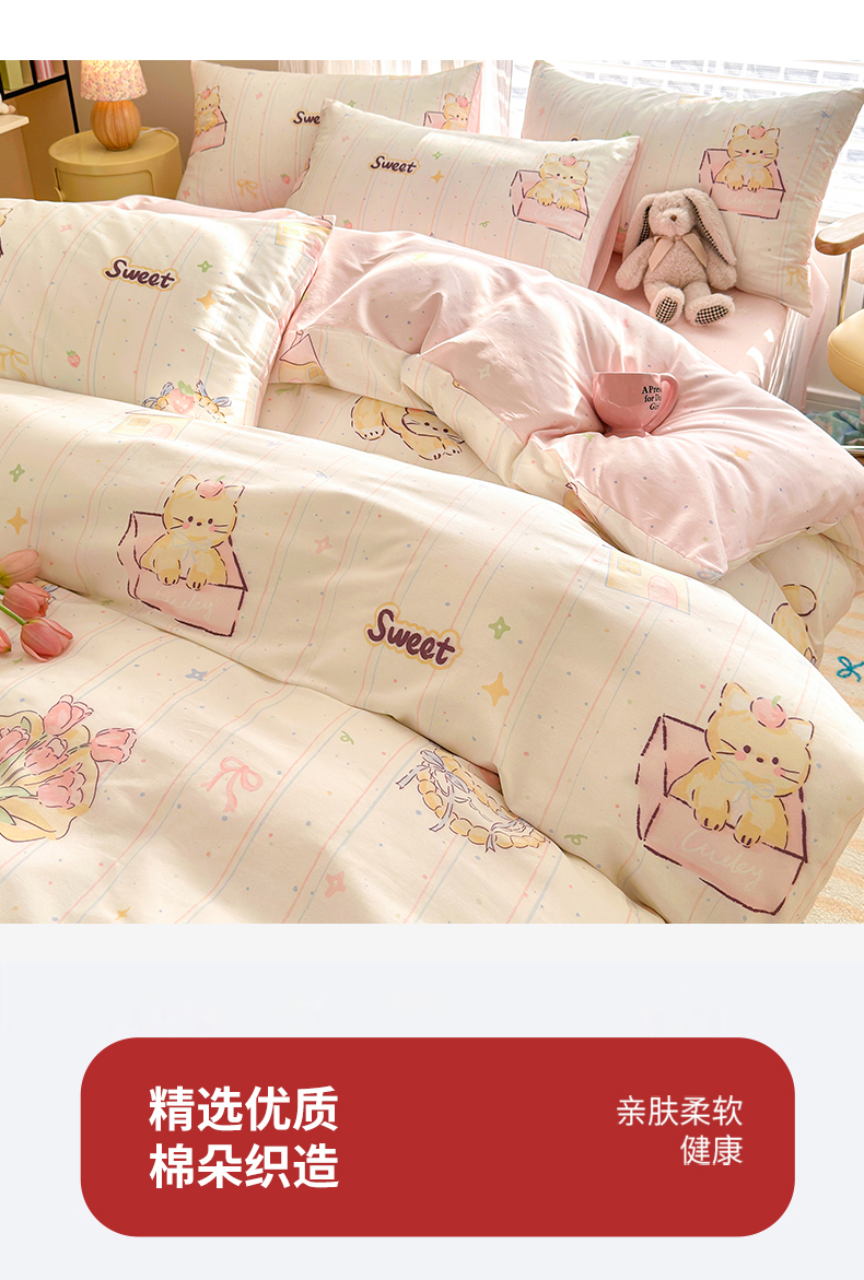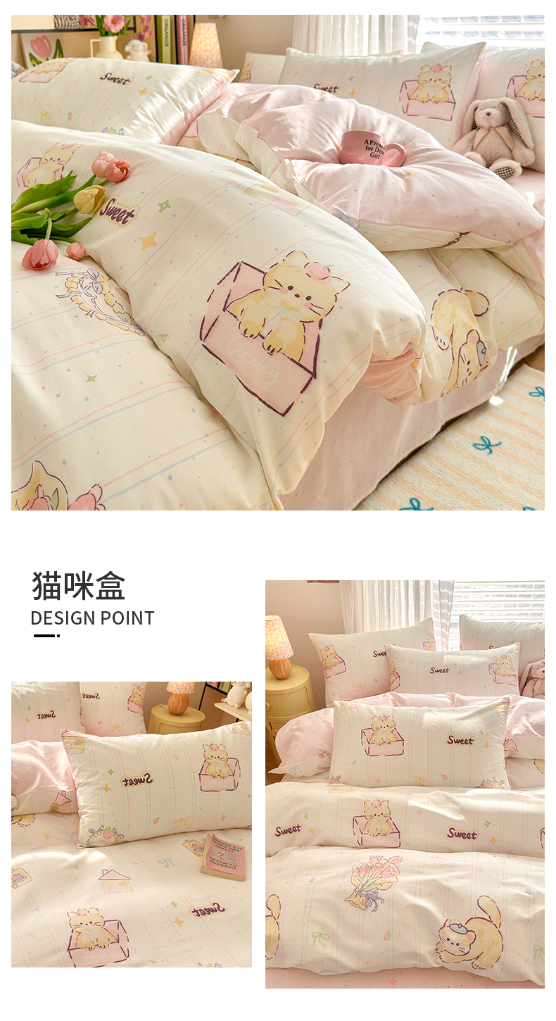 名兮家居 2025新款12868全棉纯棉四件套 猫咪盒