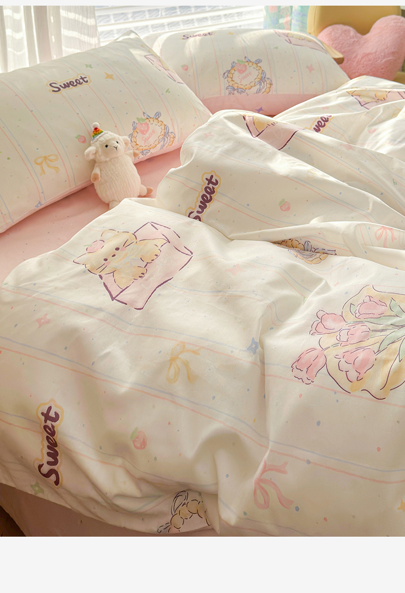 (总)名兮 2023新款全棉印花卡通风四件套,抱抱熊,波波熊,菲菲兔,机器小新,可爱萌宠,可爱兔
