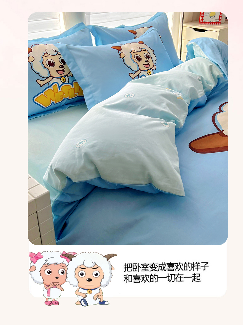 当前位置: 91家纺网 > 商品网购 > 床品套件 > 四件套 > 全棉普通四件套 > 浩诚 2025新款第二批正版喜羊羊灰太狼全棉卡通大版印花四件套-提供买家秀 喜气羊羊