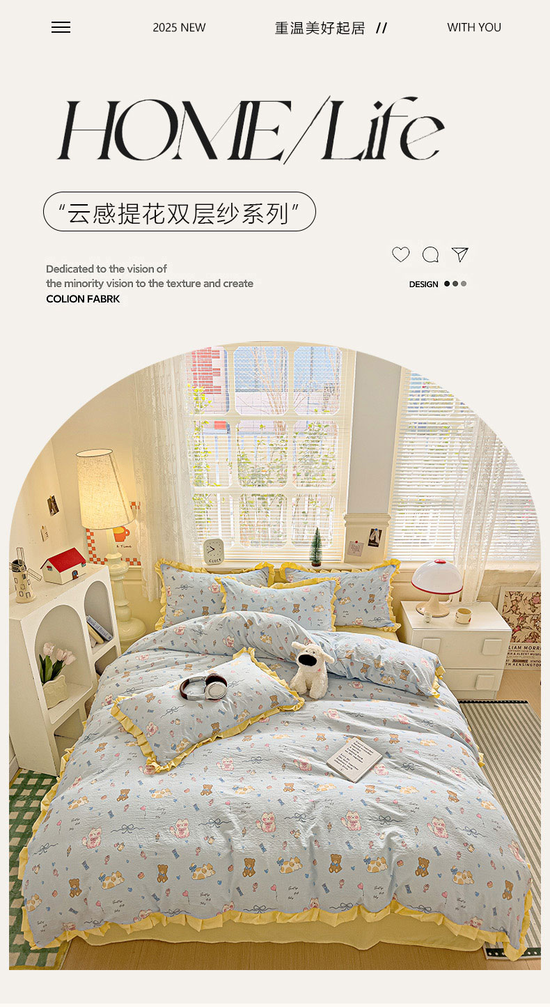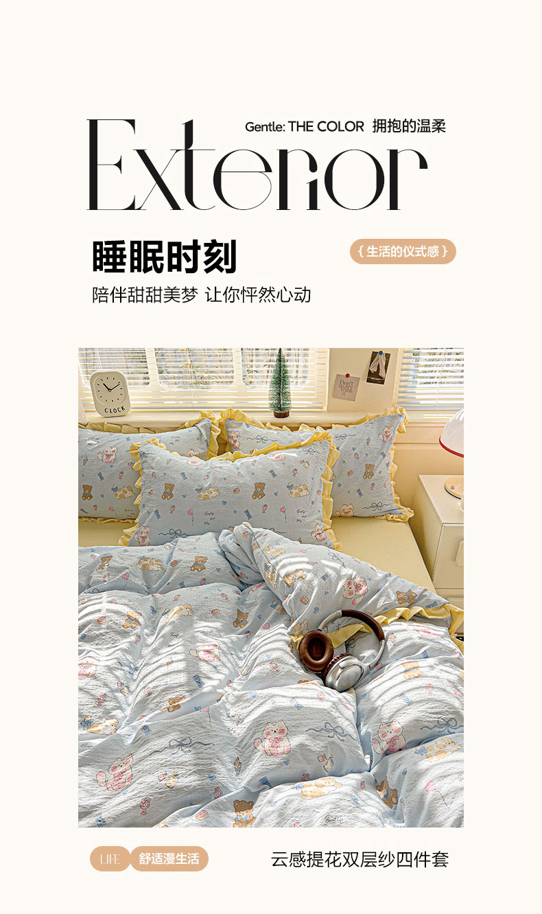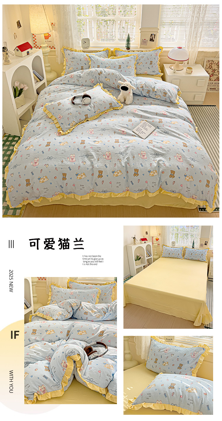 当前位置: 91家纺网 > 商品网购 > 床品套件 > 四件套 > 其它四件套 > 迪梦姿家纺 2025新款印花云感双层纱四件套 可爱猫兰