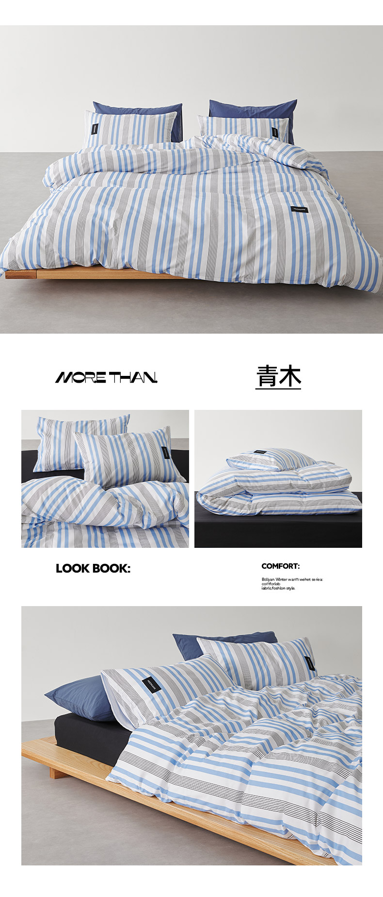 商品名称:怡家居 2025新款极简黑标系列蓝色条纹四件套 青木
