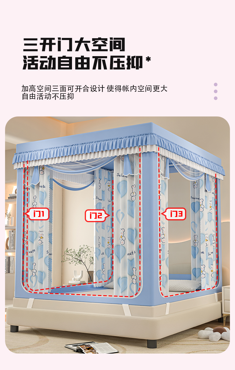 当前位置: 91家纺网 > 商品网购 > 床上用品 > 蚊帐 > 坐床式蚊帐 > 千逸虹 2025新款坐床防摔可拆卸遮光双层布帘蚊帐 甜蜜小熊