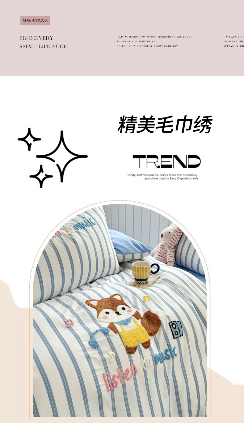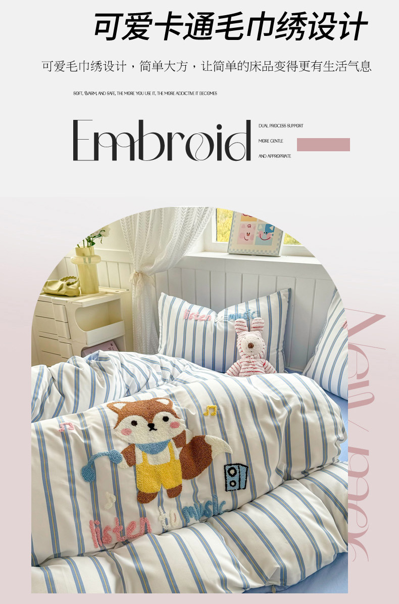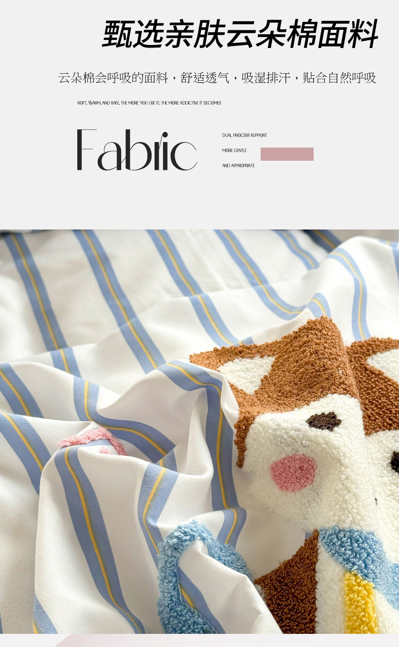 当前位置: 91家纺网 > 商品网购 > 床品套件 > 四件套 > 上尚居 2025新款云朵棉卡通毛巾绣四件套 小狐狸