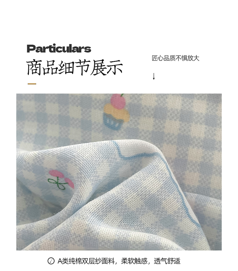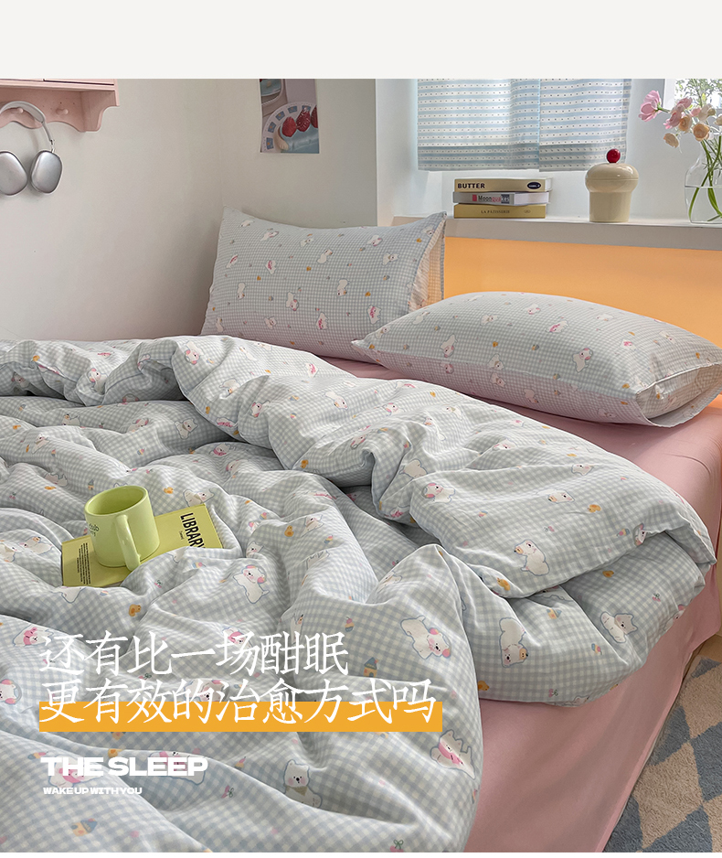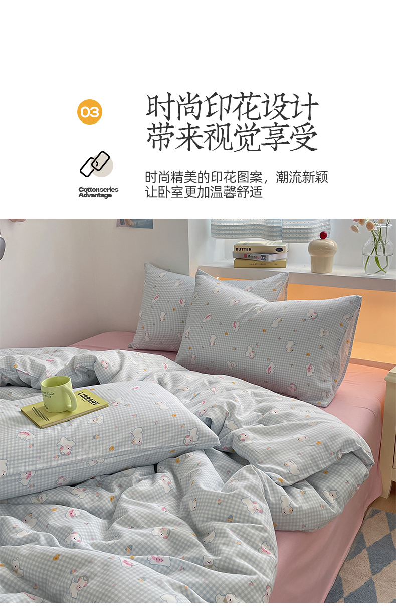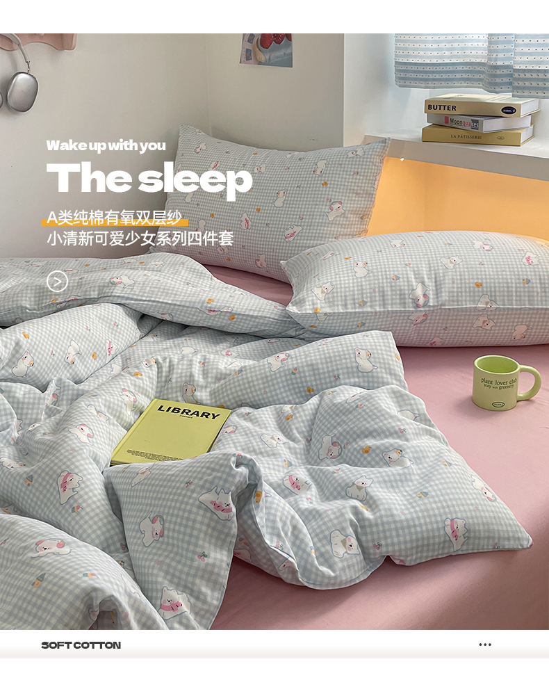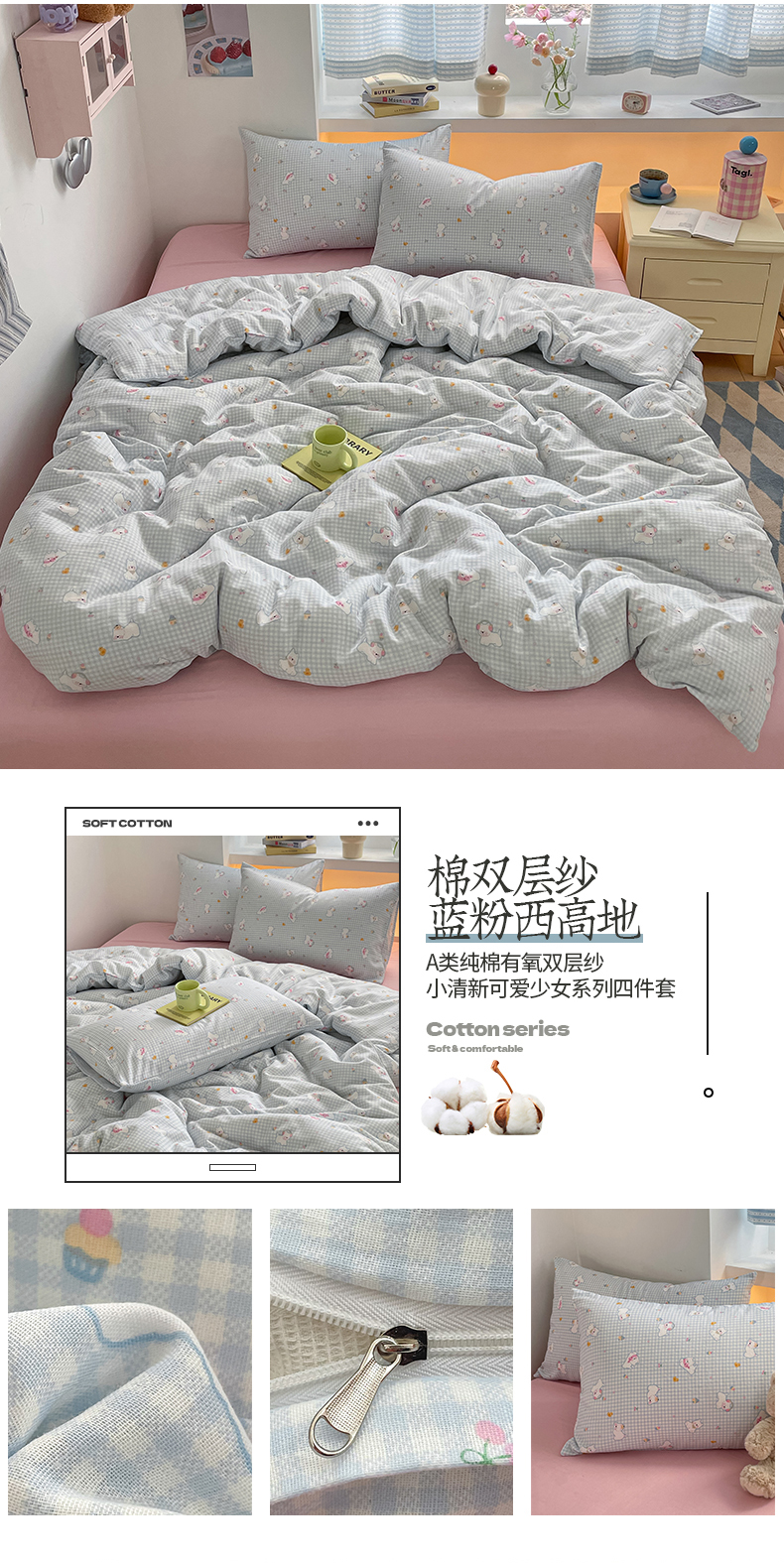 当前位置: 91家纺网 > 商品网购 > 床品套件 > 四件套 > 全棉普通四件套 > 桃子家居2025新款A类纯棉有氧双层纱小清新可爱少女系列四件套 棉双层纱-蓝粉西高地
