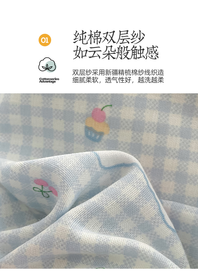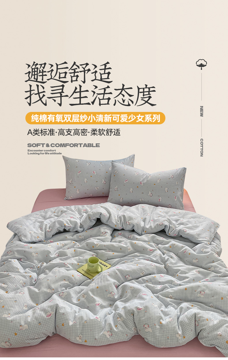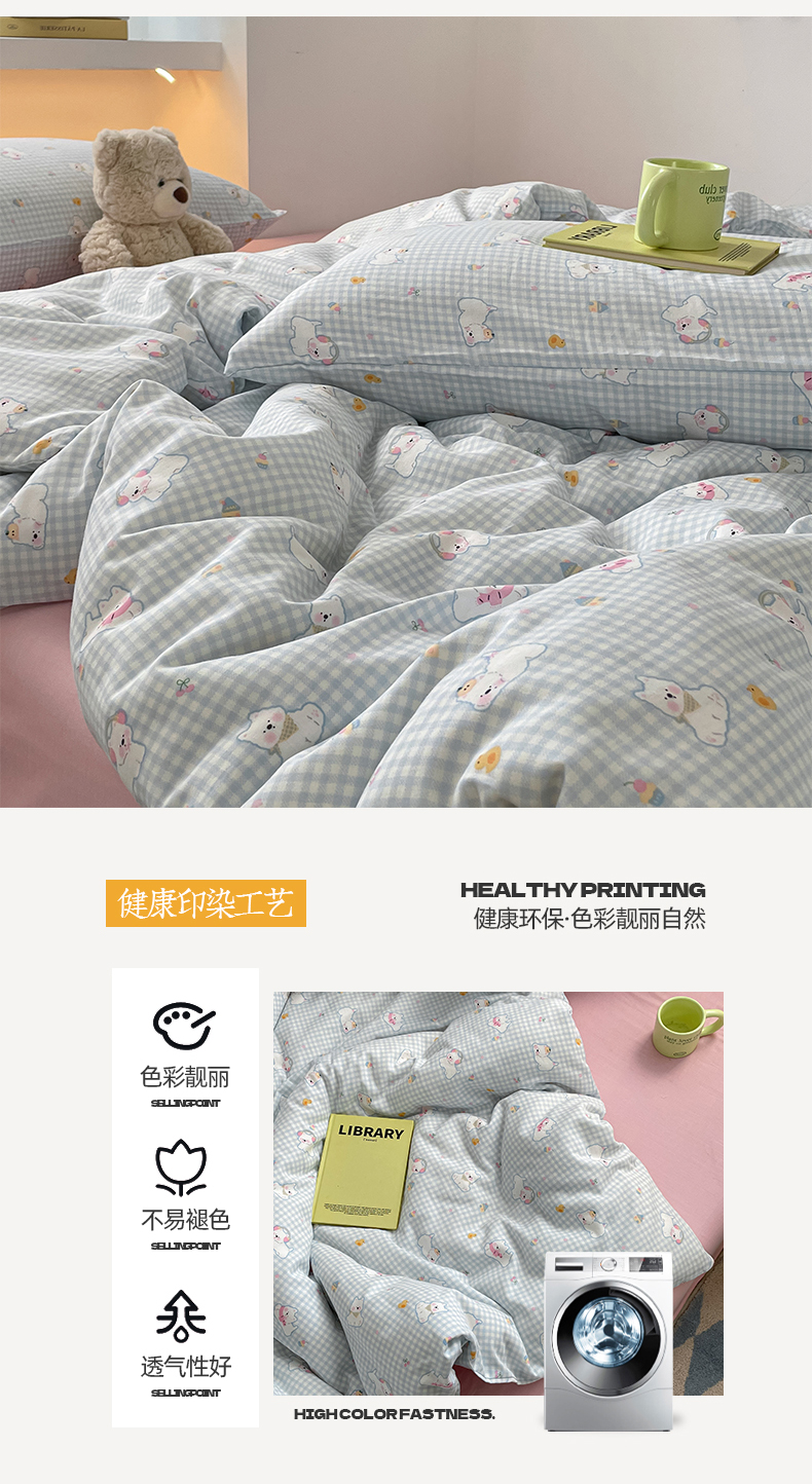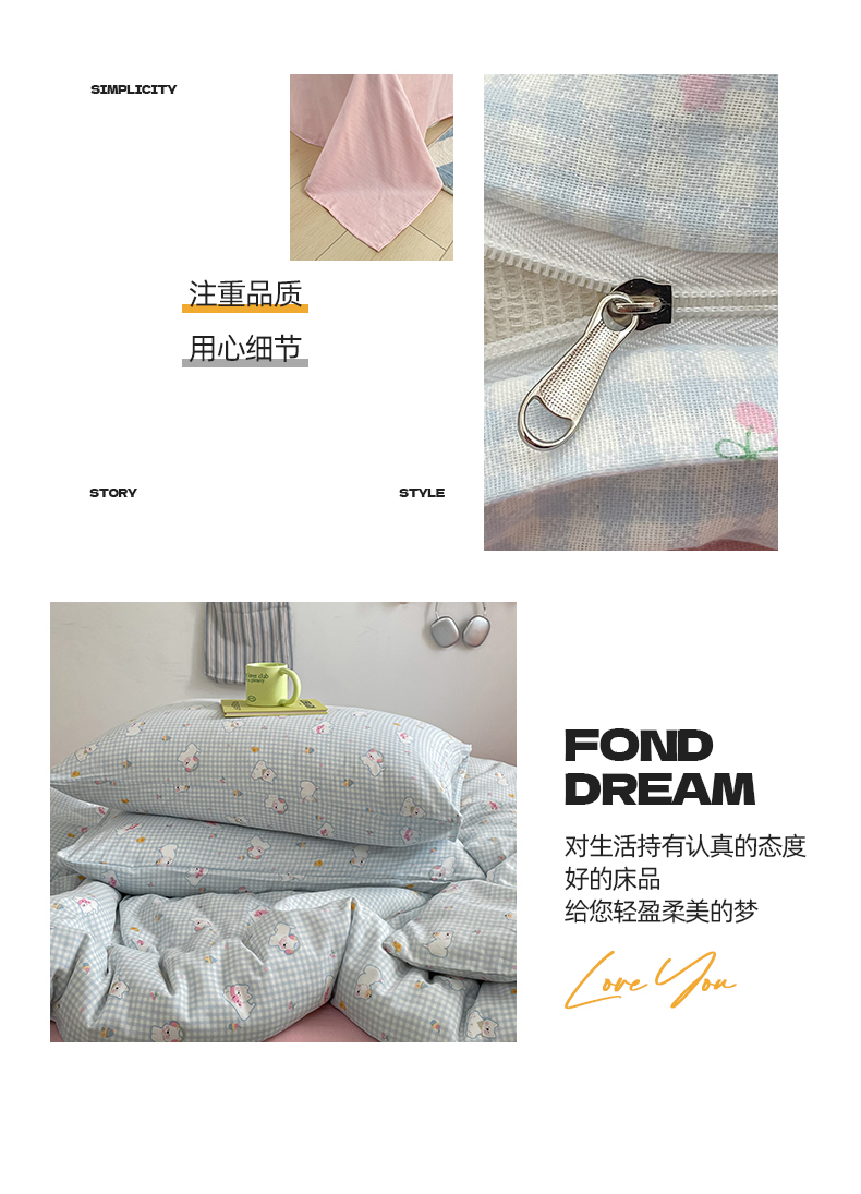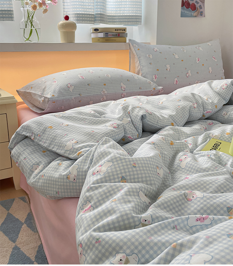 当前位置: 91家纺网 > 商品网购 > 床品套件 > 四件套 > 全棉普通四件套 > 桃子家居2025新款A类纯棉有氧双层纱小清新可爱少女系列四件套 棉双层纱-蓝粉西高地