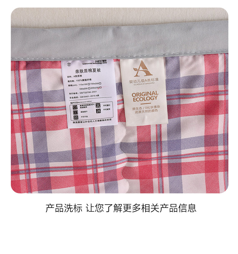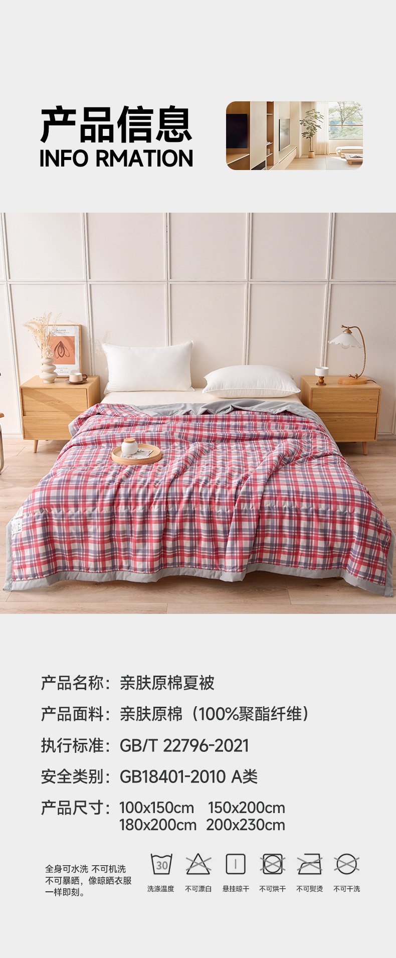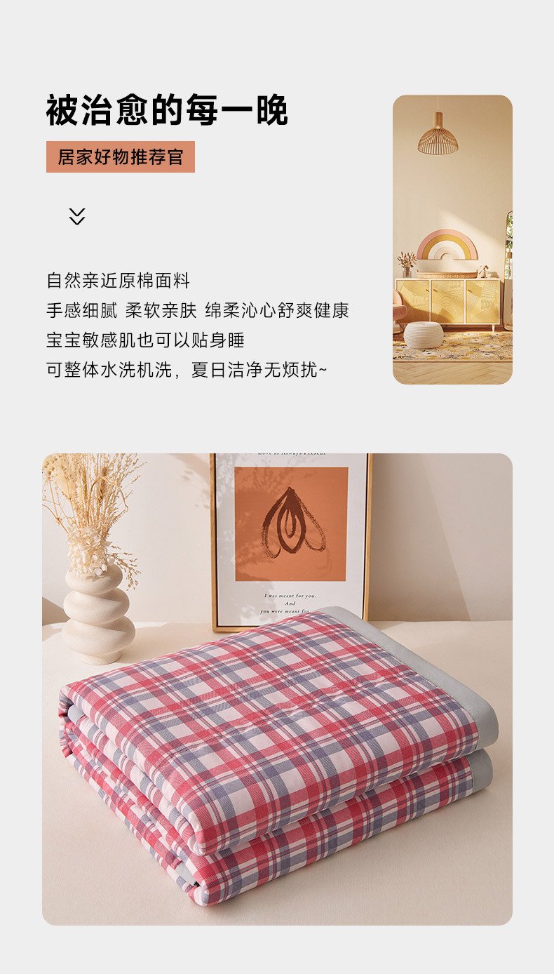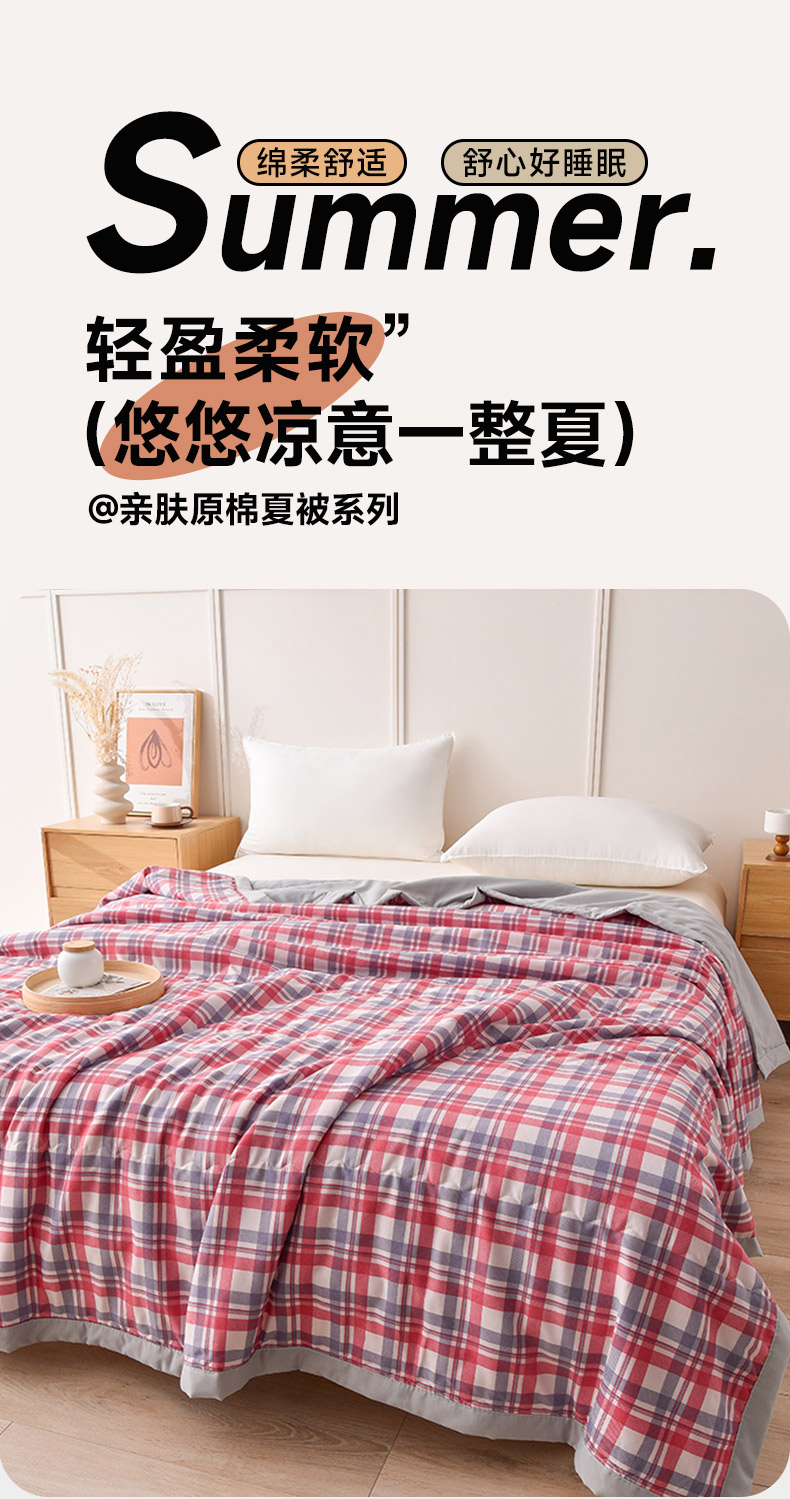 商品名称:艾兜坊 2025新款亲肤原棉夏被 4红蓝格