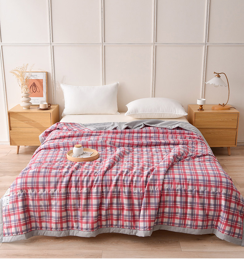 艾兜坊 2025新款亲肤原棉夏被 4红蓝格