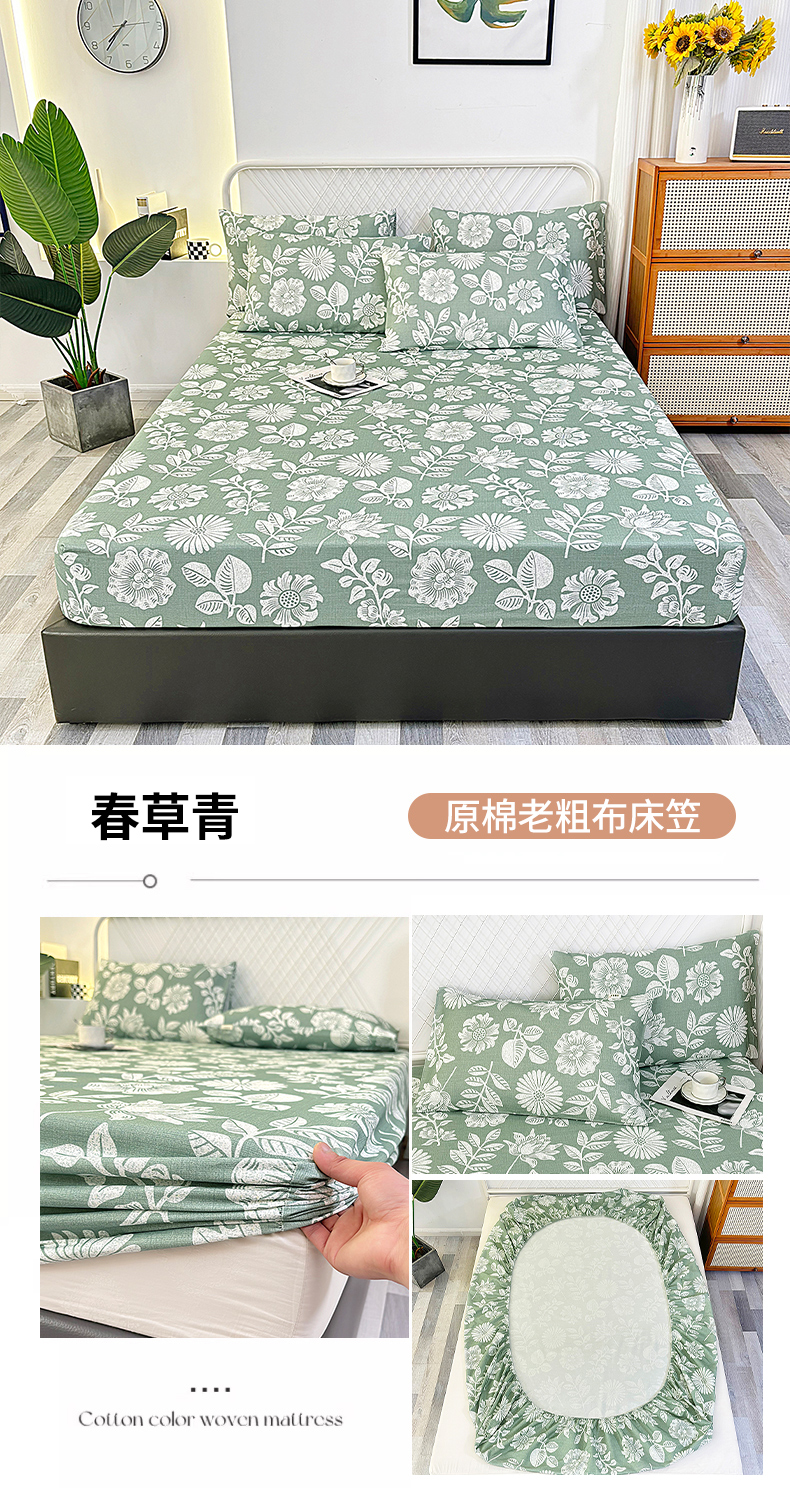 • 91家纺网 家纺一手货源 找家纺 伊而梦蚊帐 2025新款原棉老粗布床笠 春草青