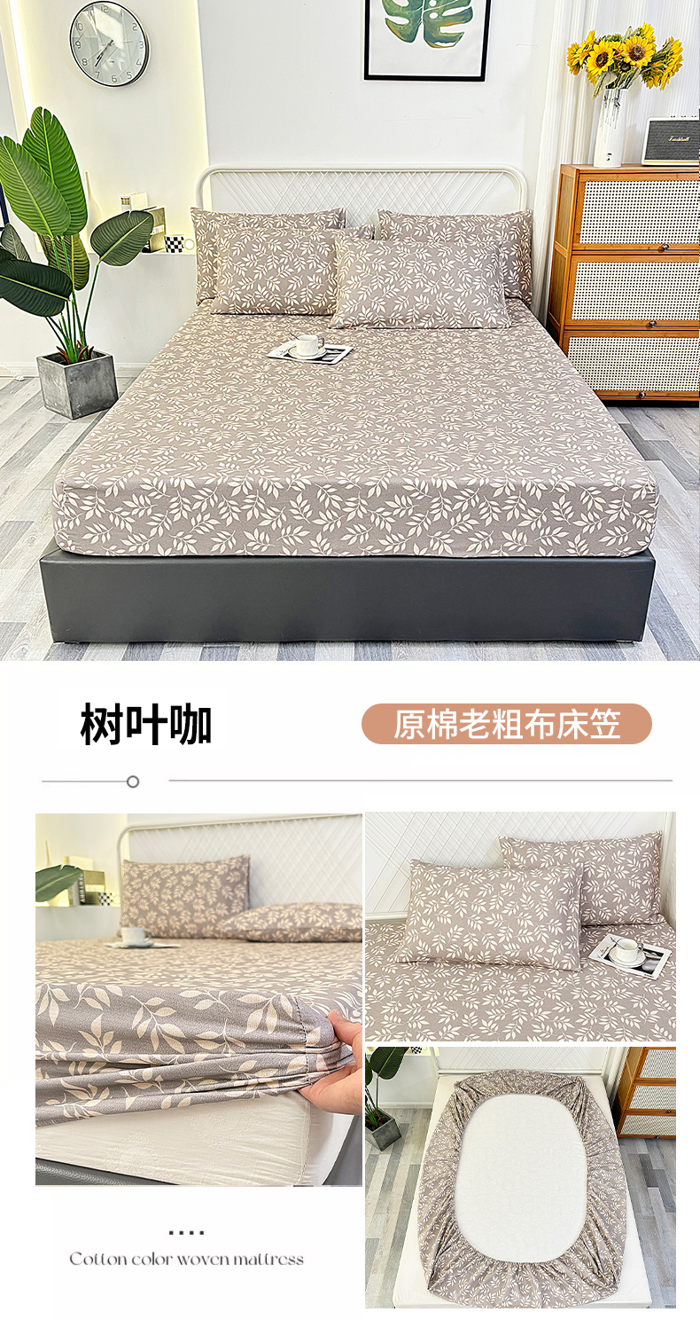 • 91家纺网 家纺一手货源 找家纺 伊而梦蚊帐 2025新款原棉老粗布床笠 树叶咖