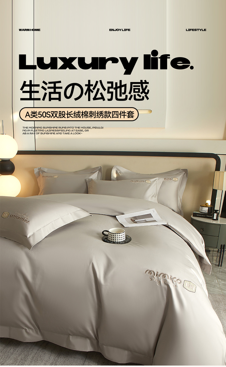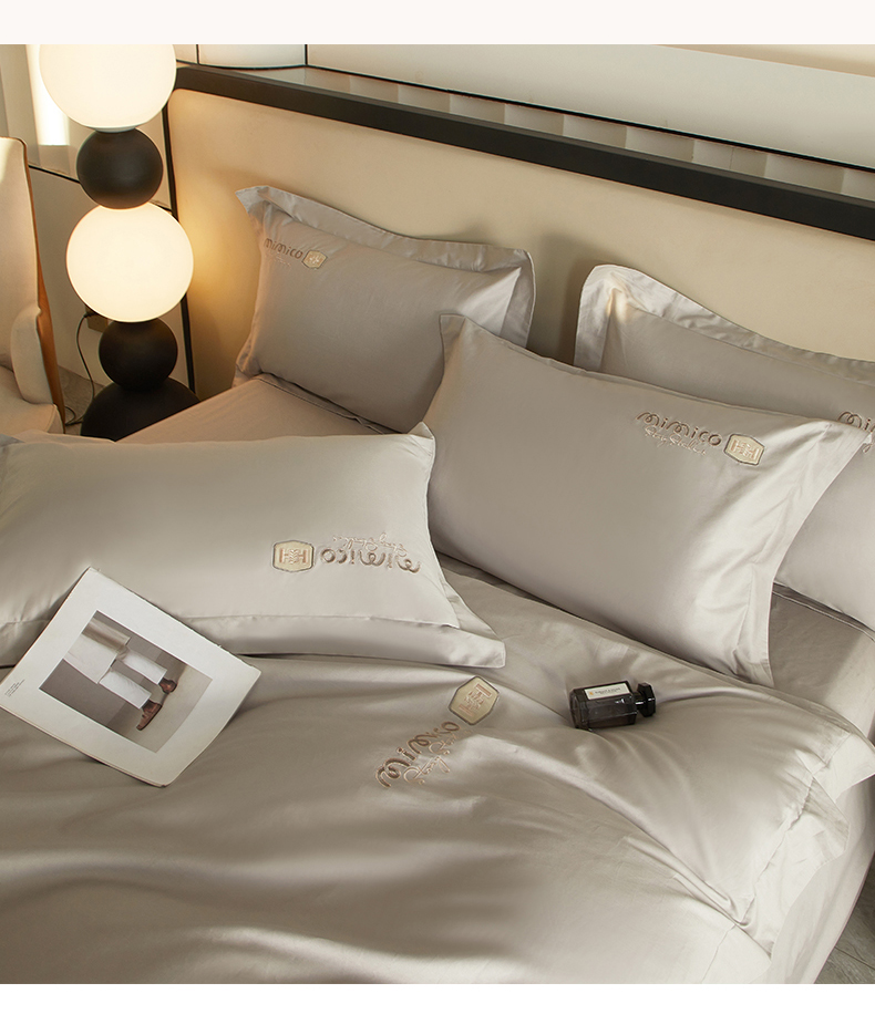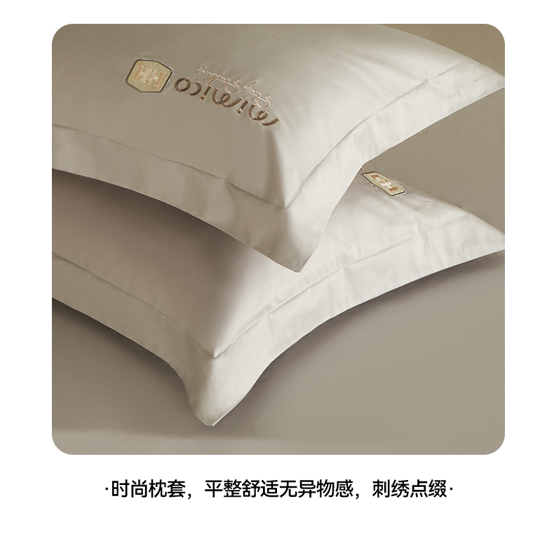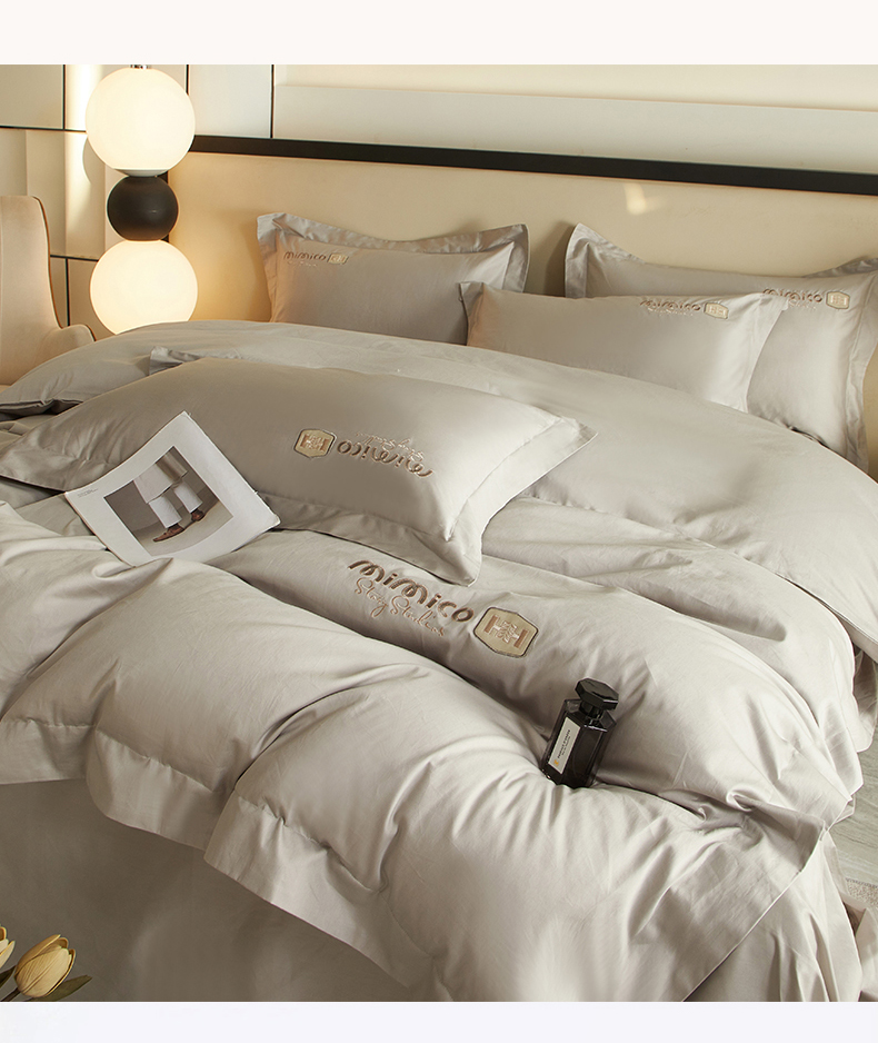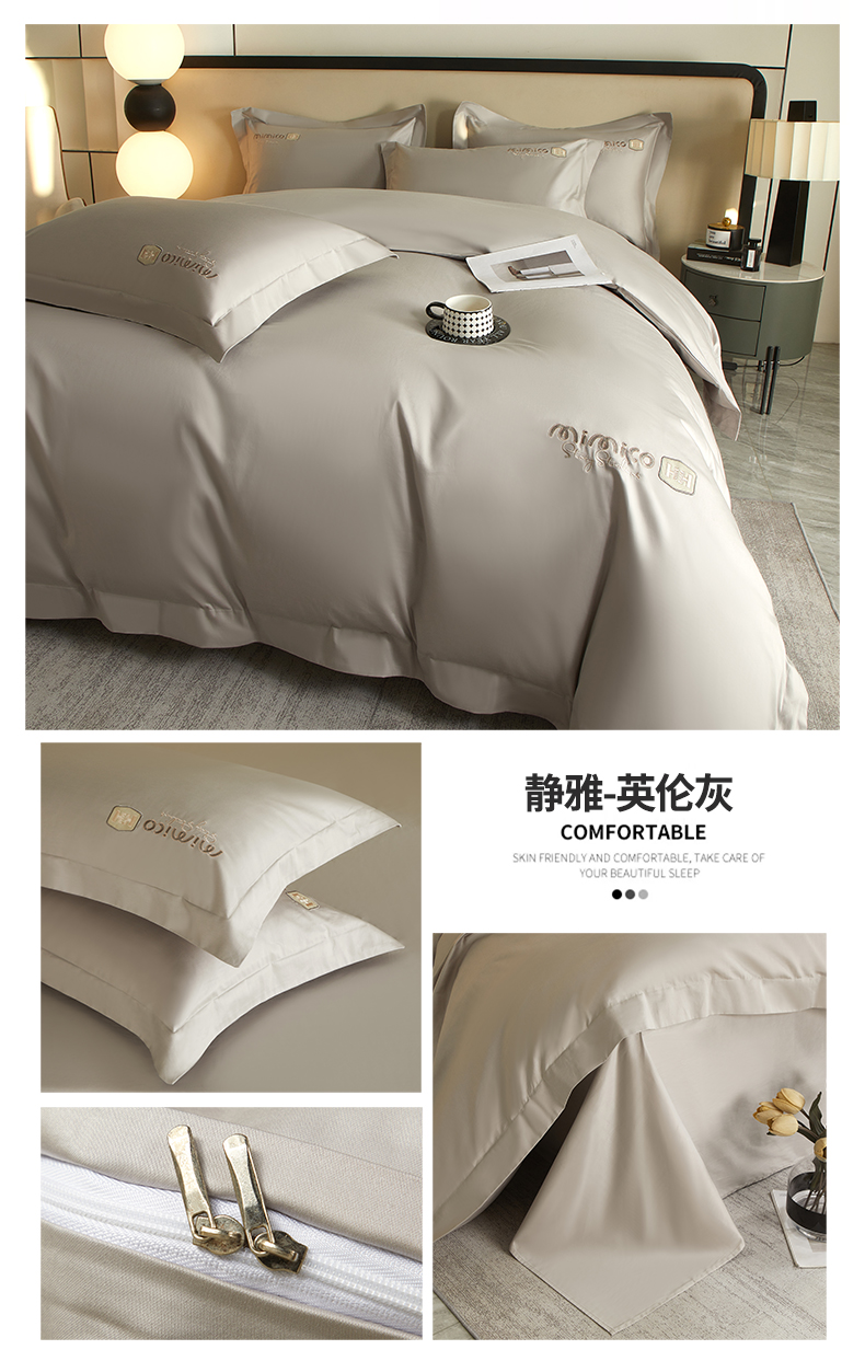 曼秀琳家纺 2025新款50s双股长绒棉刺绣款四件套(静雅系列) 静雅-英伦灰