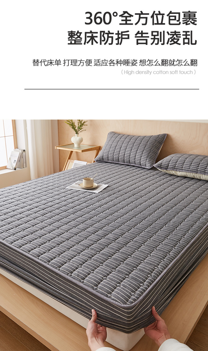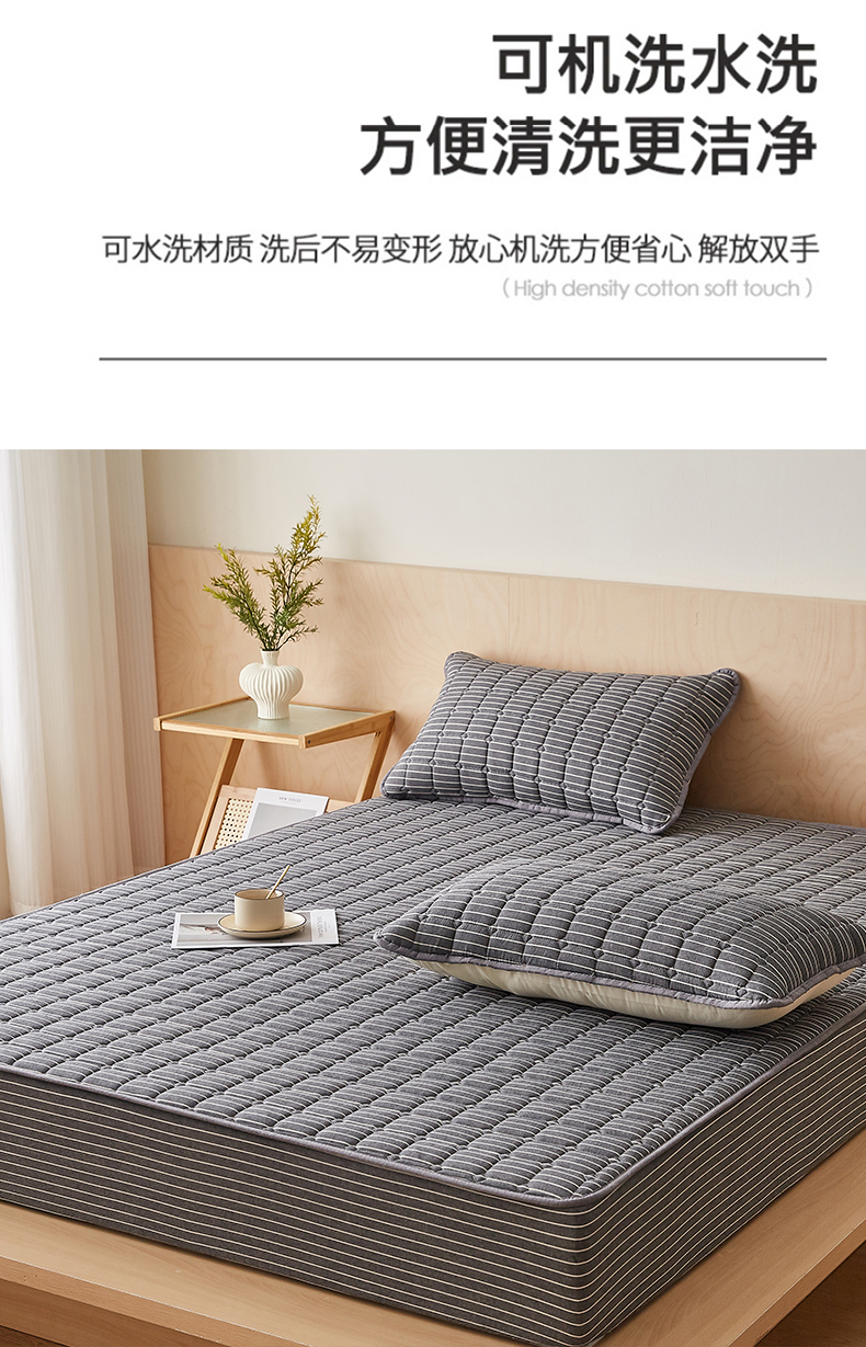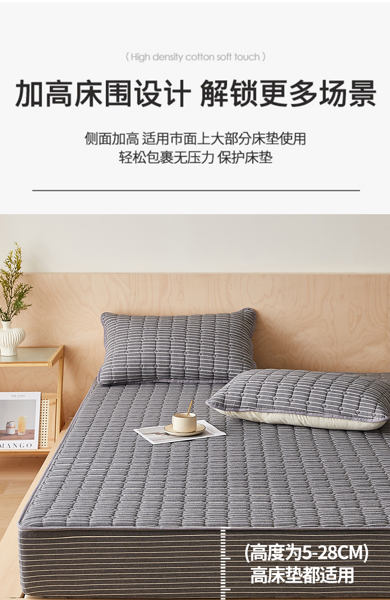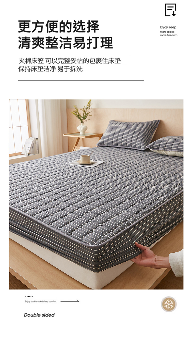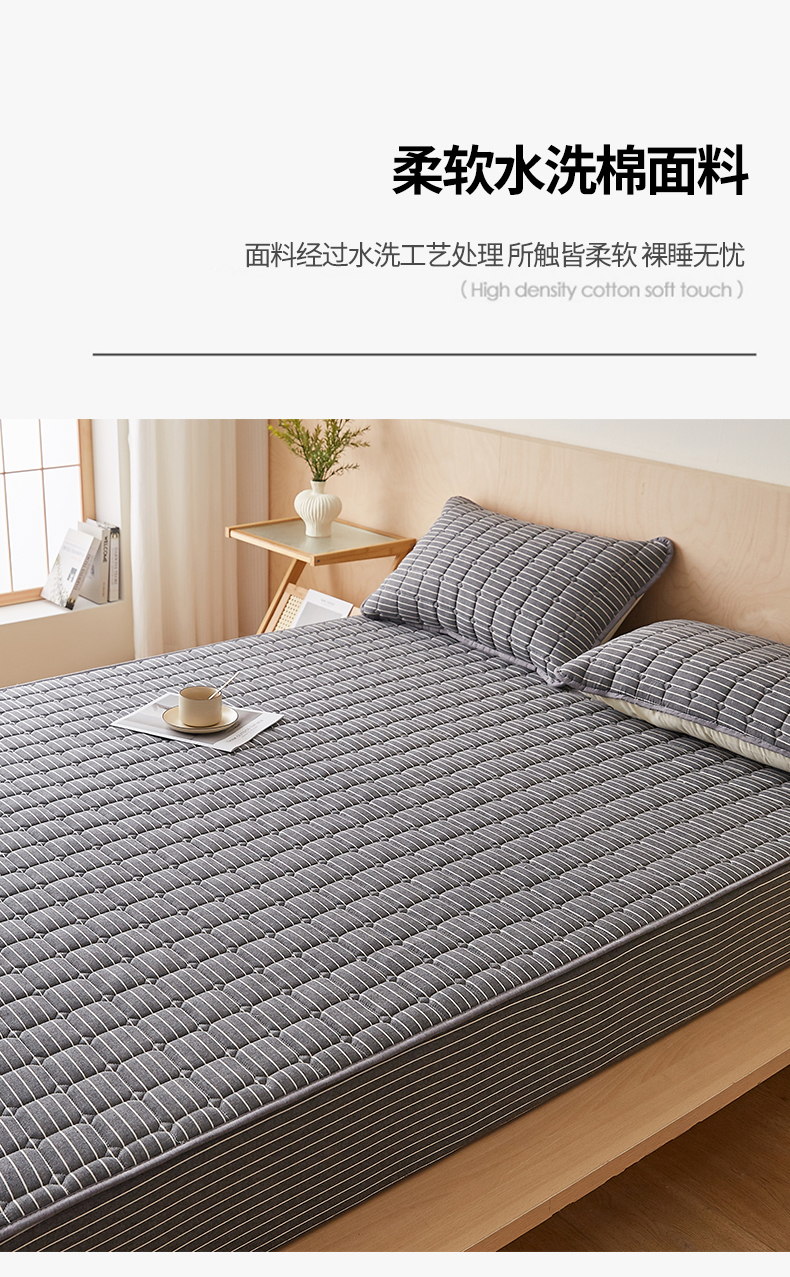 • 91家纺网 家纺一手货源 找家纺 暖季家纺 2025新款水洗棉夹棉床笠无印风棉花款 棉花床笠灰细条