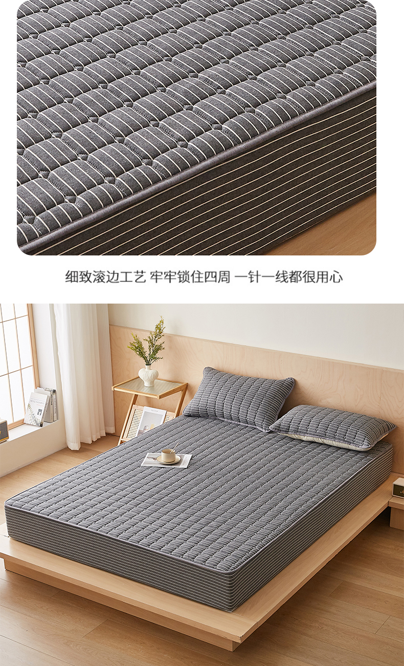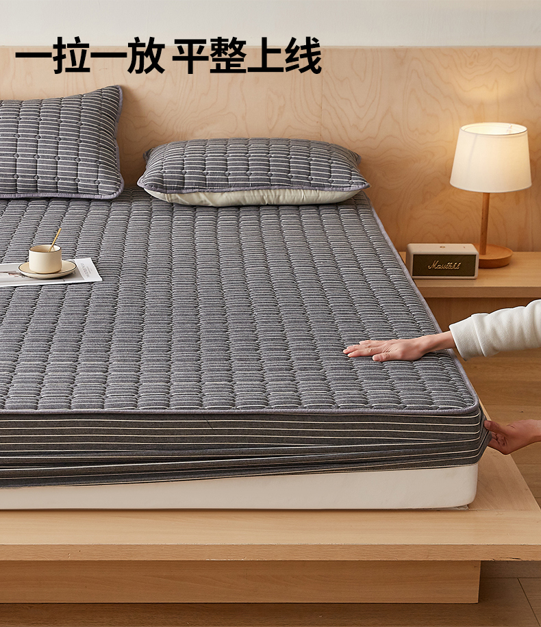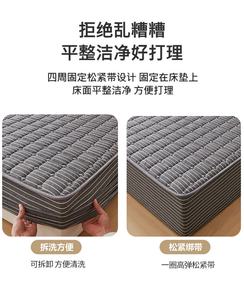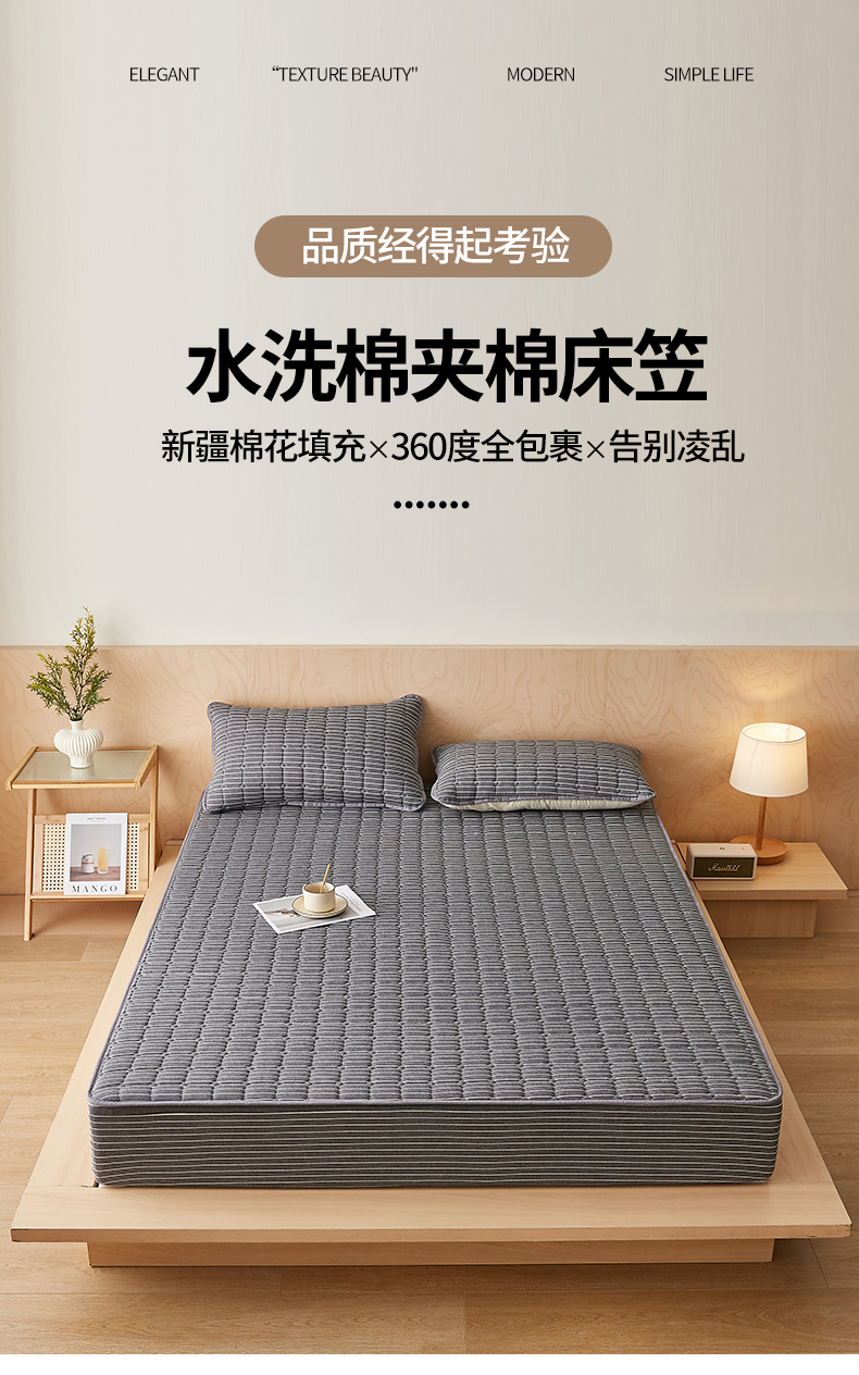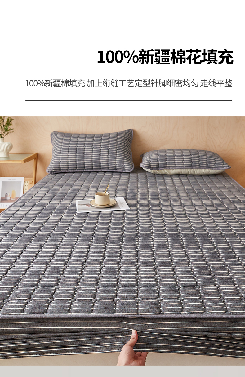 • 91家纺网 家纺一手货源 找家纺 暖季家纺 2025新款水洗棉夹棉床笠无印风棉花款 棉花床笠灰细条