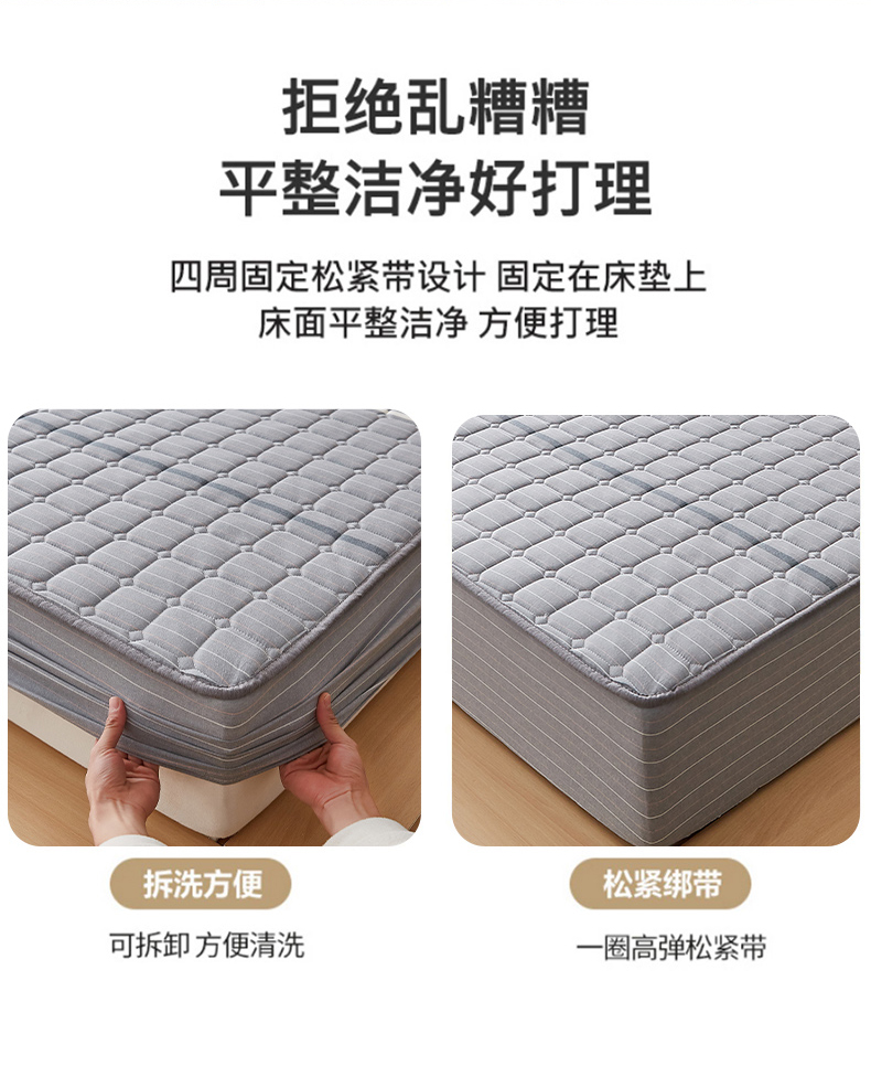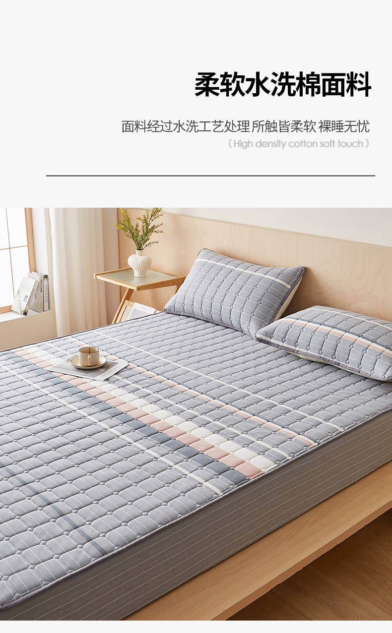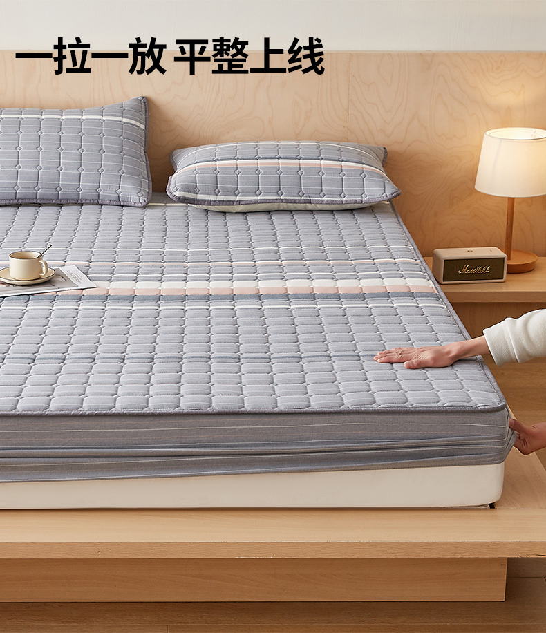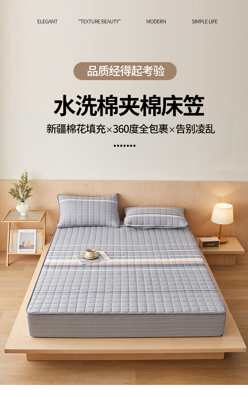 • 91家纺网 家纺一手货源 找家纺 暖季家纺 2025新款水洗棉夹棉床笠无印风棉花款 棉花床笠马里奥灰