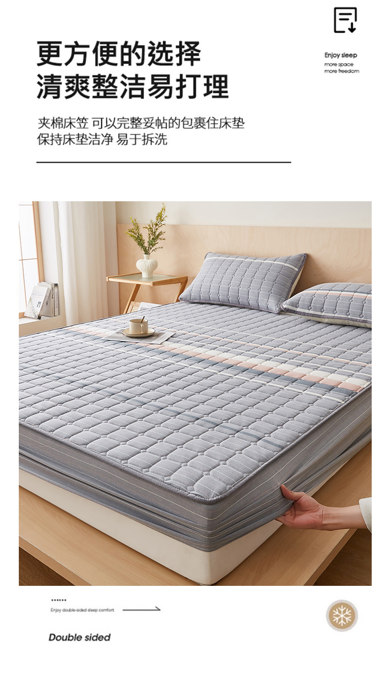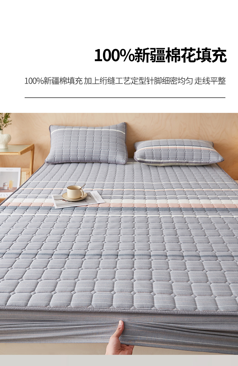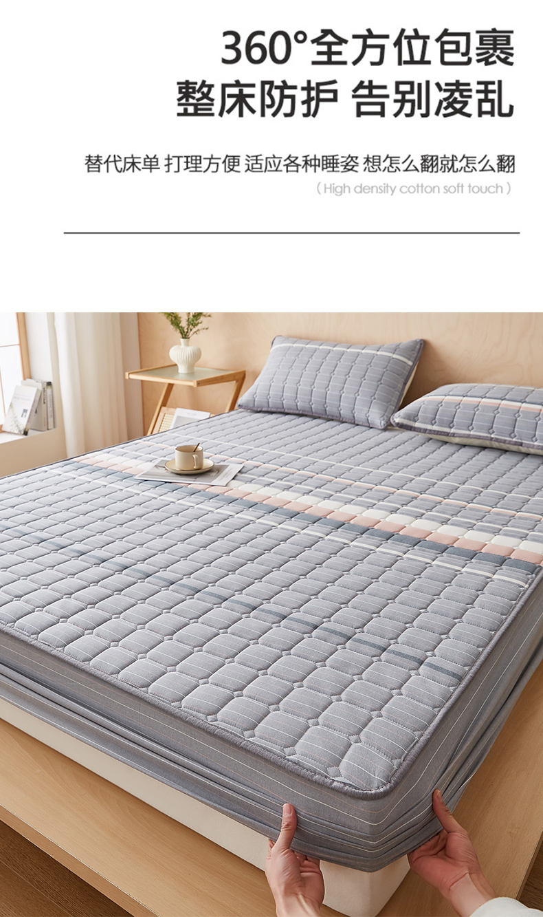 • 91家纺网 家纺一手货源 找家纺 暖季家纺 2025新款水洗棉夹棉床笠无印风棉花款 棉花床笠马里奥灰
