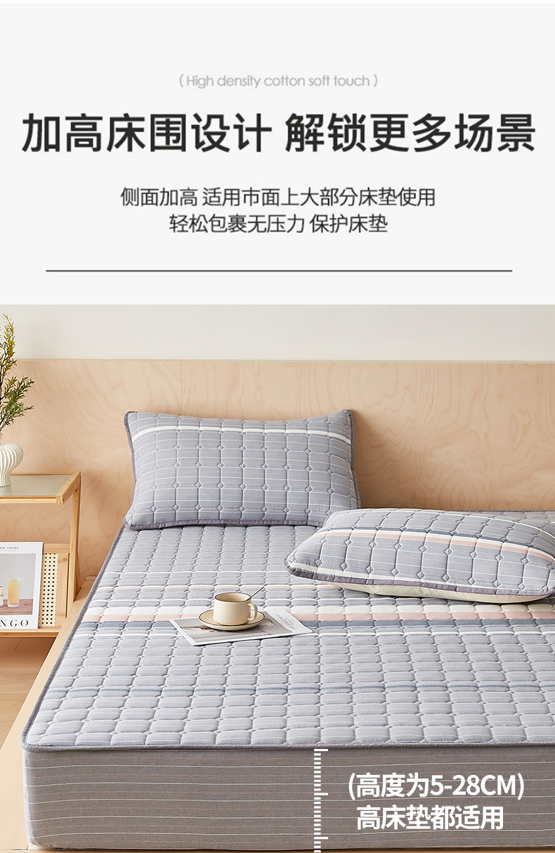 暖季家纺 2025新款水洗棉夹棉床笠无印风棉花款 棉花床笠马里奥灰