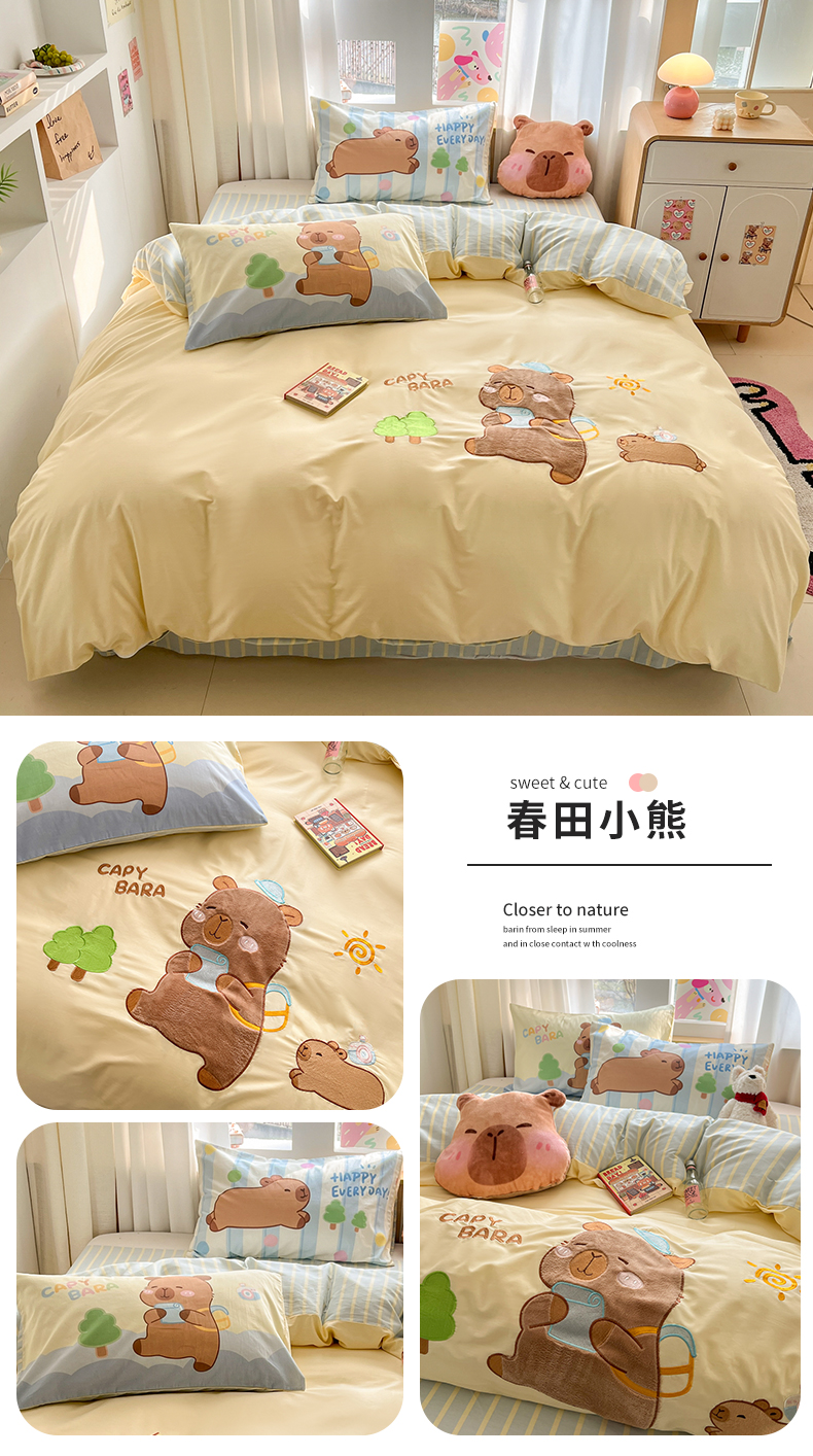 (总)优彩 2025新款牛奶绒绣花四件套毛巾绣贴布绣牛奶绒四件套,晚安猫,毛绒森林,萌萌猫,桑尼小兔,水豚崽崽,小可乐,星愿