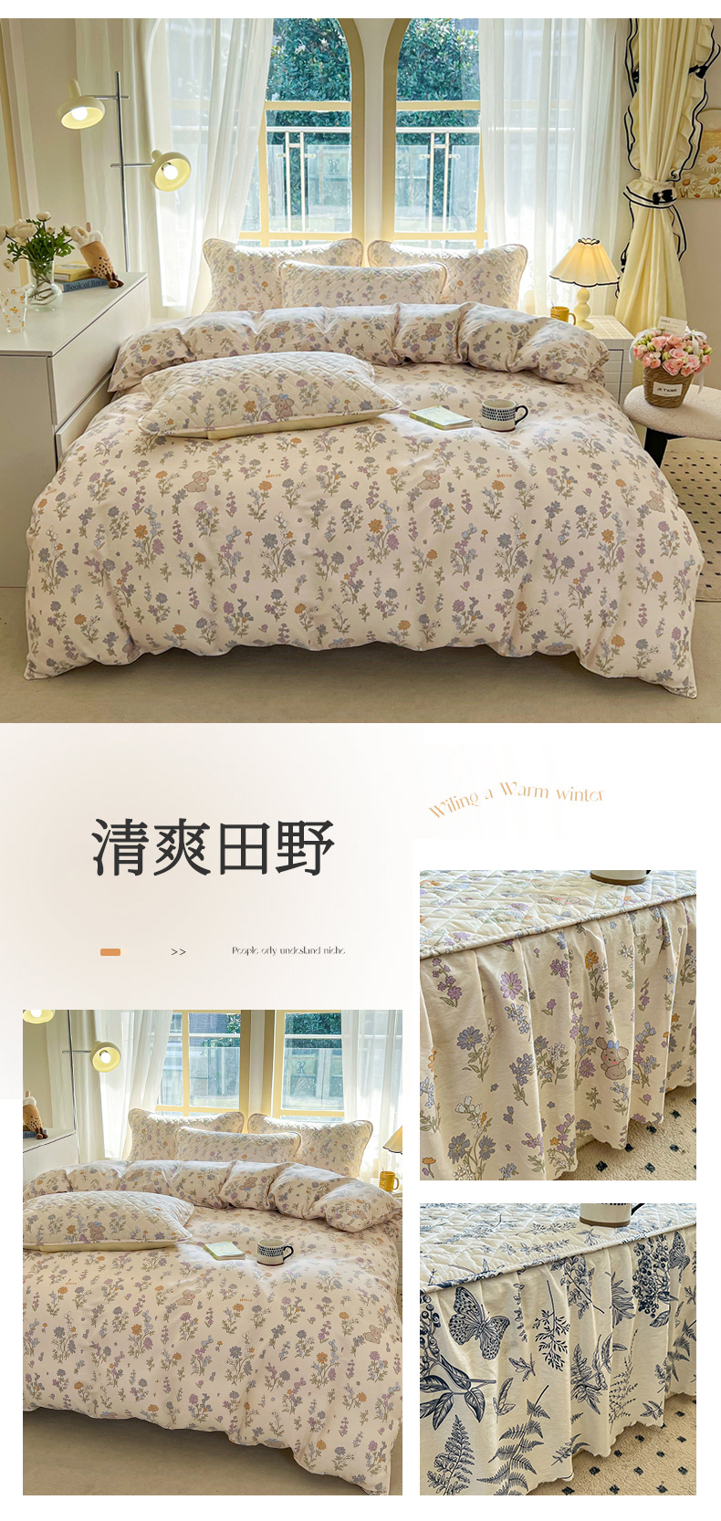 • 91家纺网 家纺一手货源 找家纺 禧缘家纺   2025新款全棉印花花边夹棉床裙式床笠四件套系列 清新田野 91家纺网 家纺一手货源 找家纺 禧缘家纺   2025新款全棉印花花边夹棉床裙式床笠四件套系列 清新田野