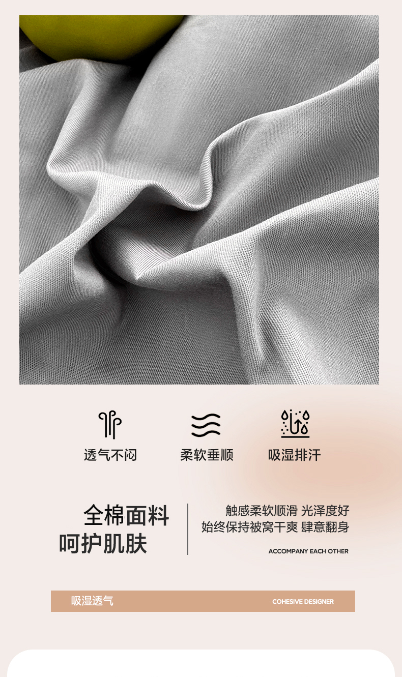 佰亿莱 2025新款简约舒适全棉单品系列单被套 高级灰