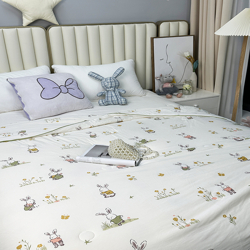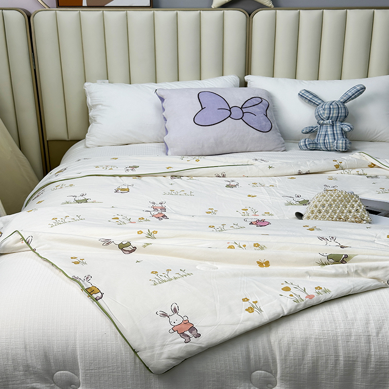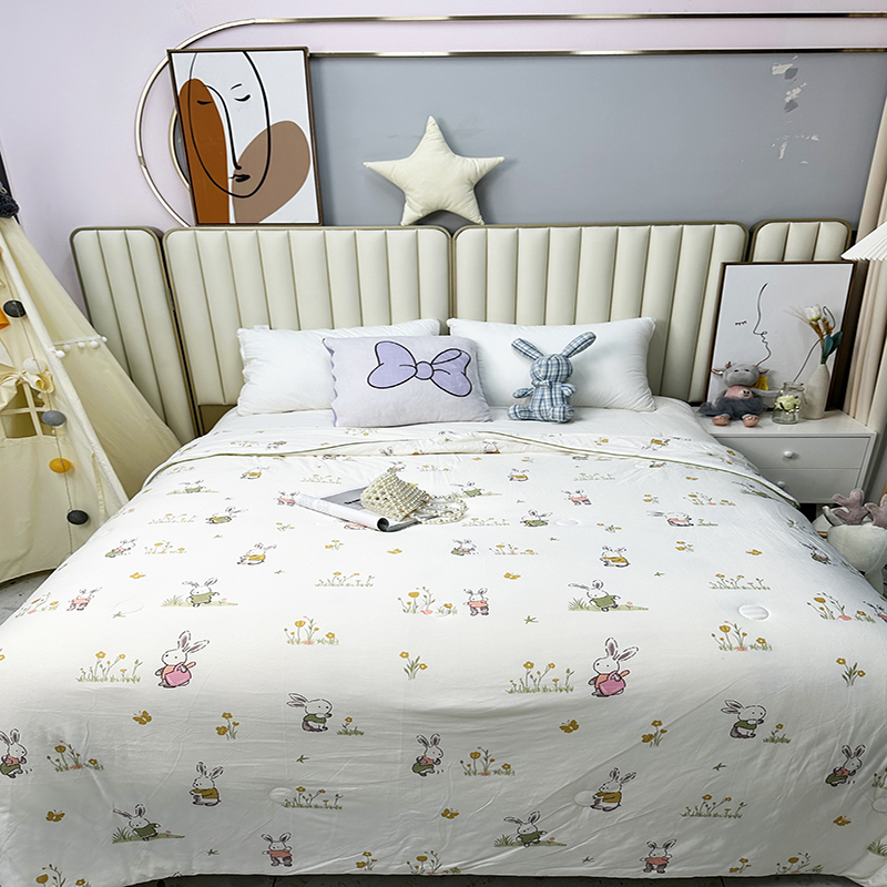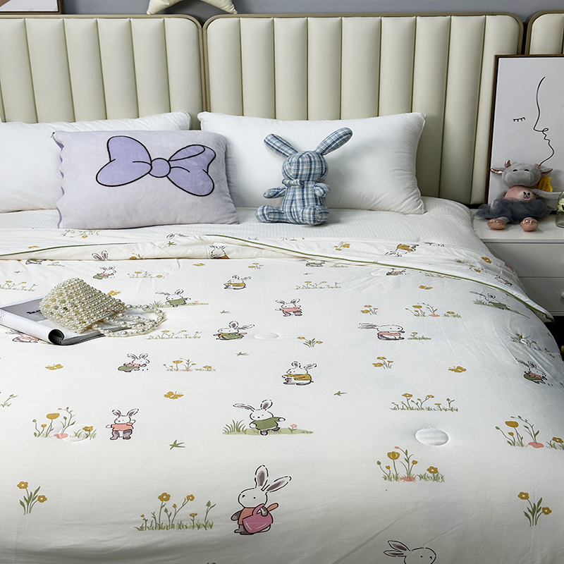 被子 > 夏被 > (自己工厂有网销大热款 网销帮推可合作优惠 长期款不断货)2024新款A类针织棉夏被空调被-风格二 花丛兔兔