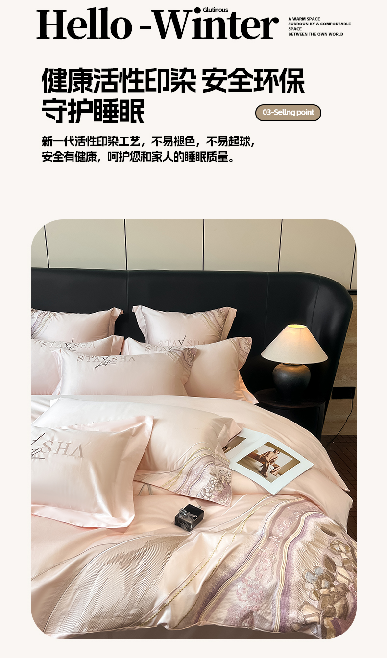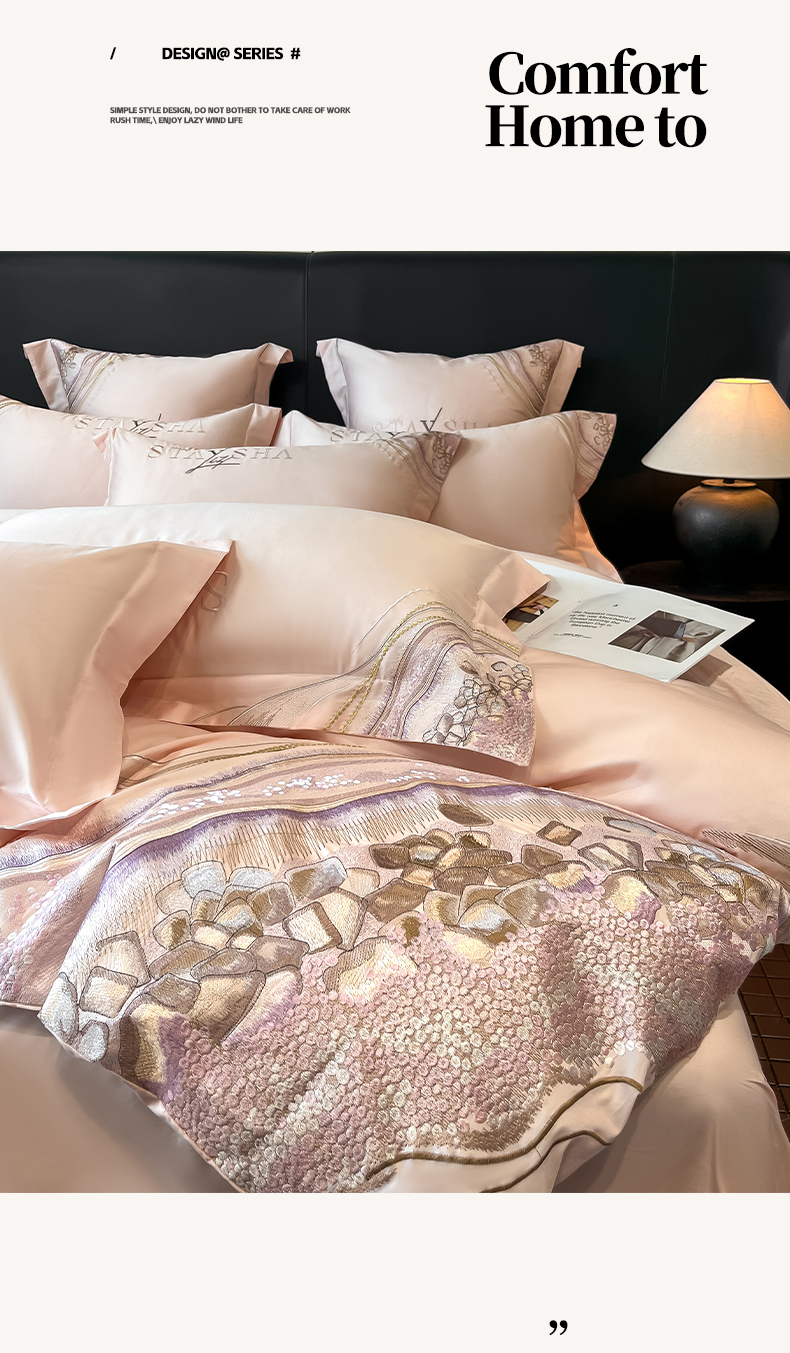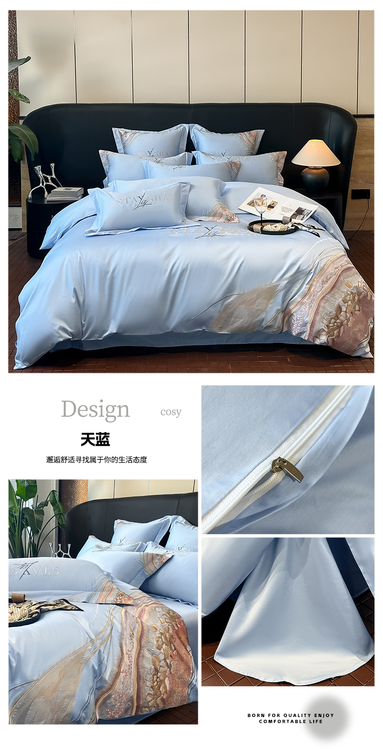 (总)博纳家纺 2025新款镂空大宽边拼角高级简奢款亲肤棉四件套-山水提花,繁星蓝,粉玉,高级灰,香槟,象牙白