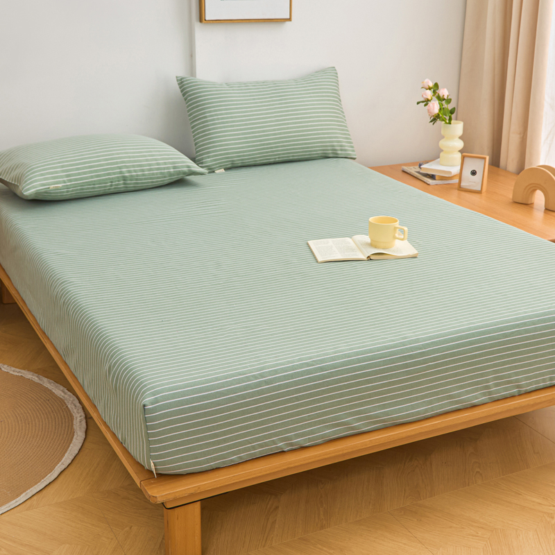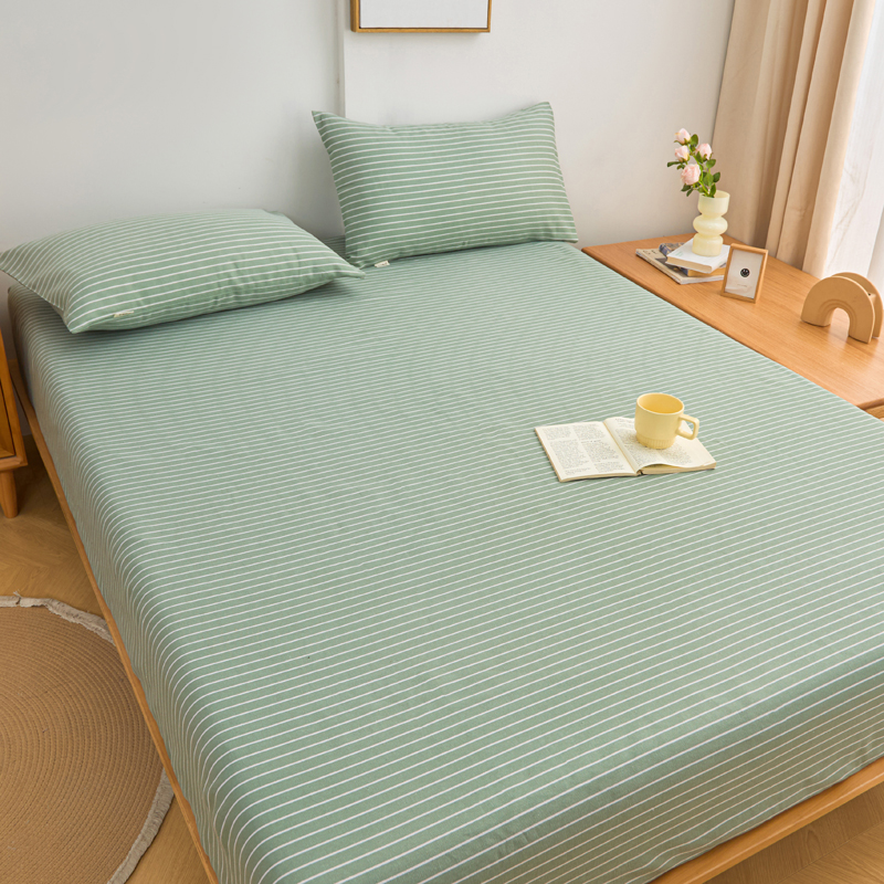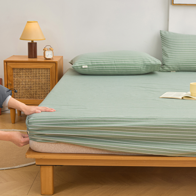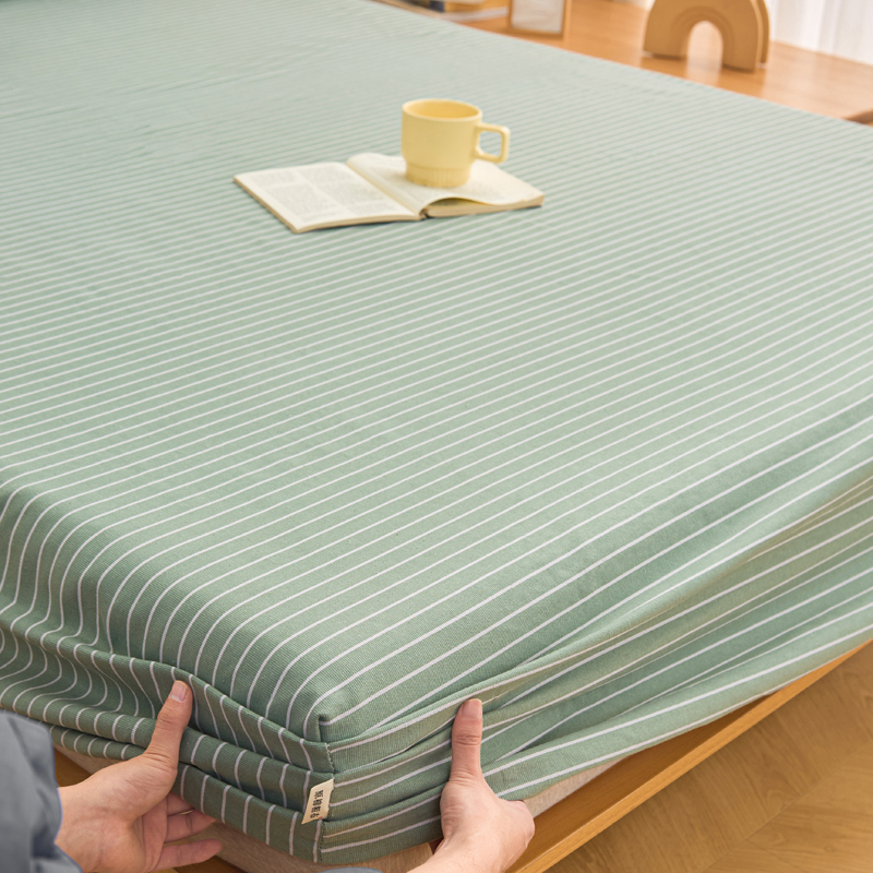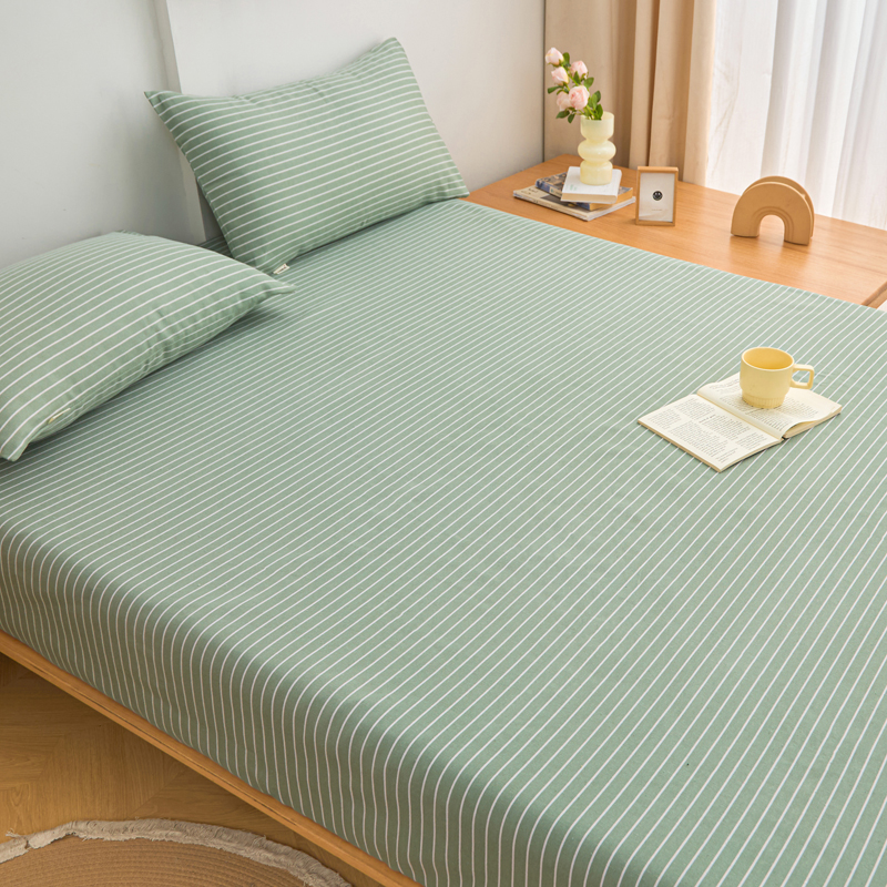 首爱2025新款原棉老粗布床笠支持特殊规格定制 常年不断货 大批量供应 条紋绿